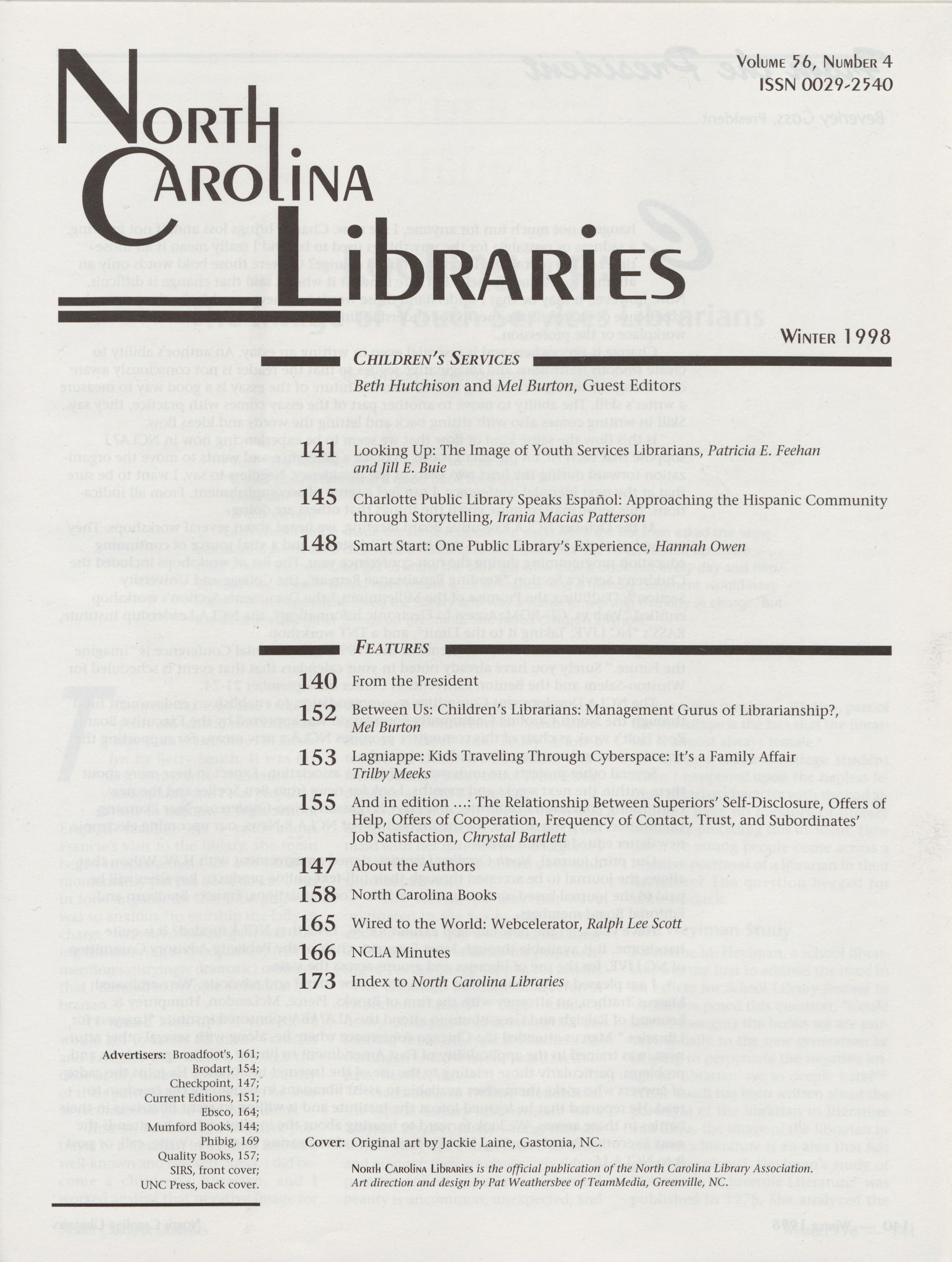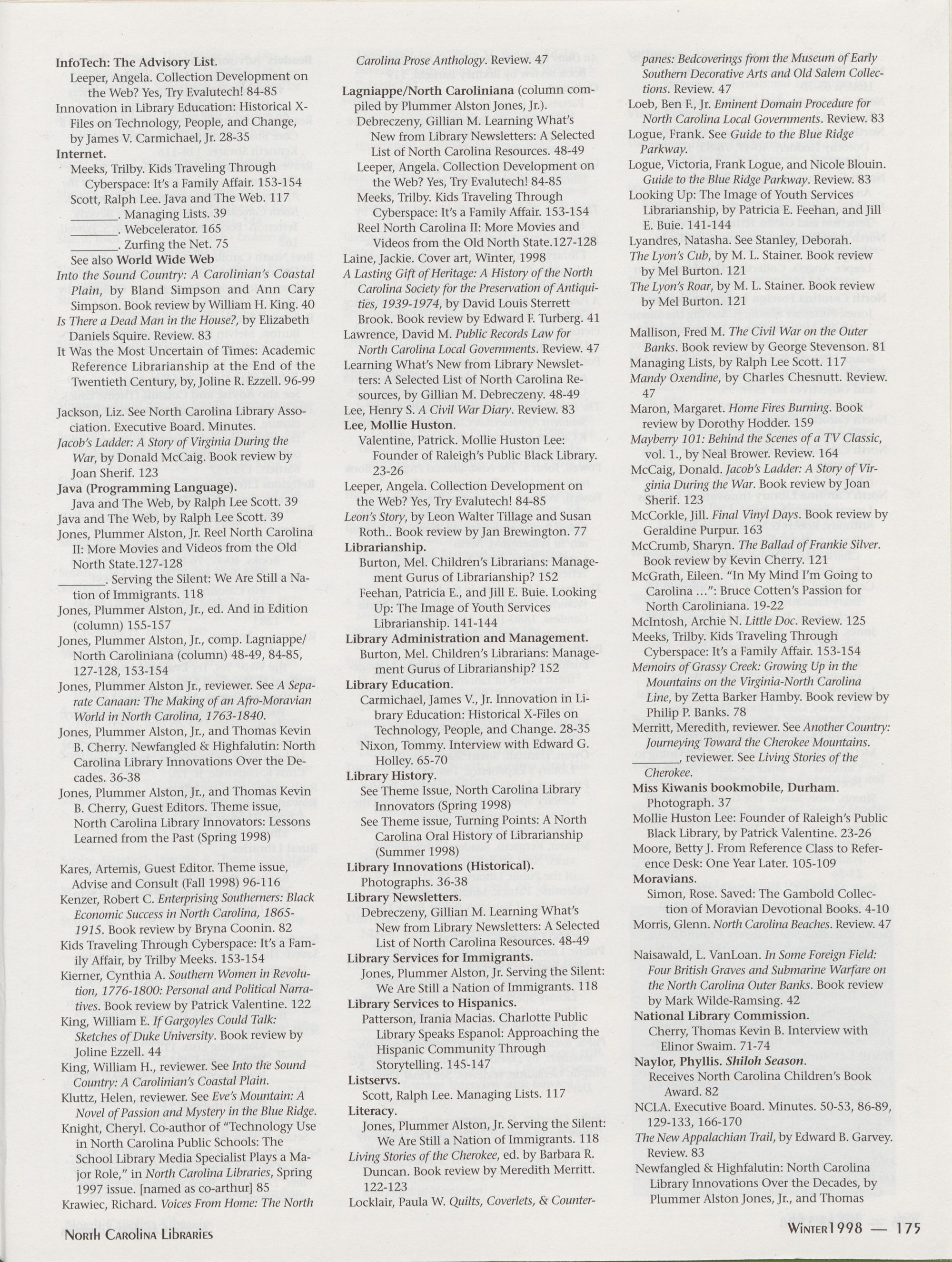 North Carolina Libraries is indexed by Library Literature and publishes its own annual index.