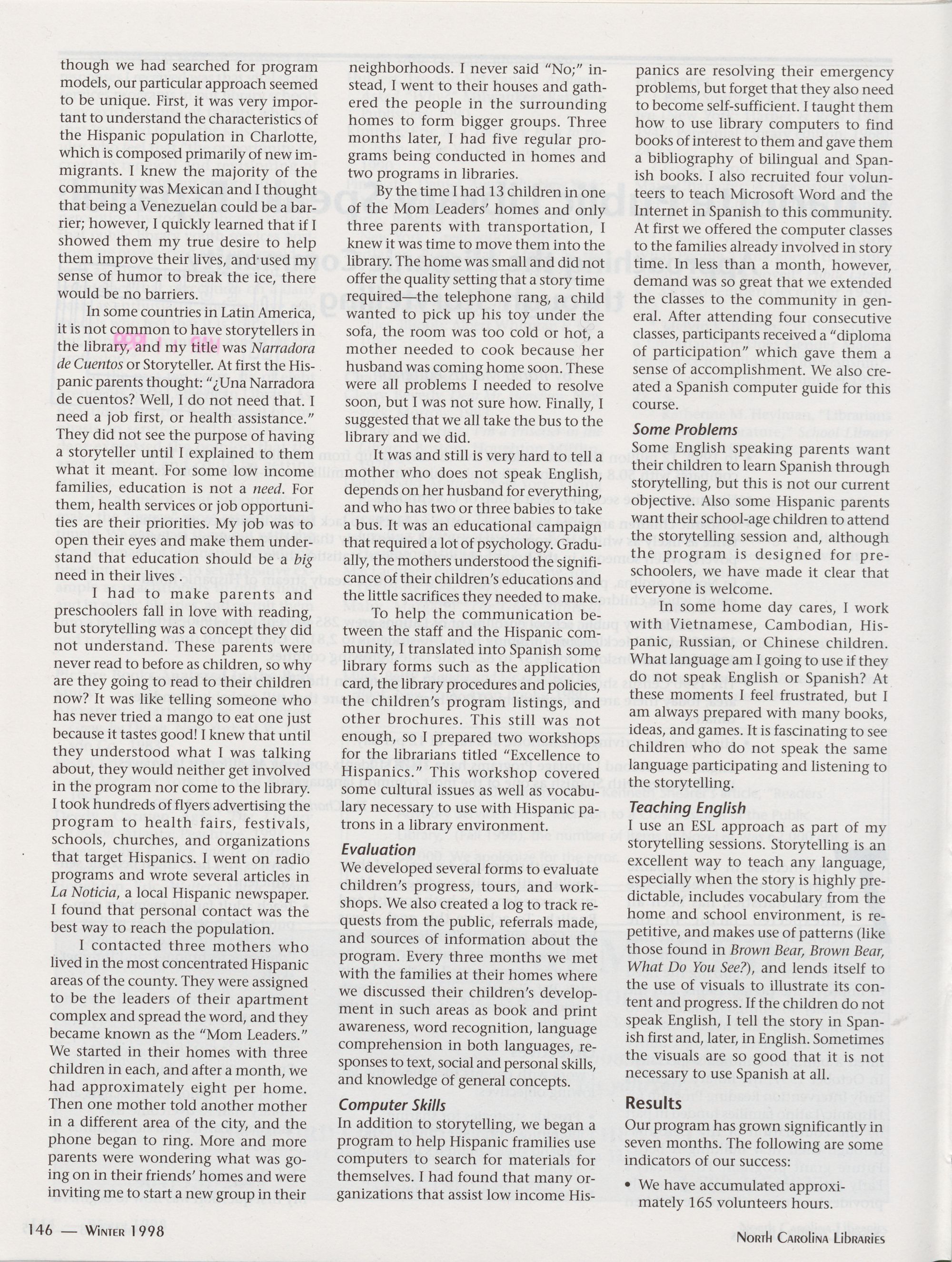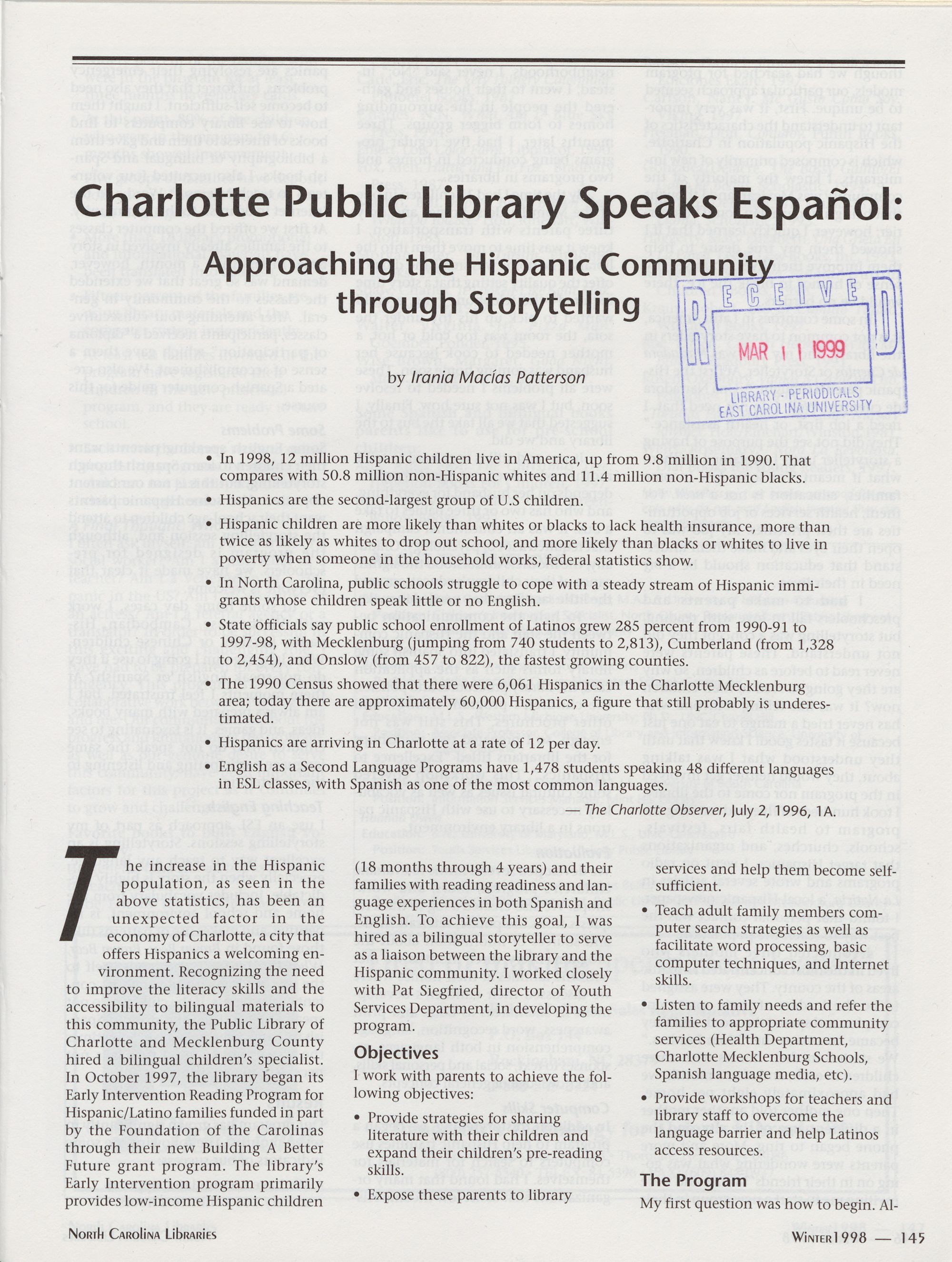 145 Charlotte Public Library Speaks Espanol: Approaching the Hispanic Community