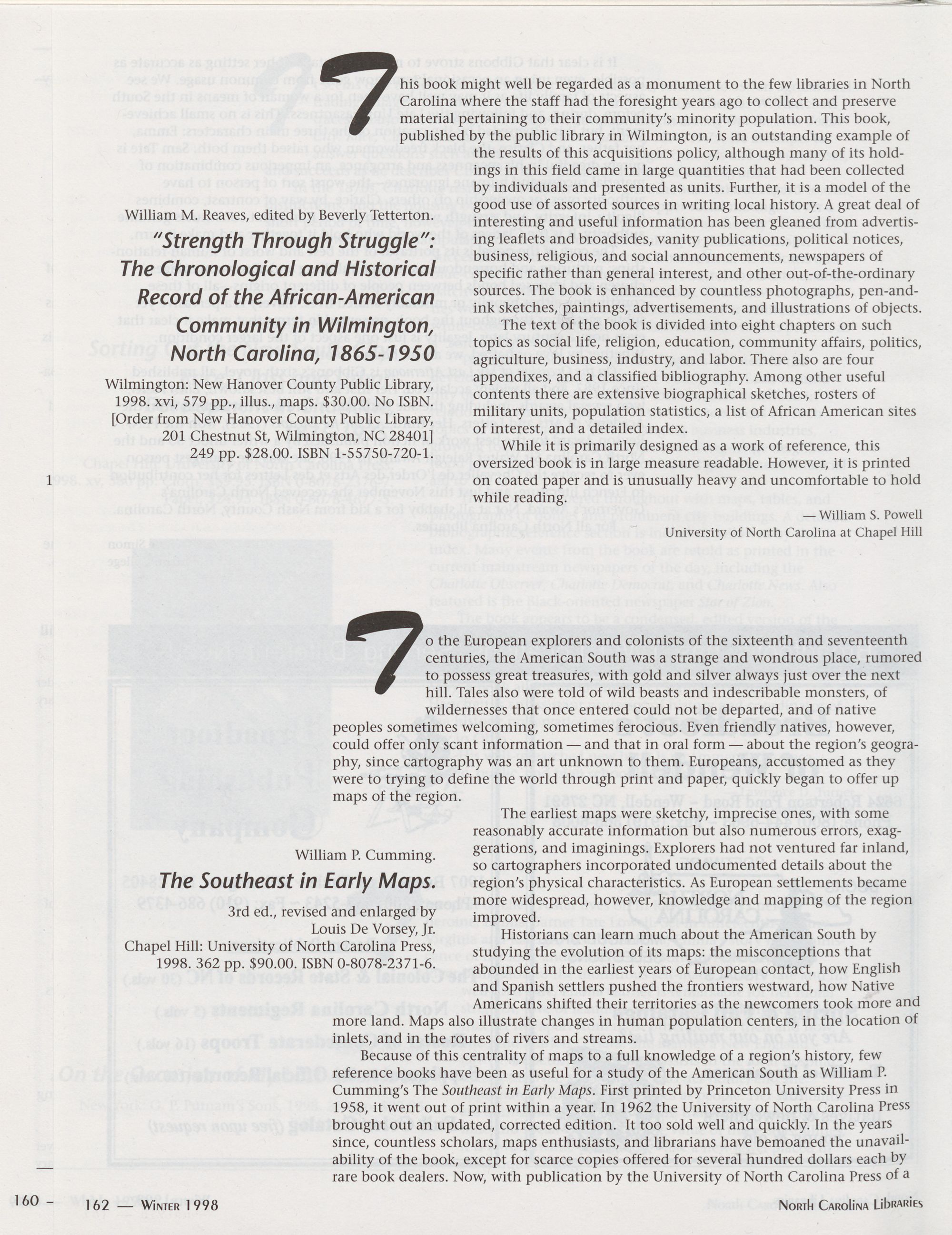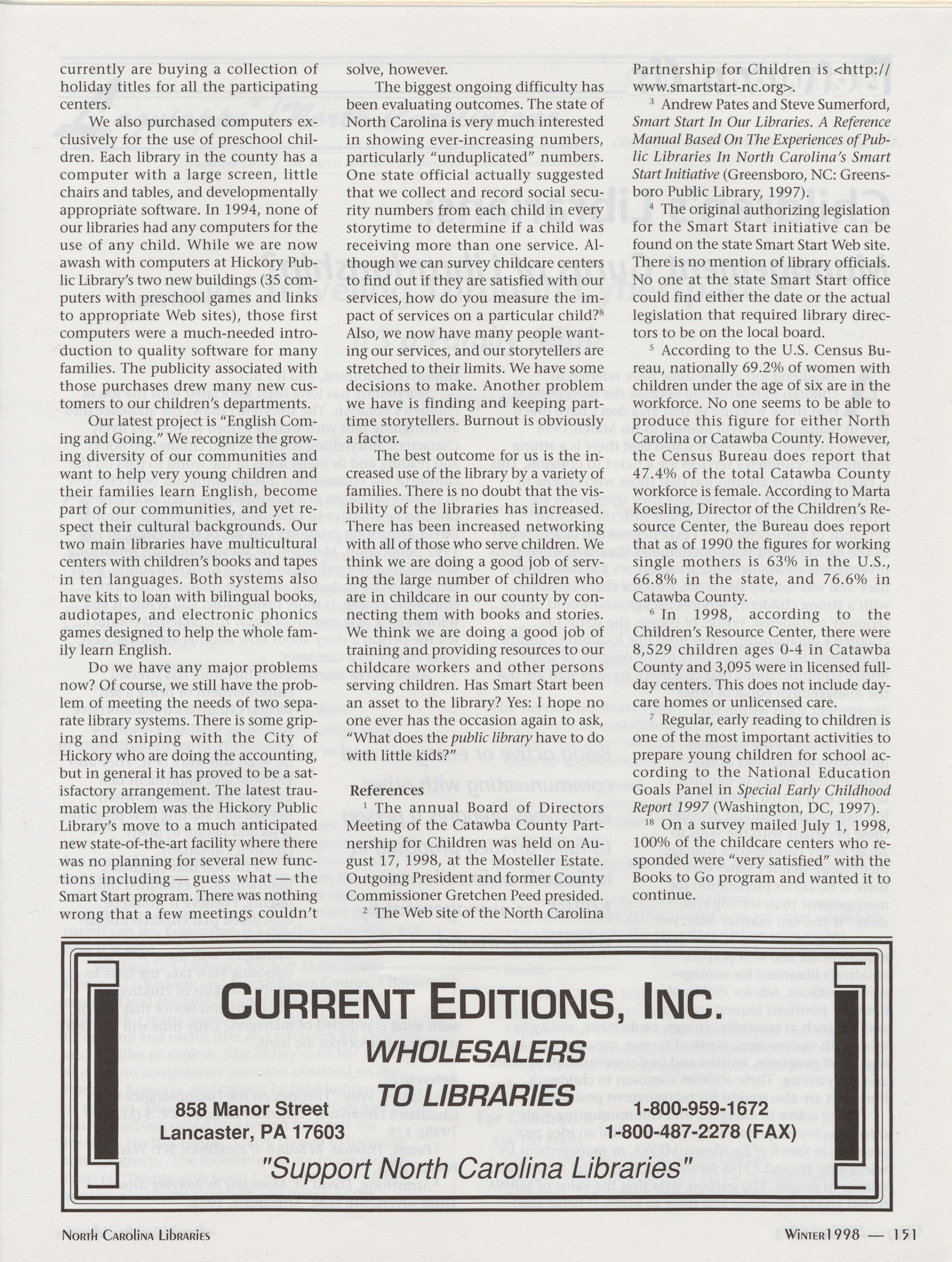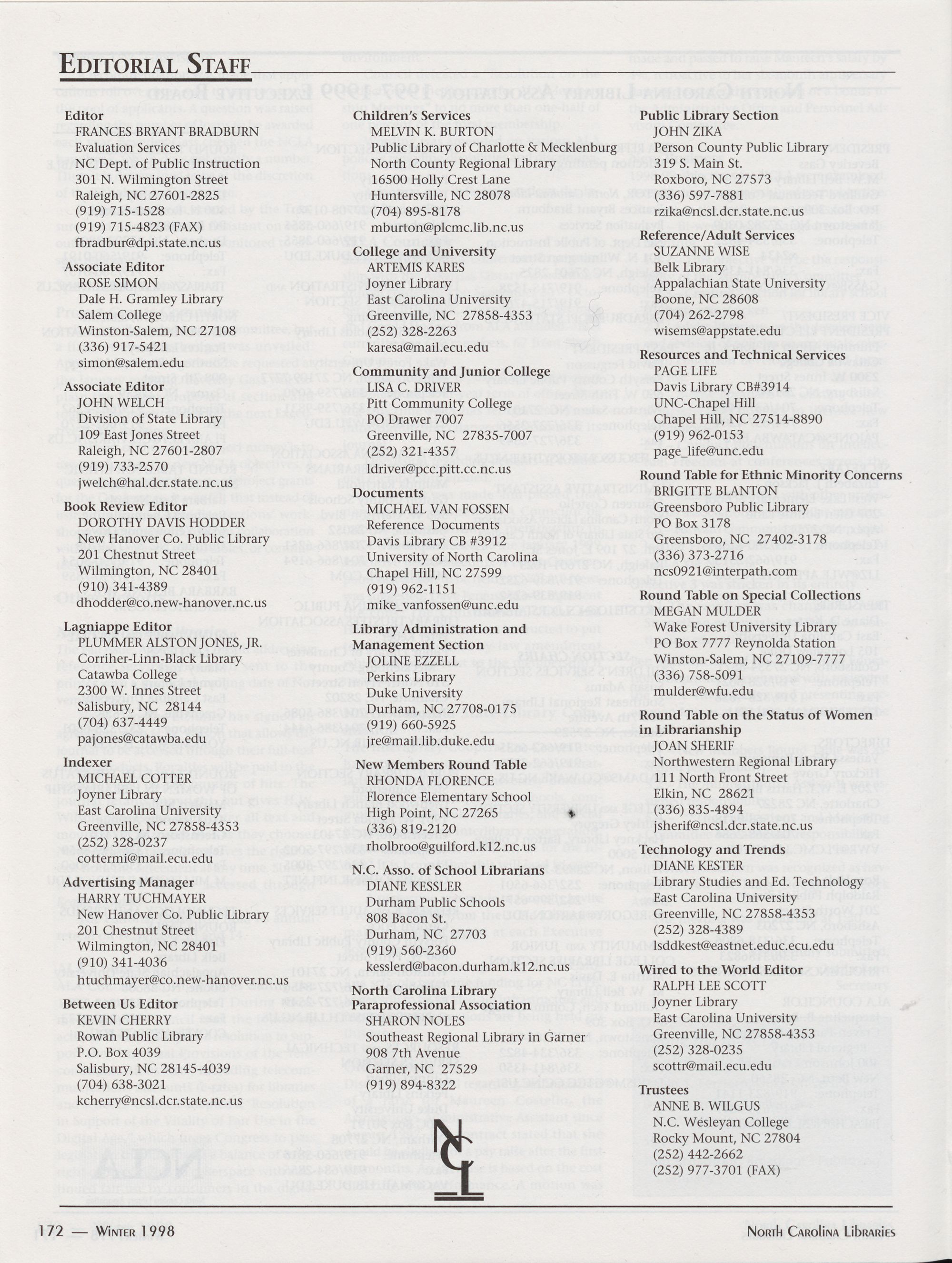 North Carolina Libraries, published four times a year, is the official publication of the North