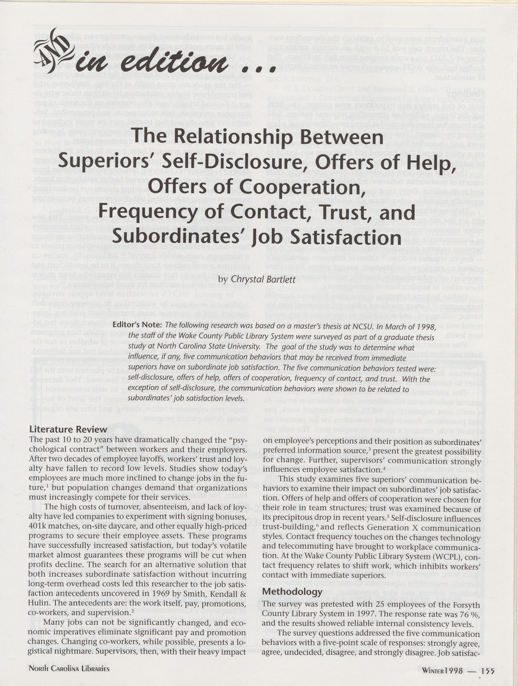 155 And in edition ...: The Relationship Between SuperiorsT Self-Disclosure, Offers of
