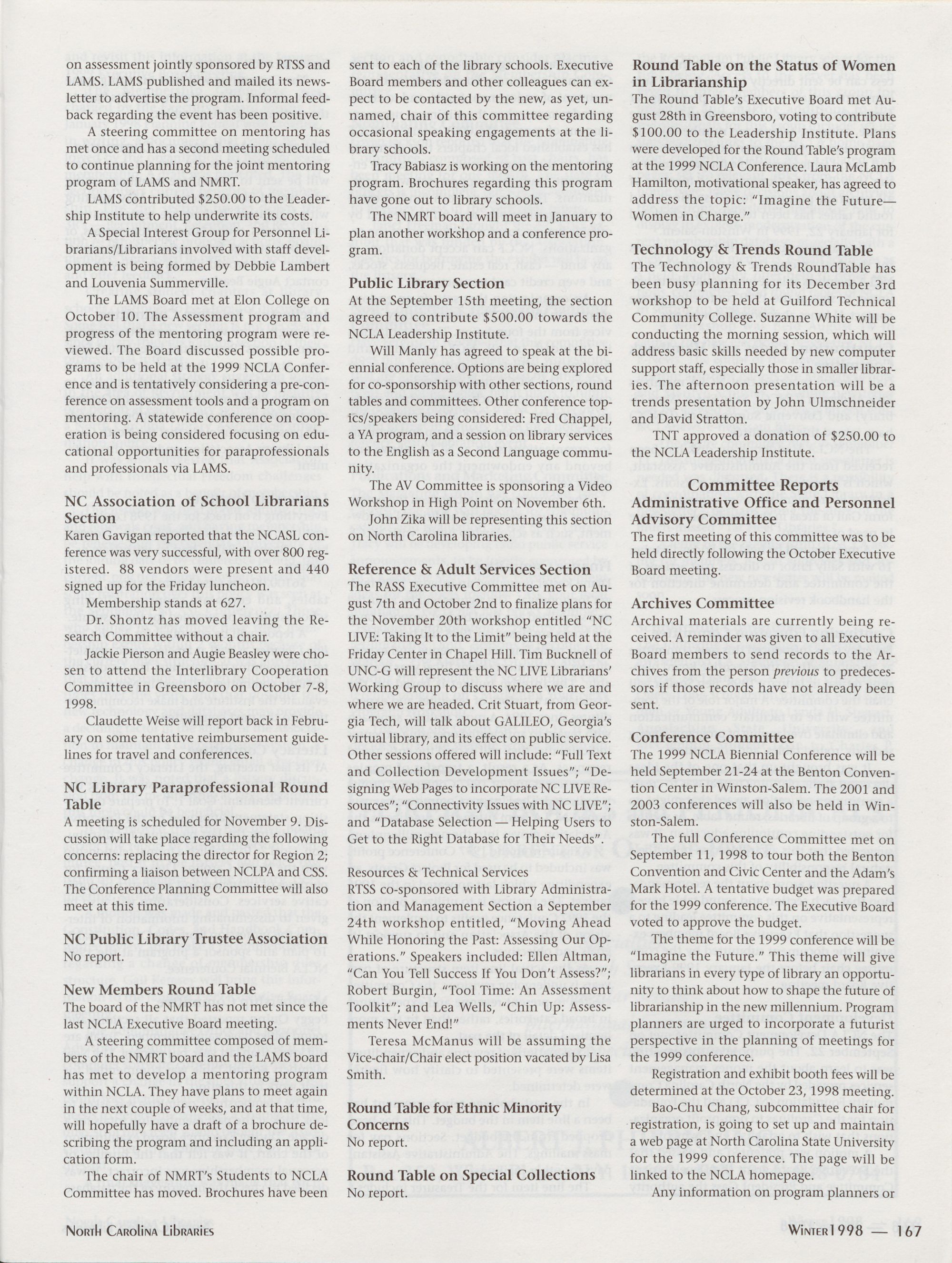 Al Jones announced that the theme of the 1999 NCLA Biennial Conference is oImagine
