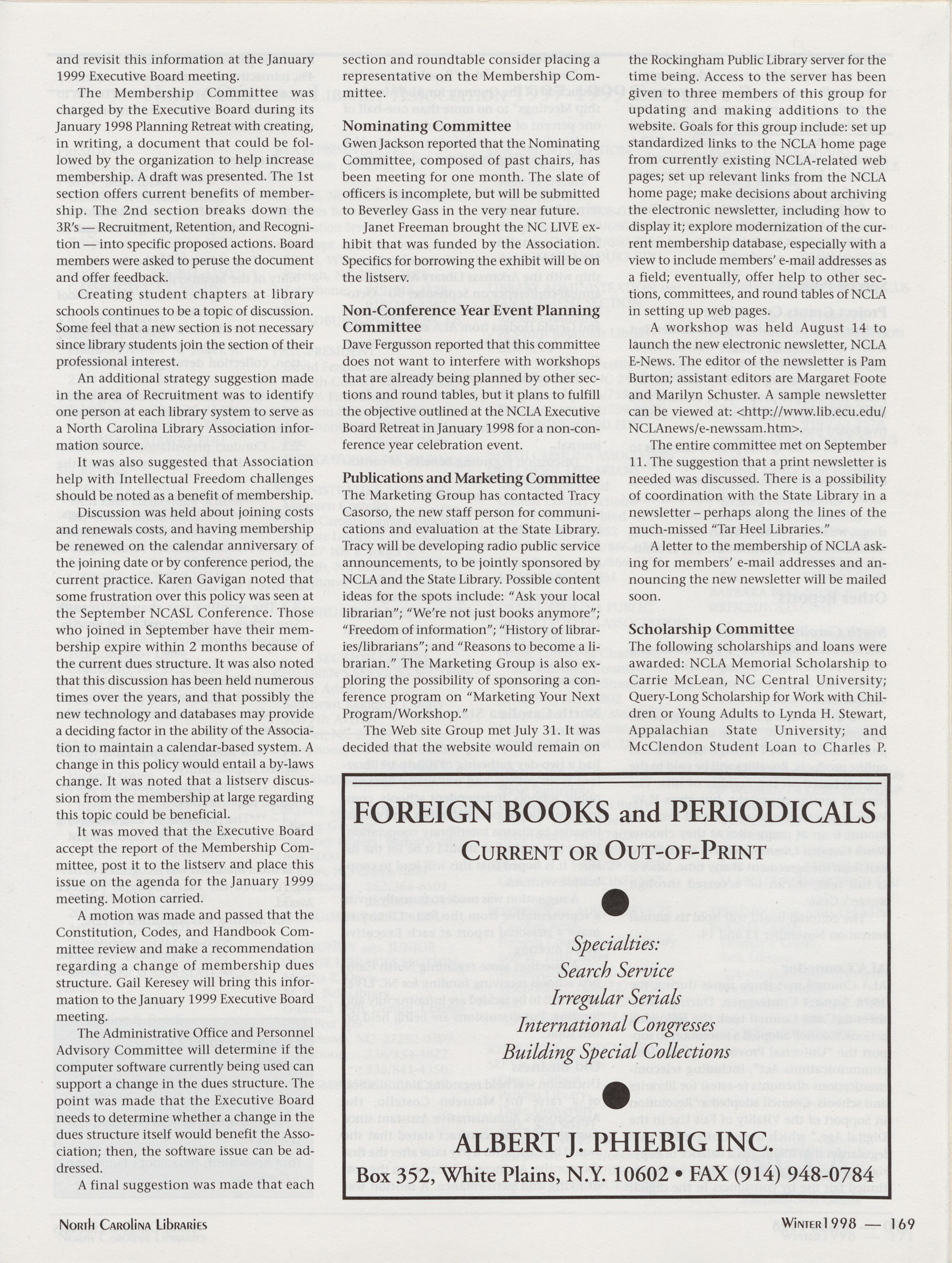 Carolina Library Association. Membership dues include a subscription to North Carolina