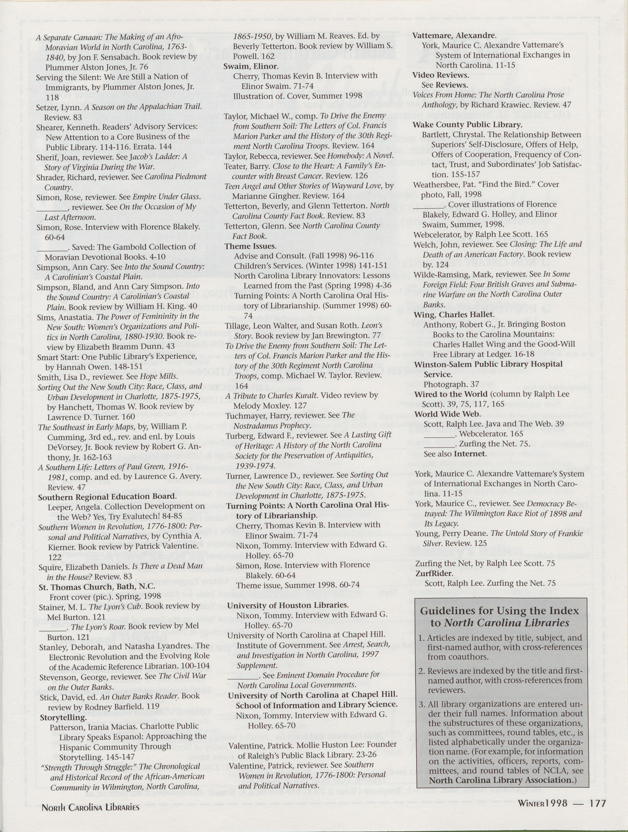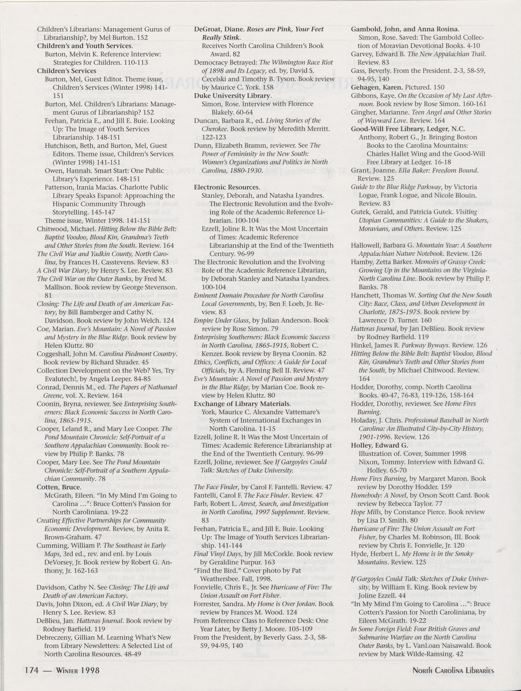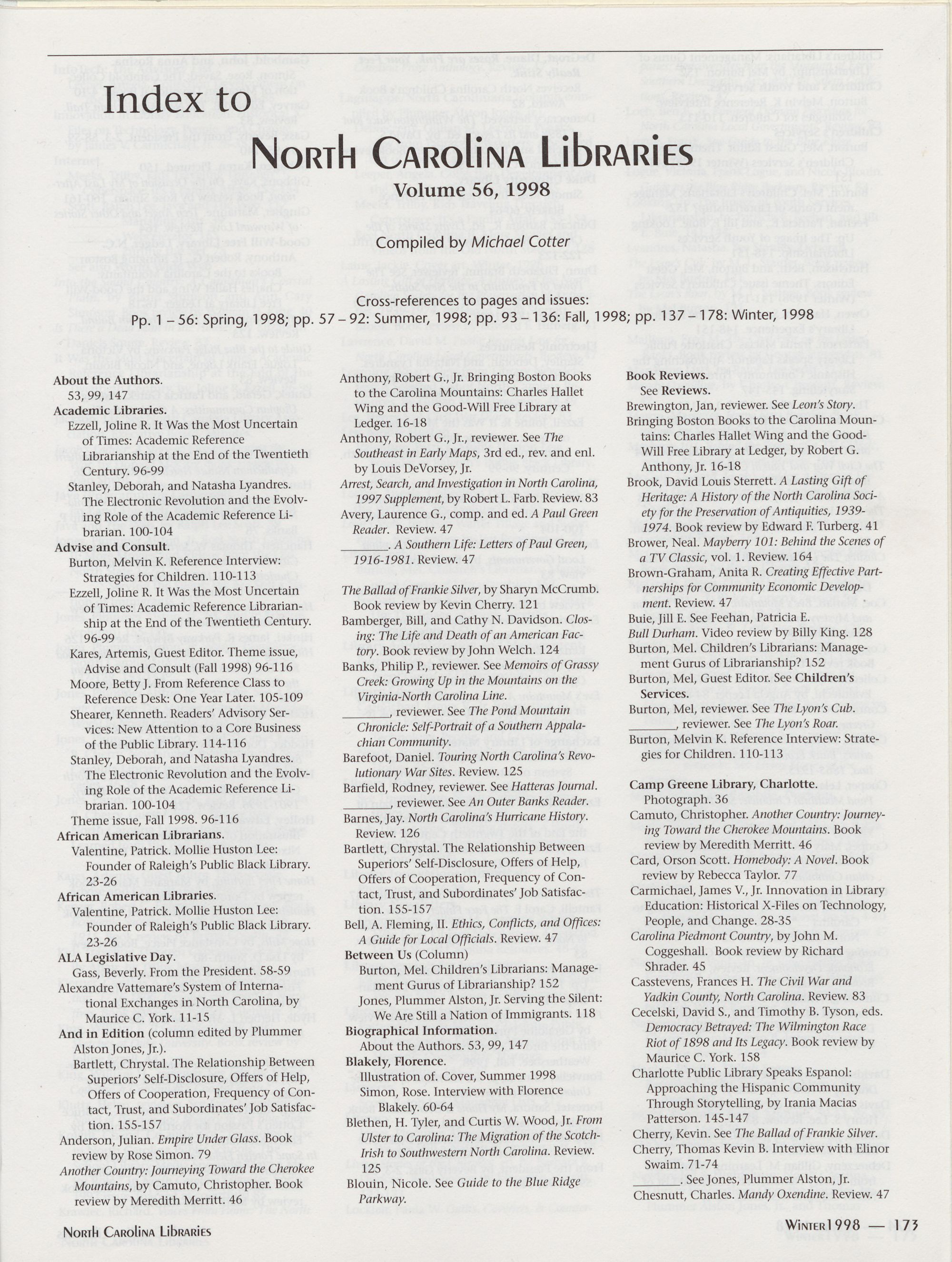 173 Index to North Carolina Libraries