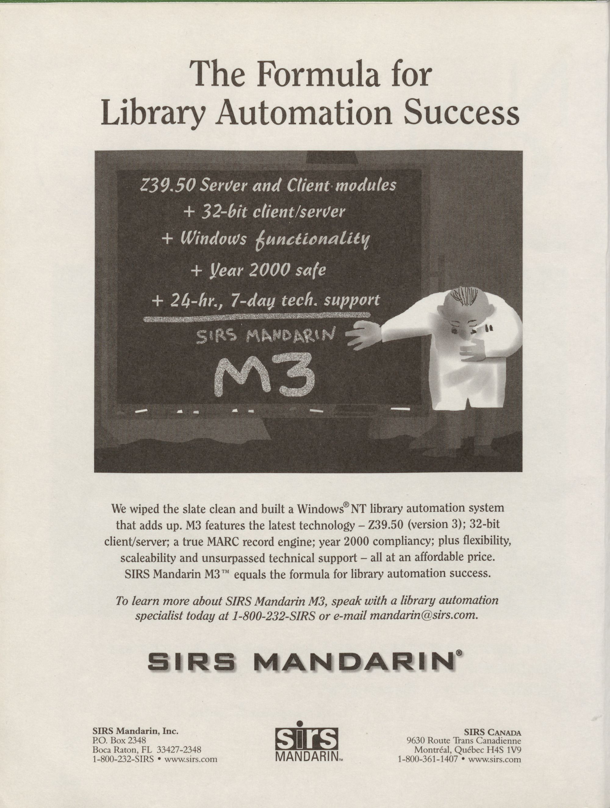 SIRS Mandarin M3�"� equals the formula for library automation success.