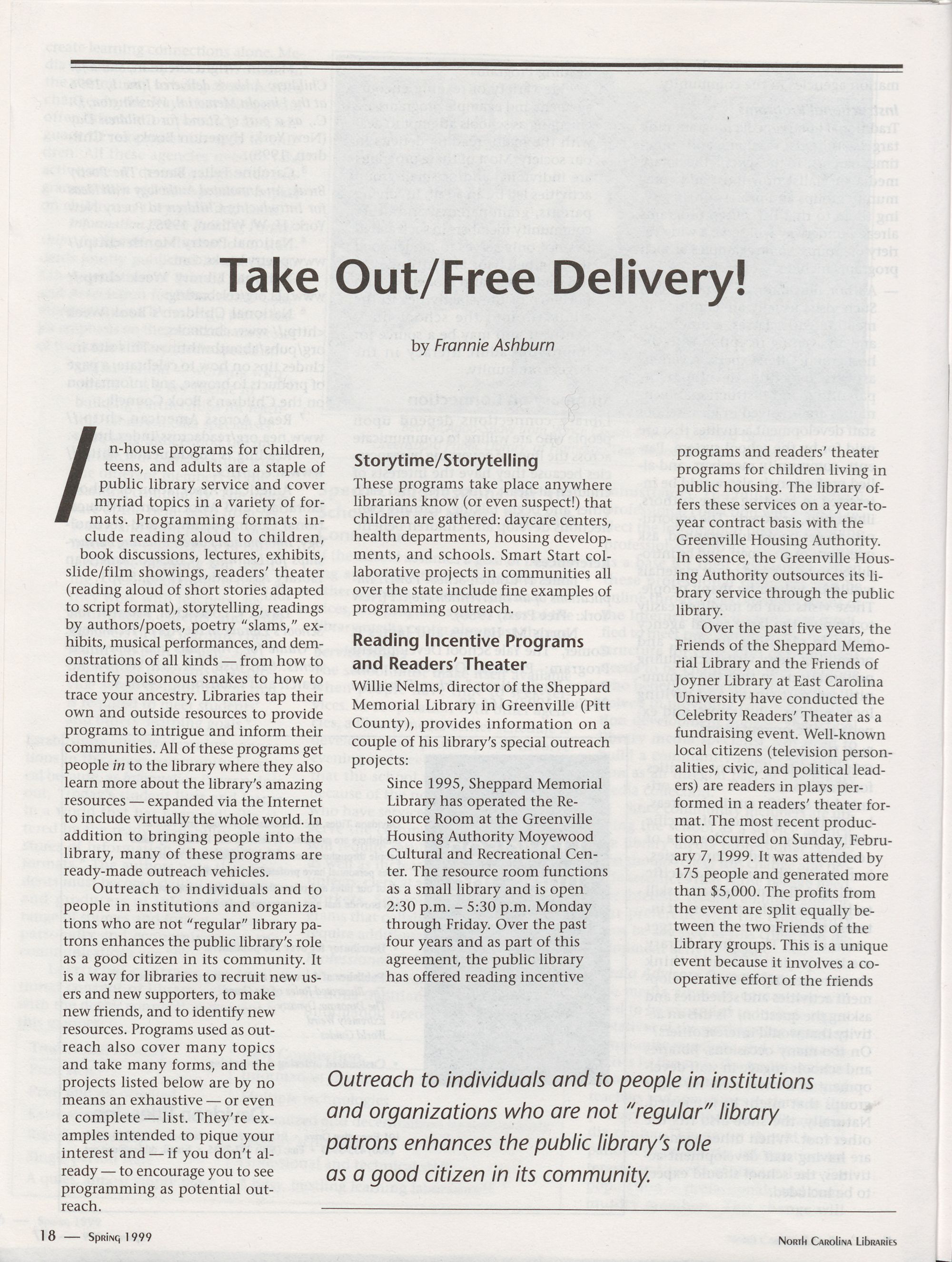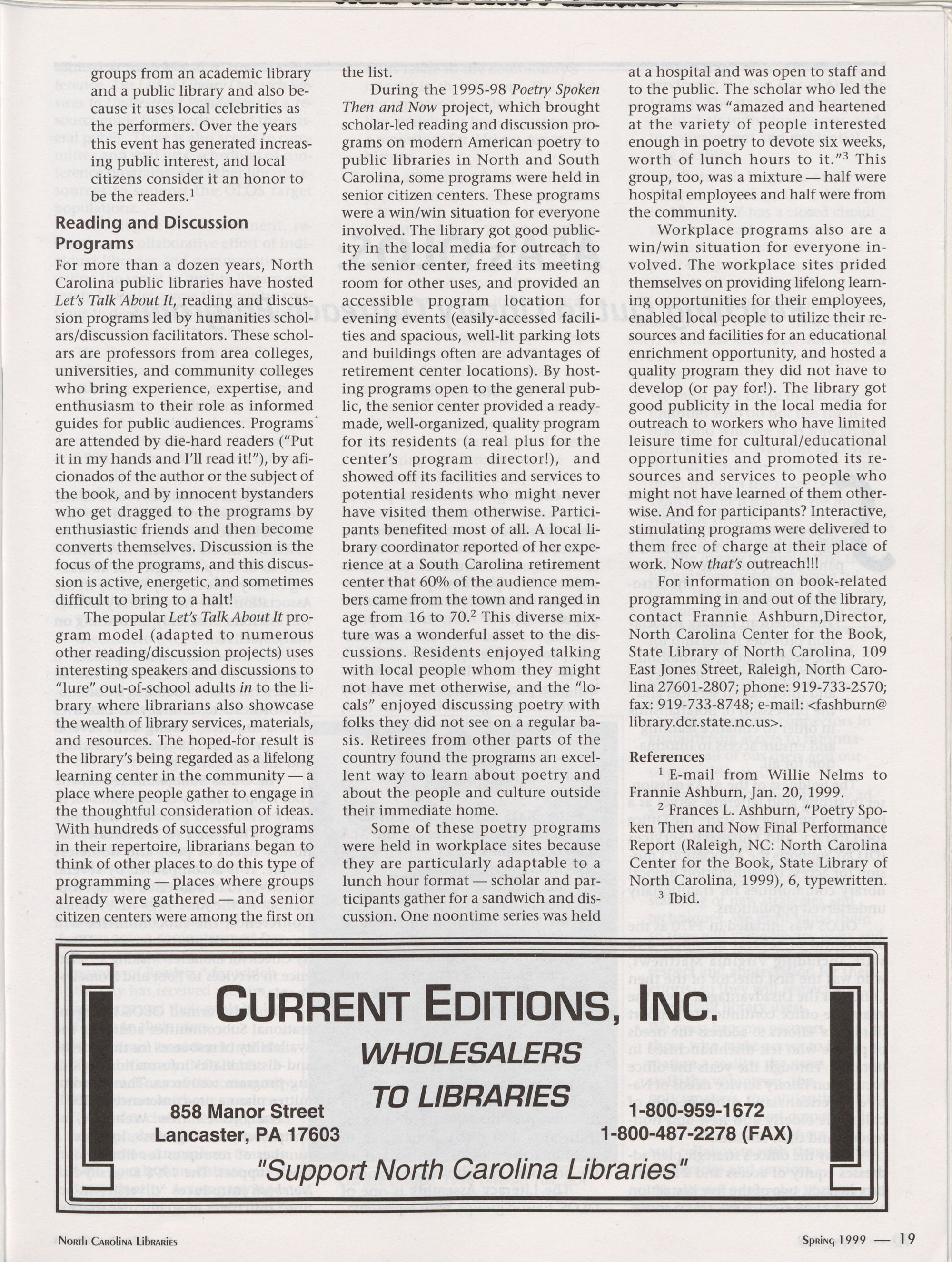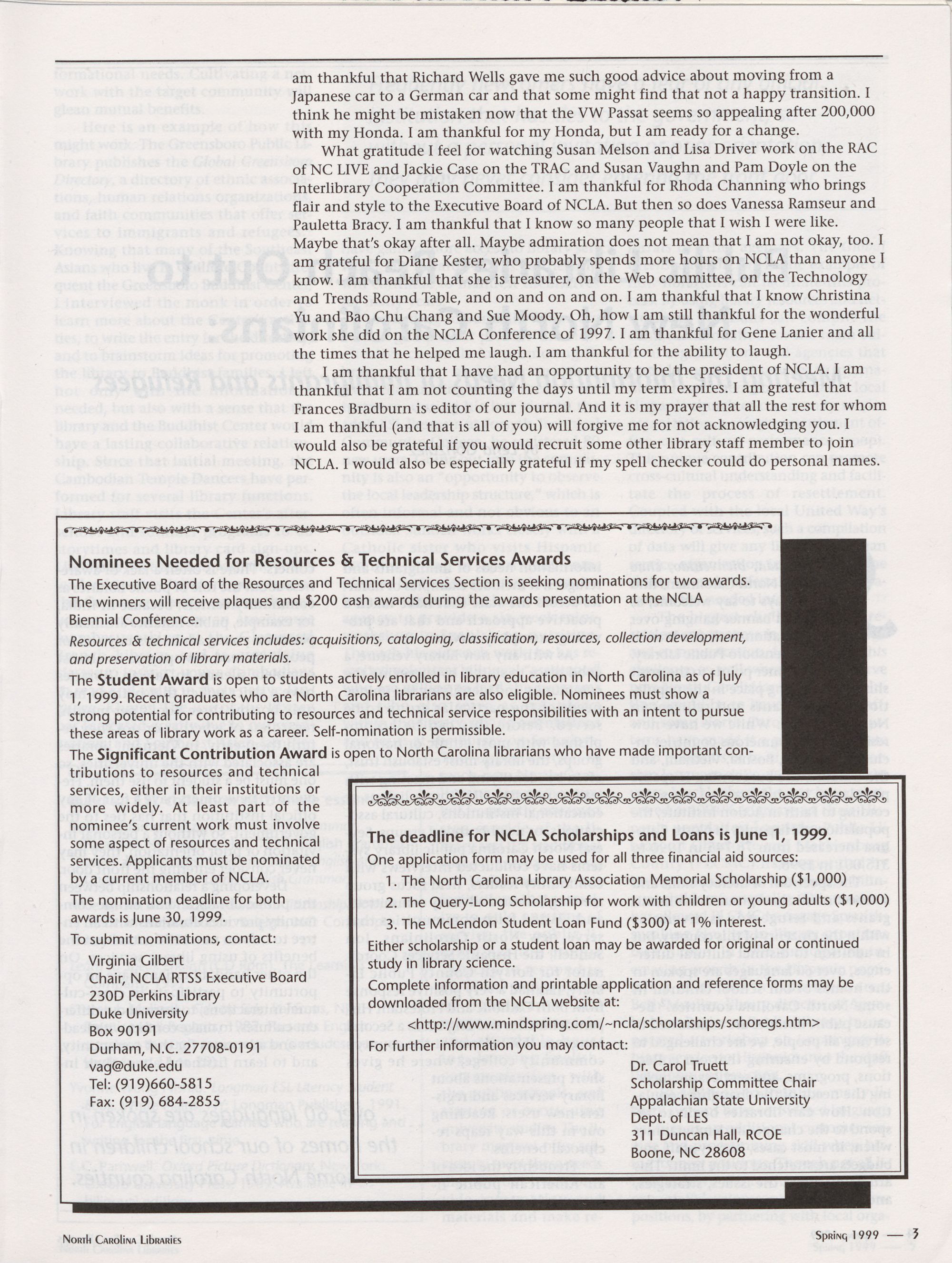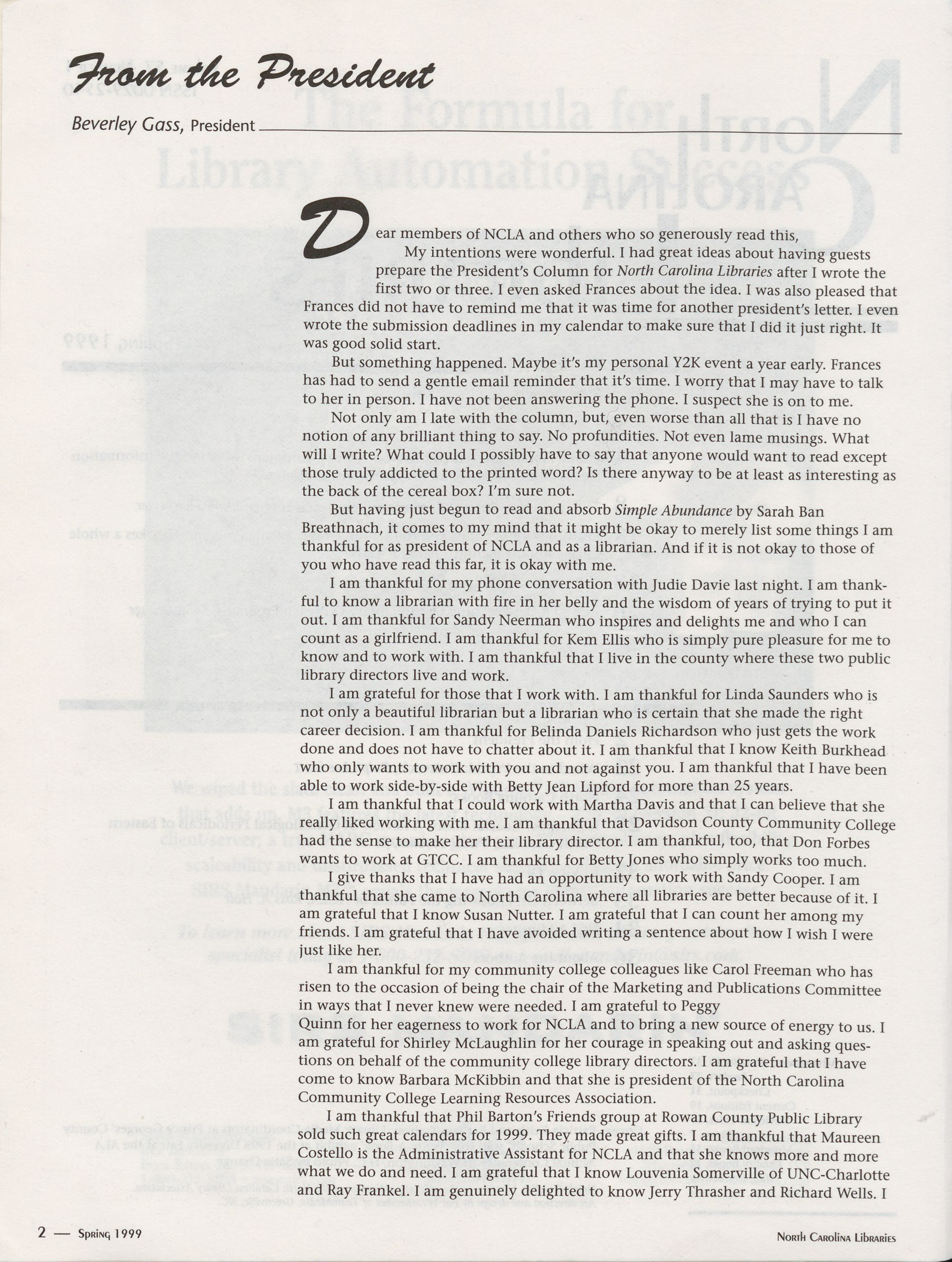 prepare the PresidentTs Column for North Carolina Libraries after I wrote the