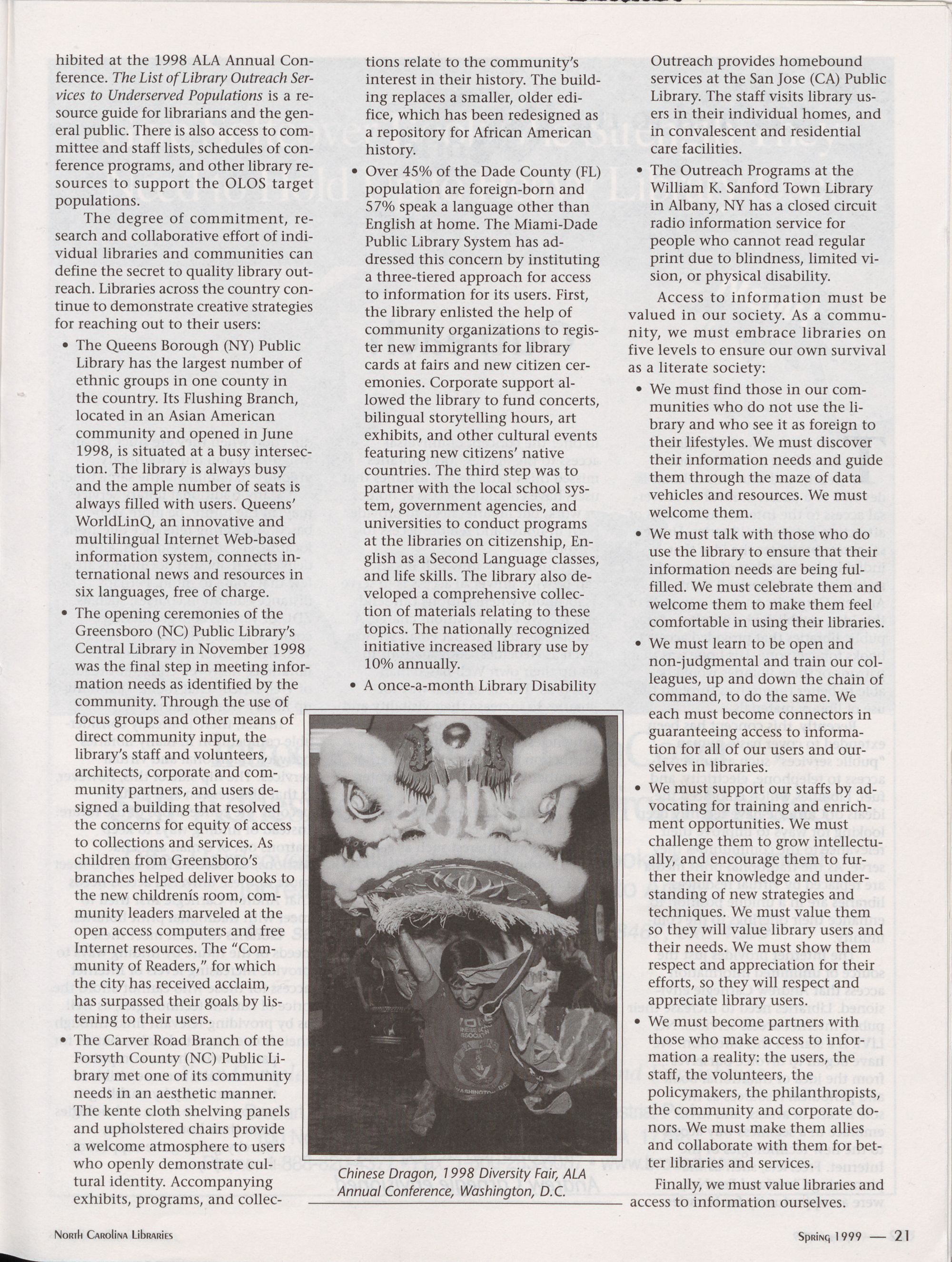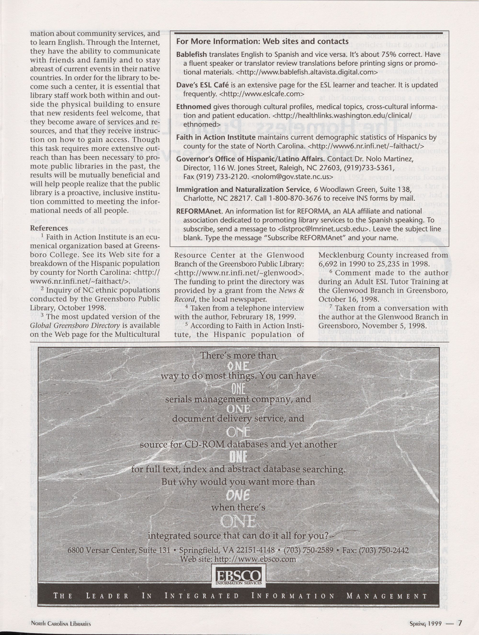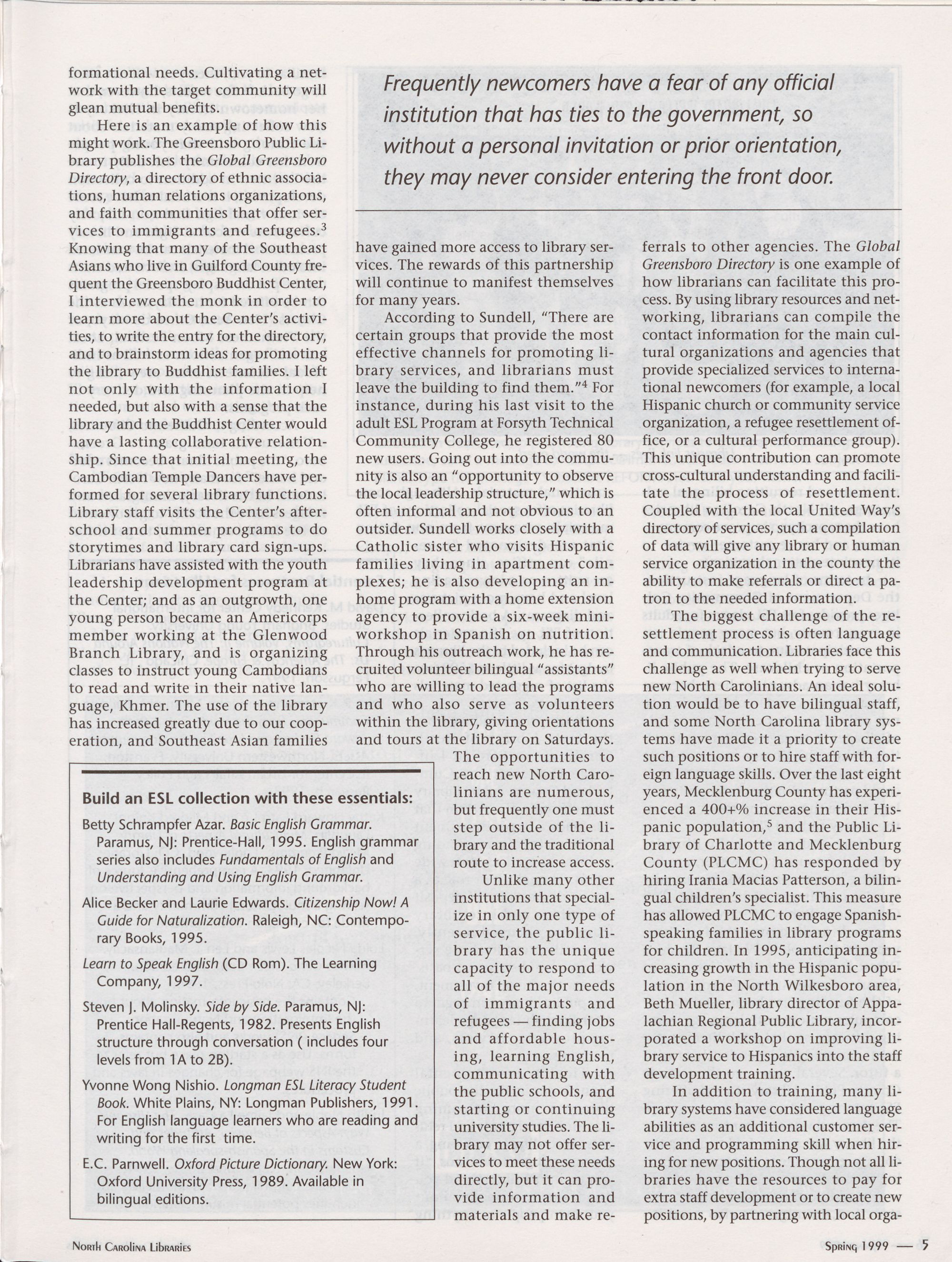 Public Libraries Reach Out to New North Carolinians: Meeting the Information