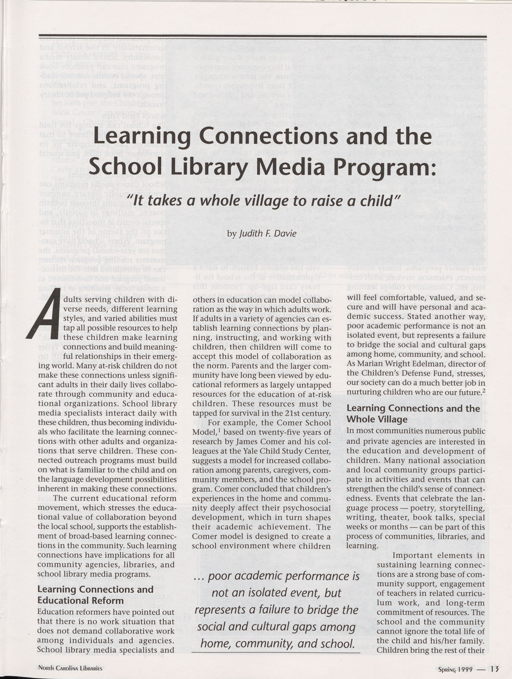 Learning Connections and the School Library Media Program: oIt takes a whole