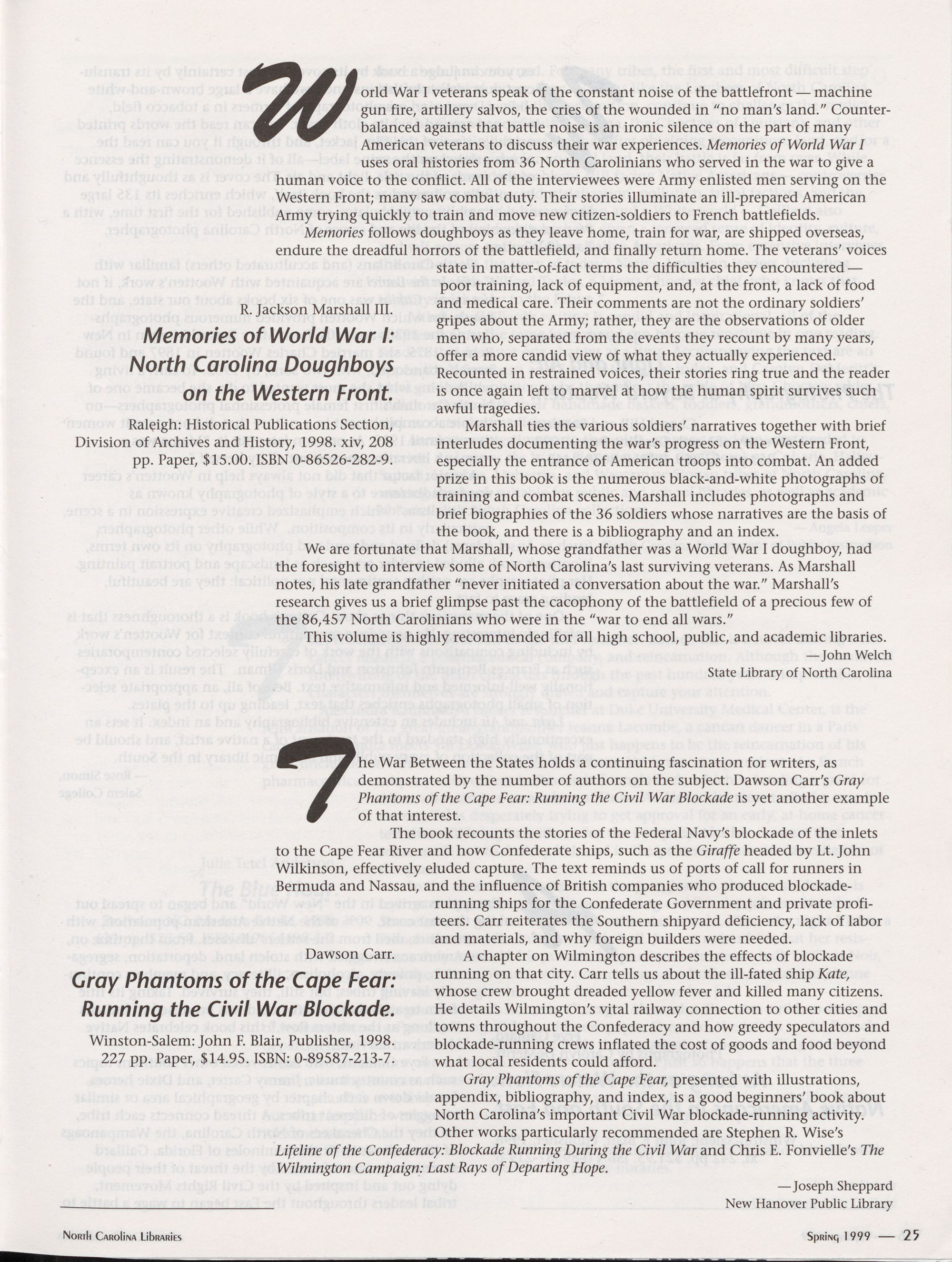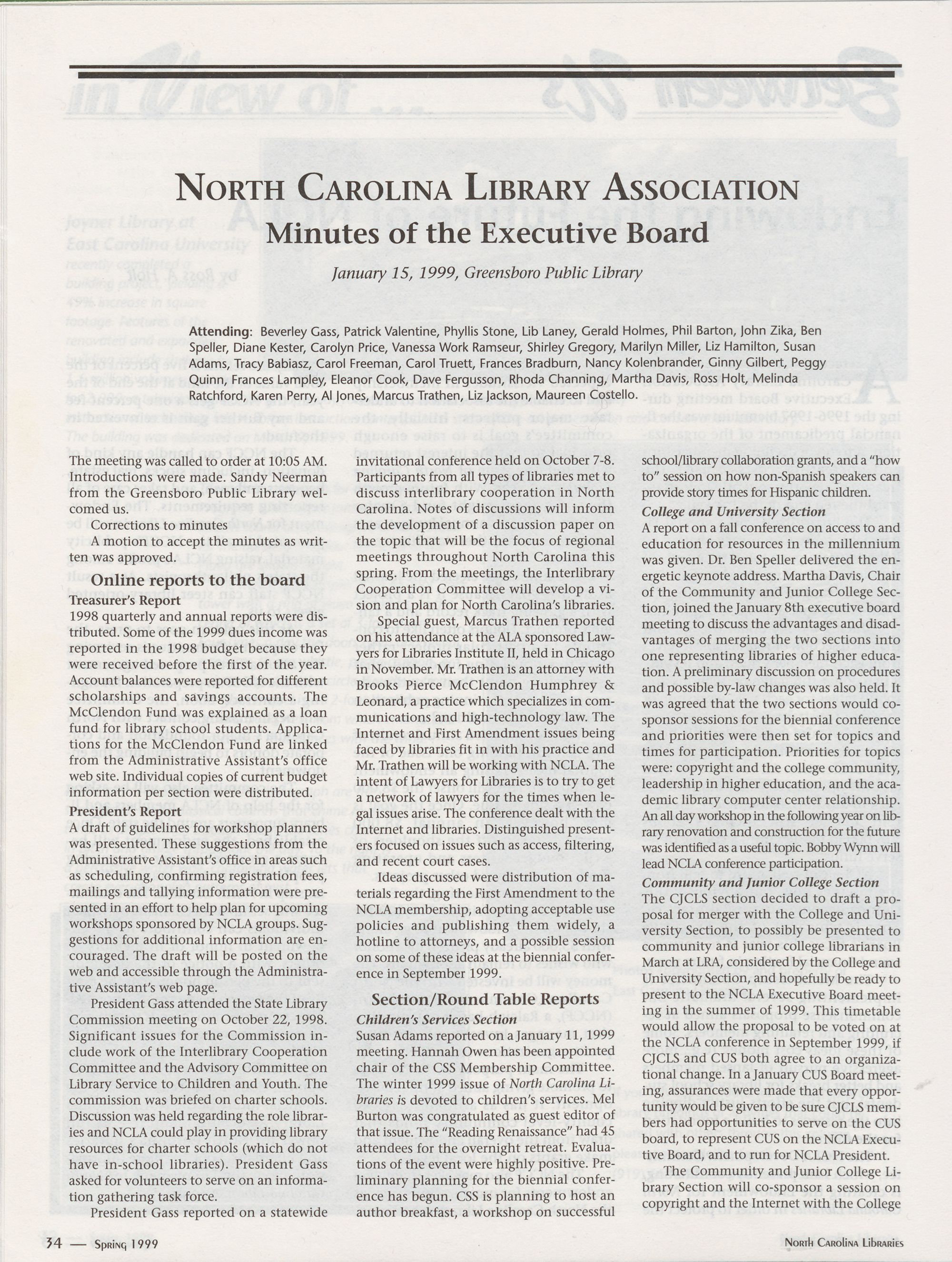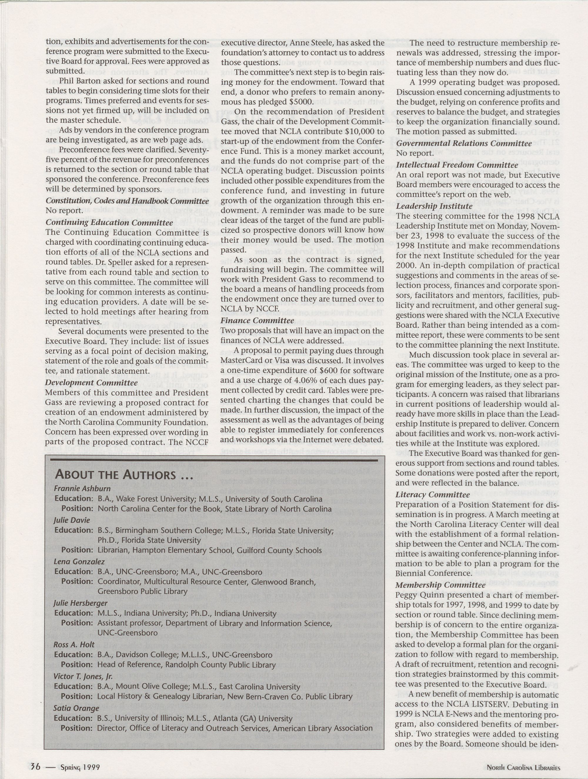 Carolina Library Association. Membership dues include a subscription to North Carolina