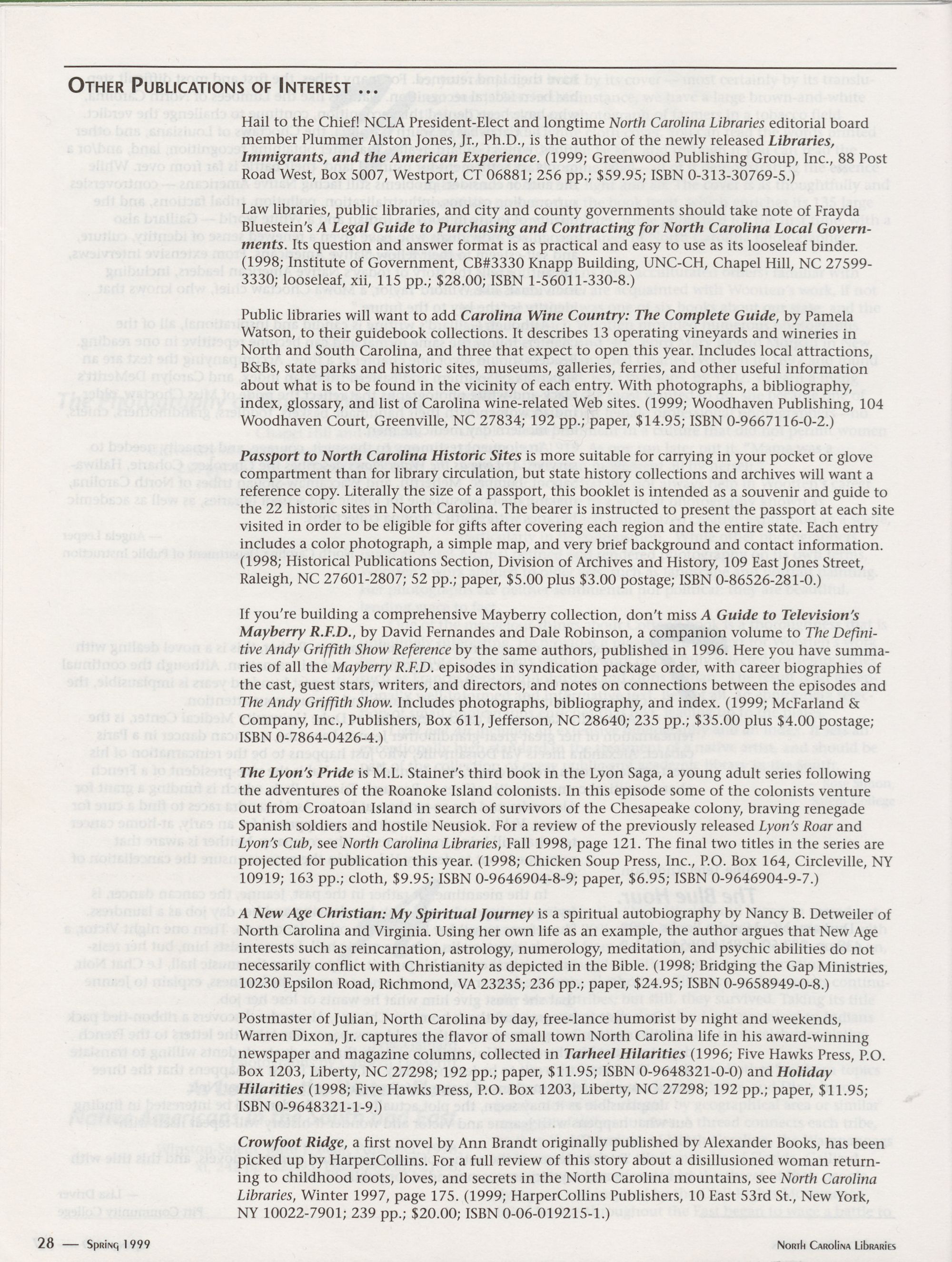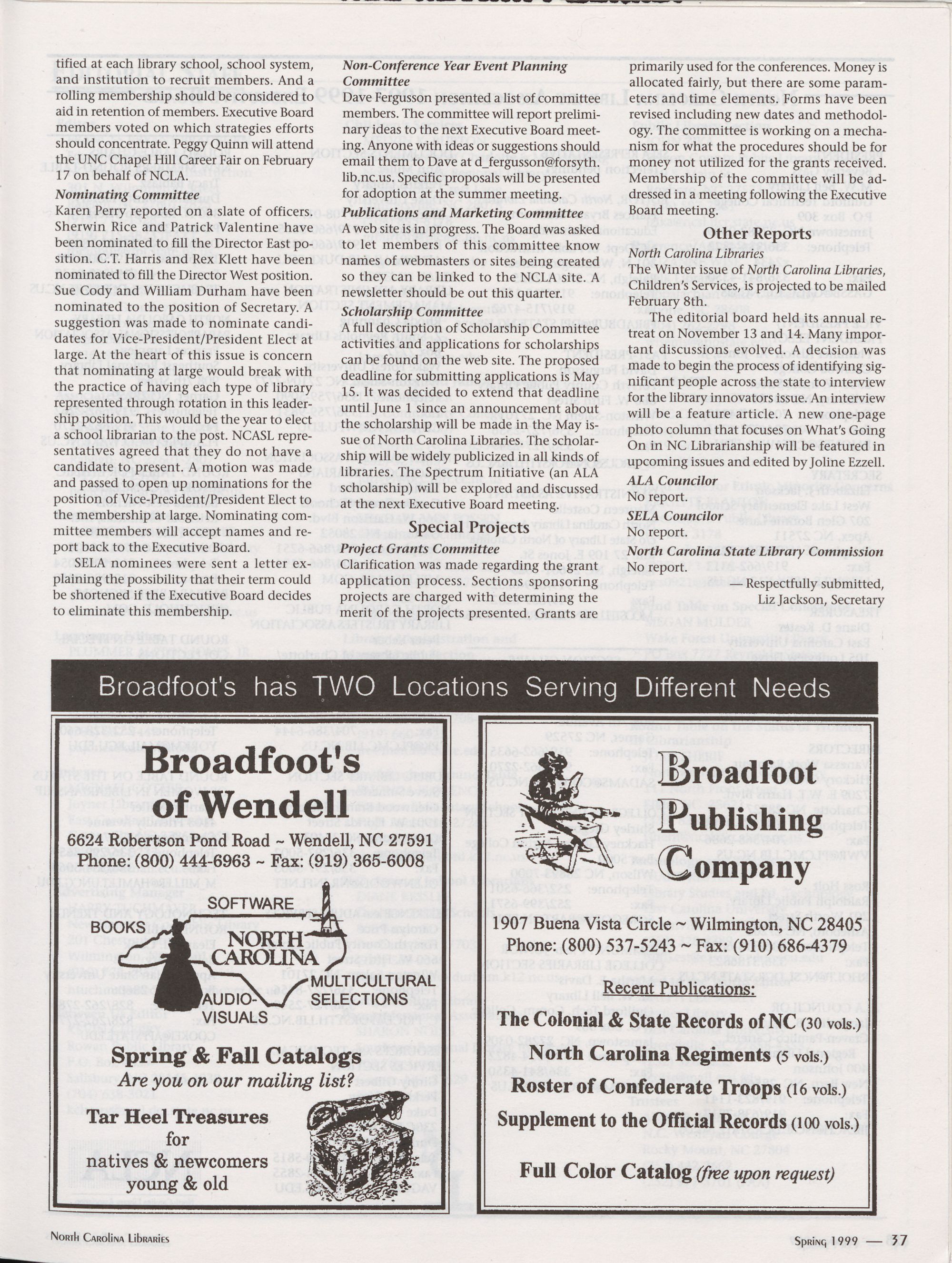 North Carolina Libraries, published four times a year, is the official publication of the North
