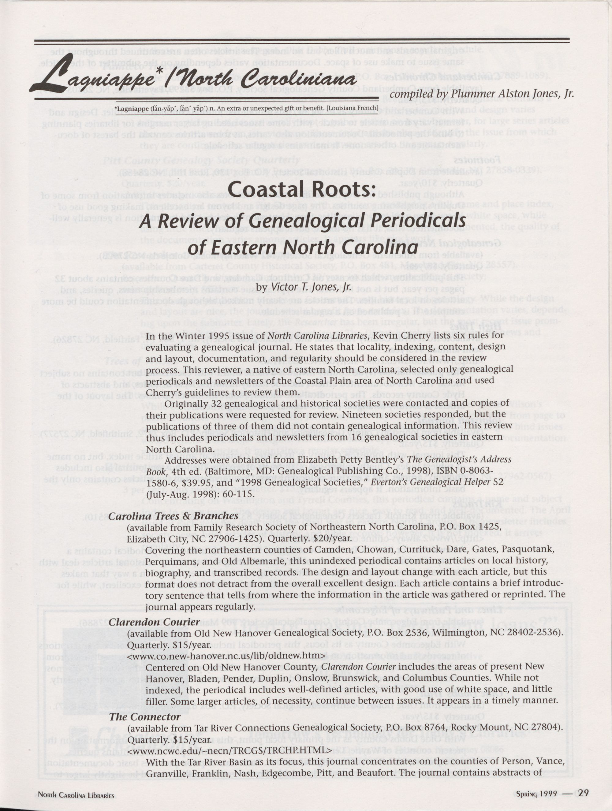 Lagniappe: Coastal Roots: A Review of Genealogical Periodicals of Eastern