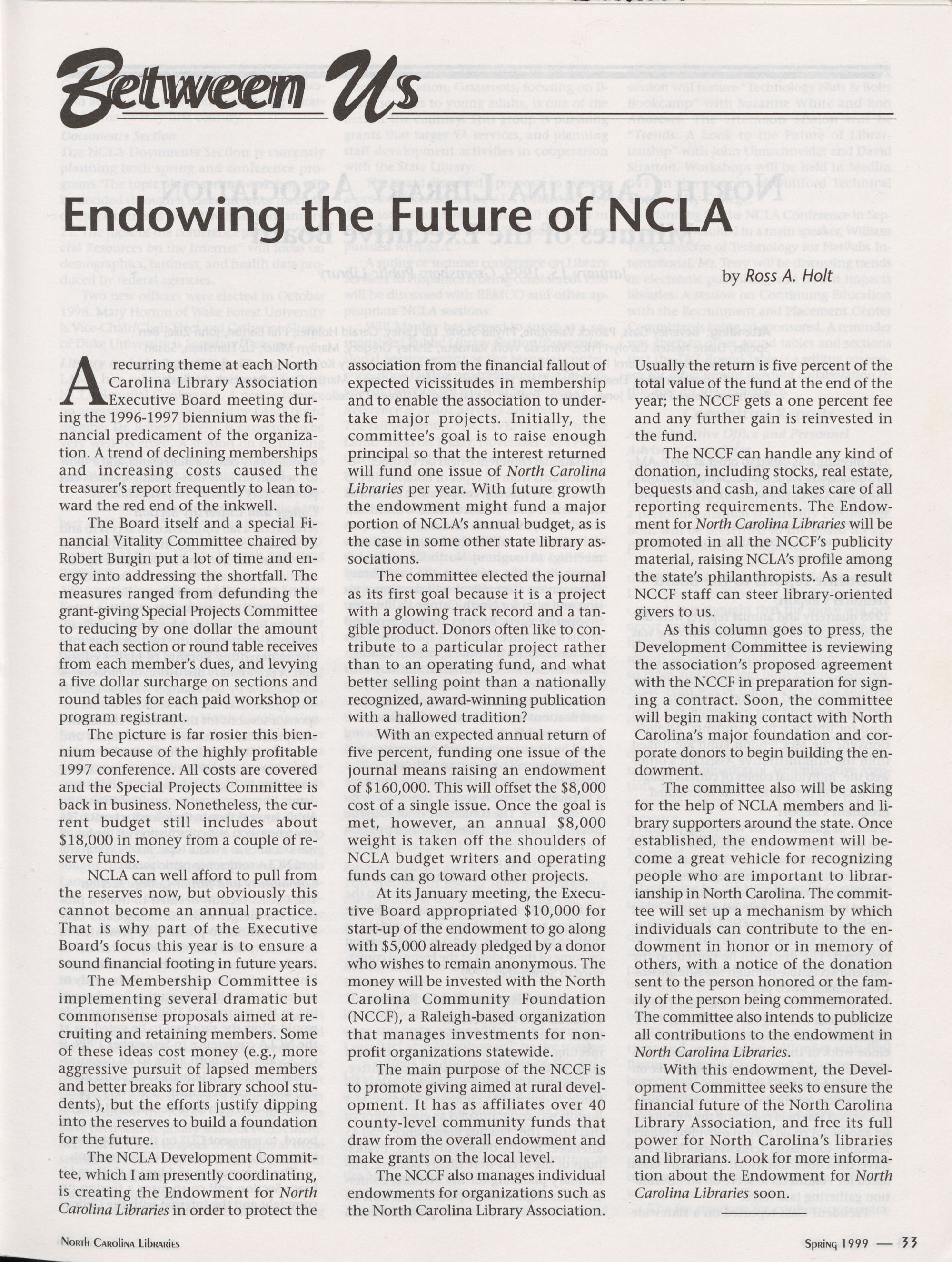Between Us: Endowing the Future of NCLA, Ross A. Holt