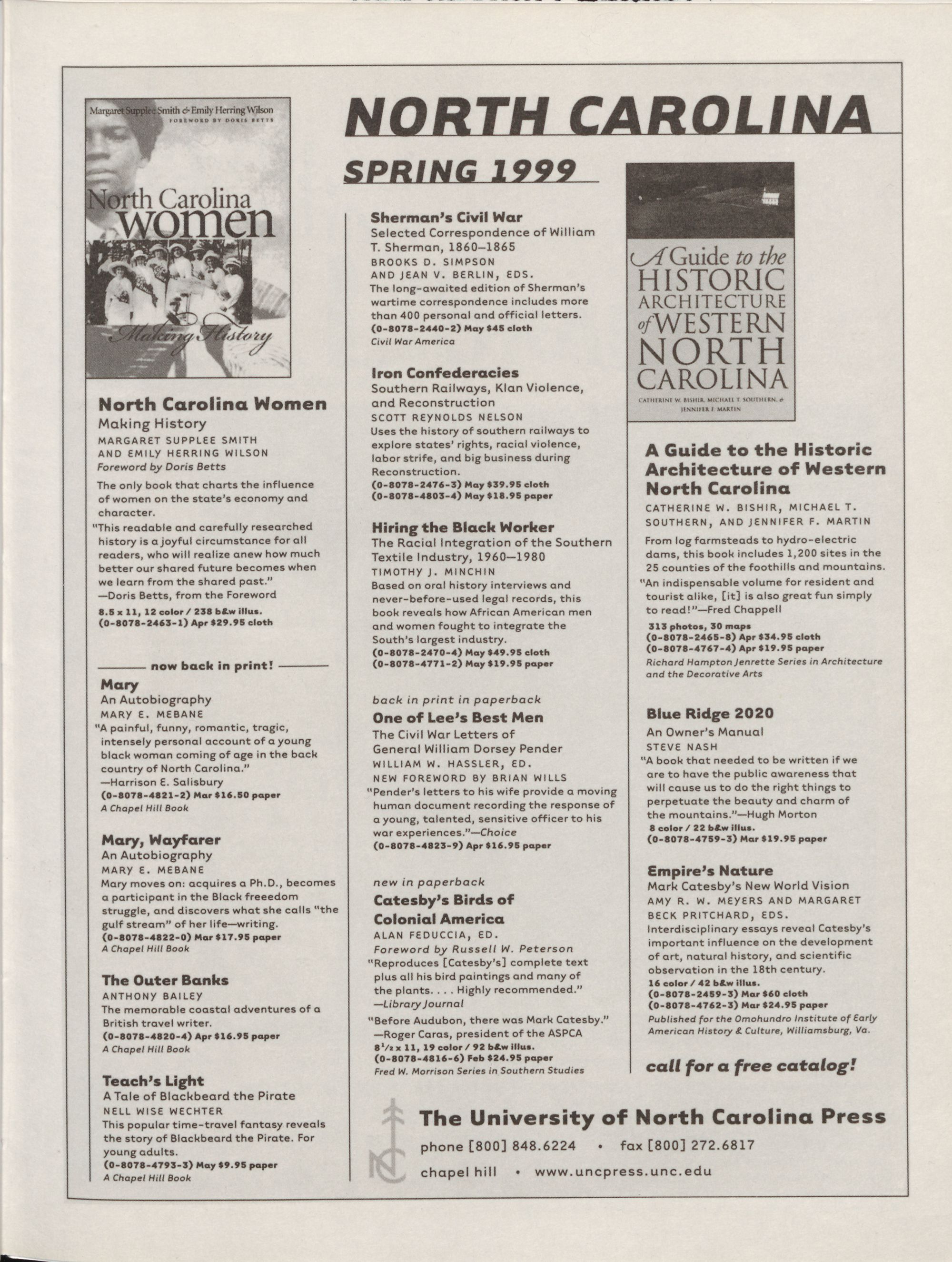 Unsolicited articles dealing with the above themes or any issue of interest to North Carolina