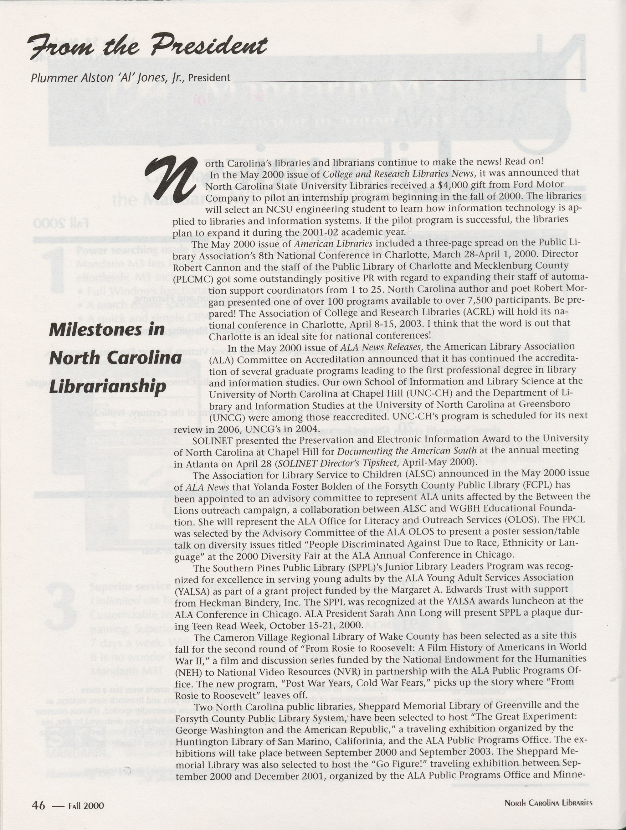 brary AssociationTs 8th National Conference in Charlotte, March 28-April 1, 2000. Director