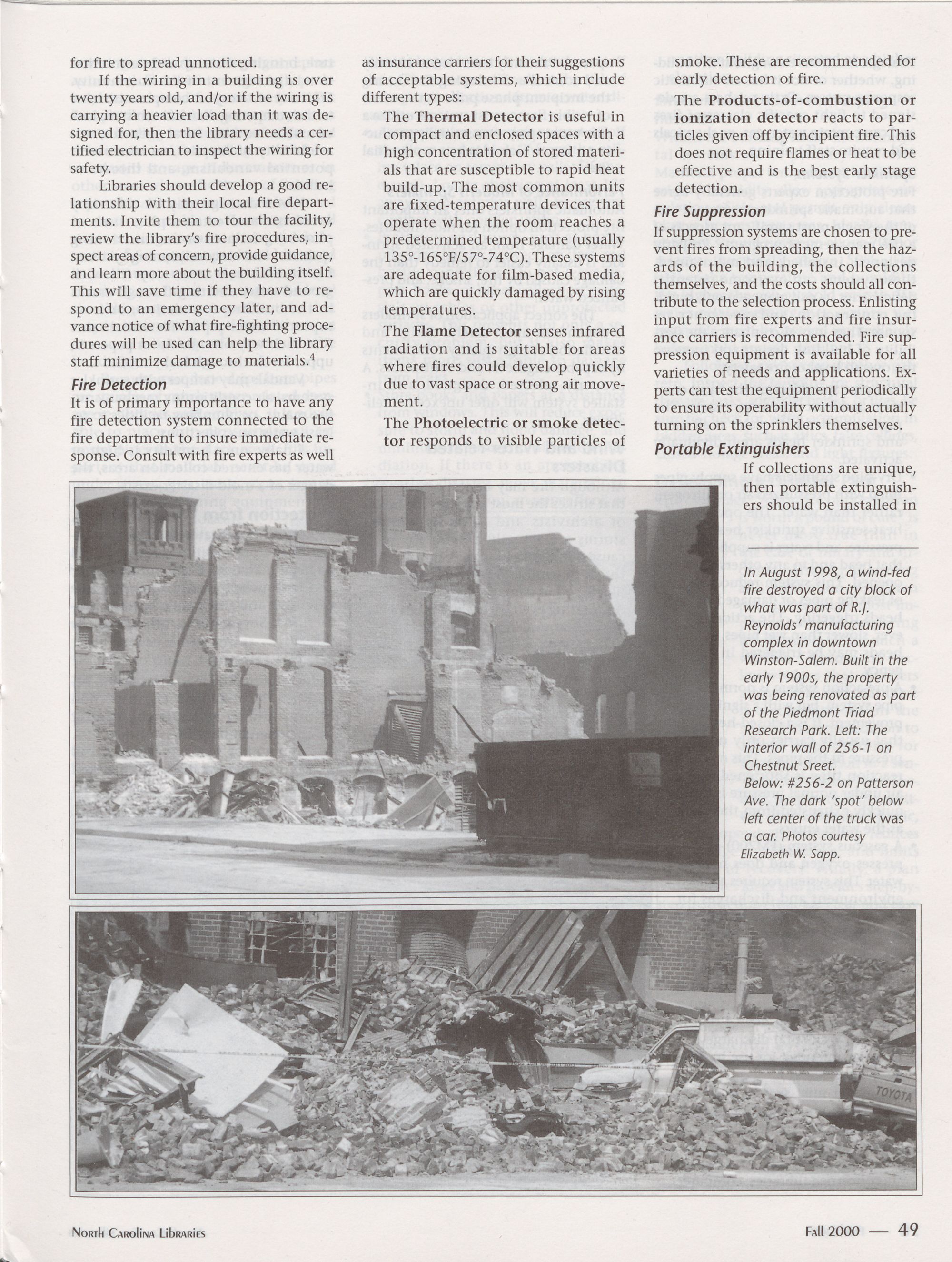 Ebsco, 87 Gary Weathersbee.) Right top: This building in Winston-Salem was destroyed by fire, see
