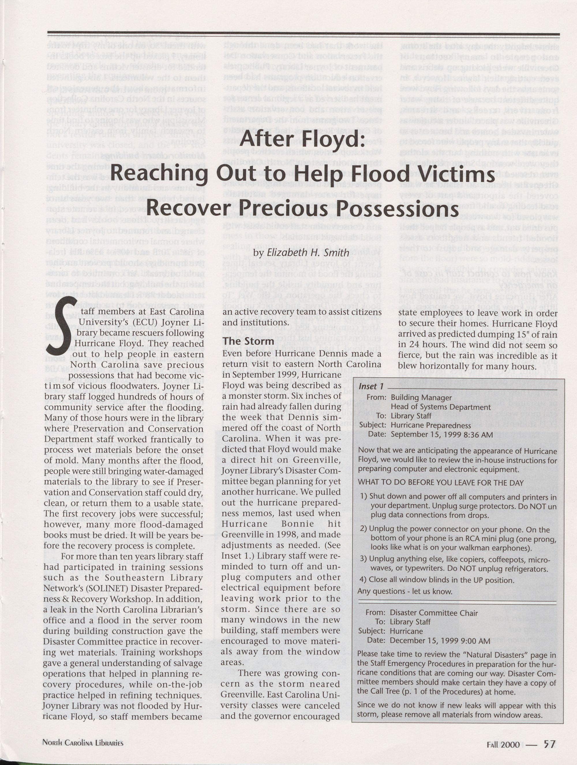 Current Editions, 86 inconvenience of the Floyd aftermath. Thousands of pets and livestock were victims, as
