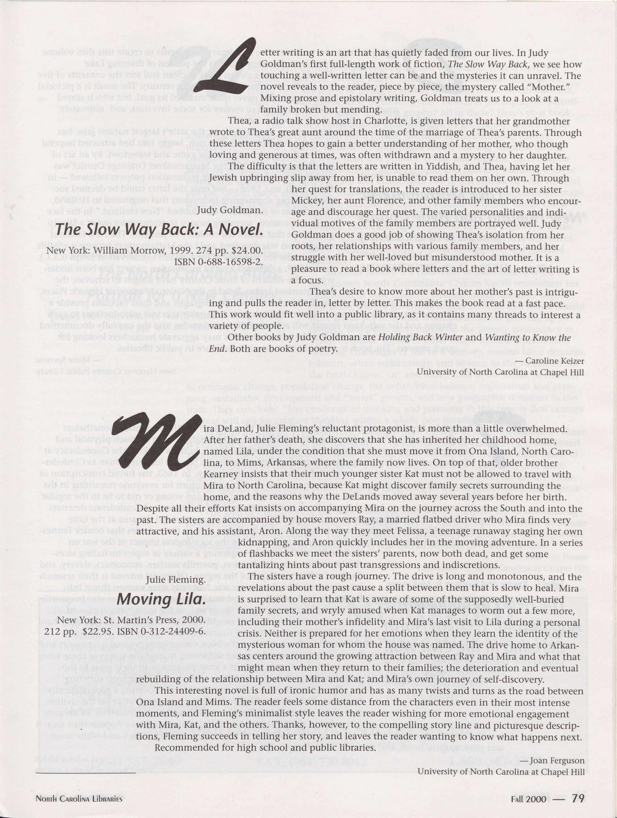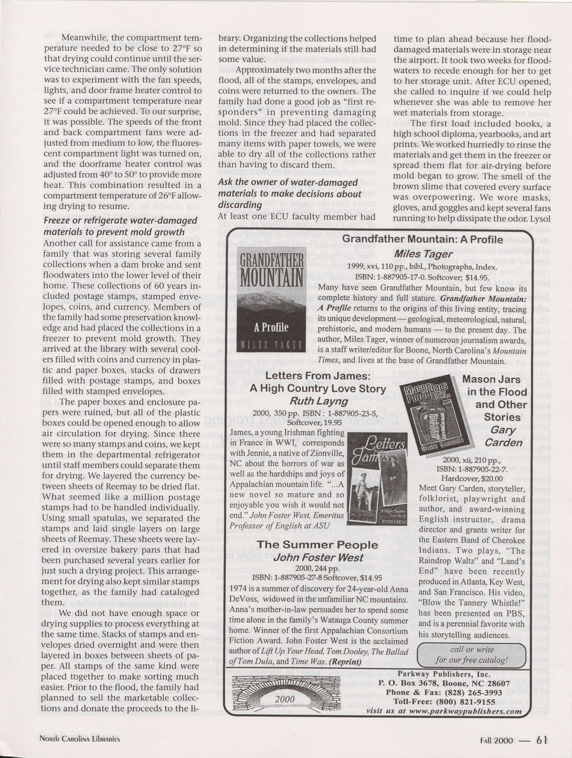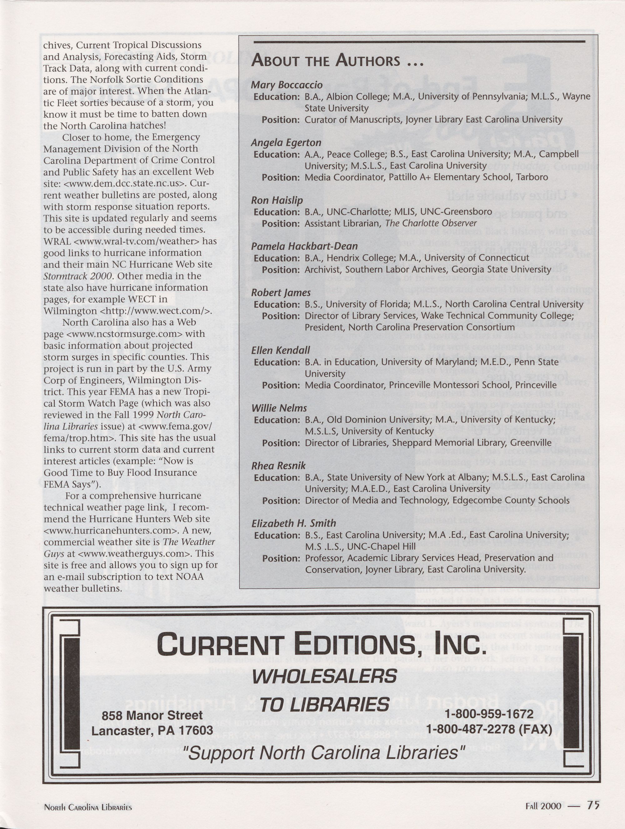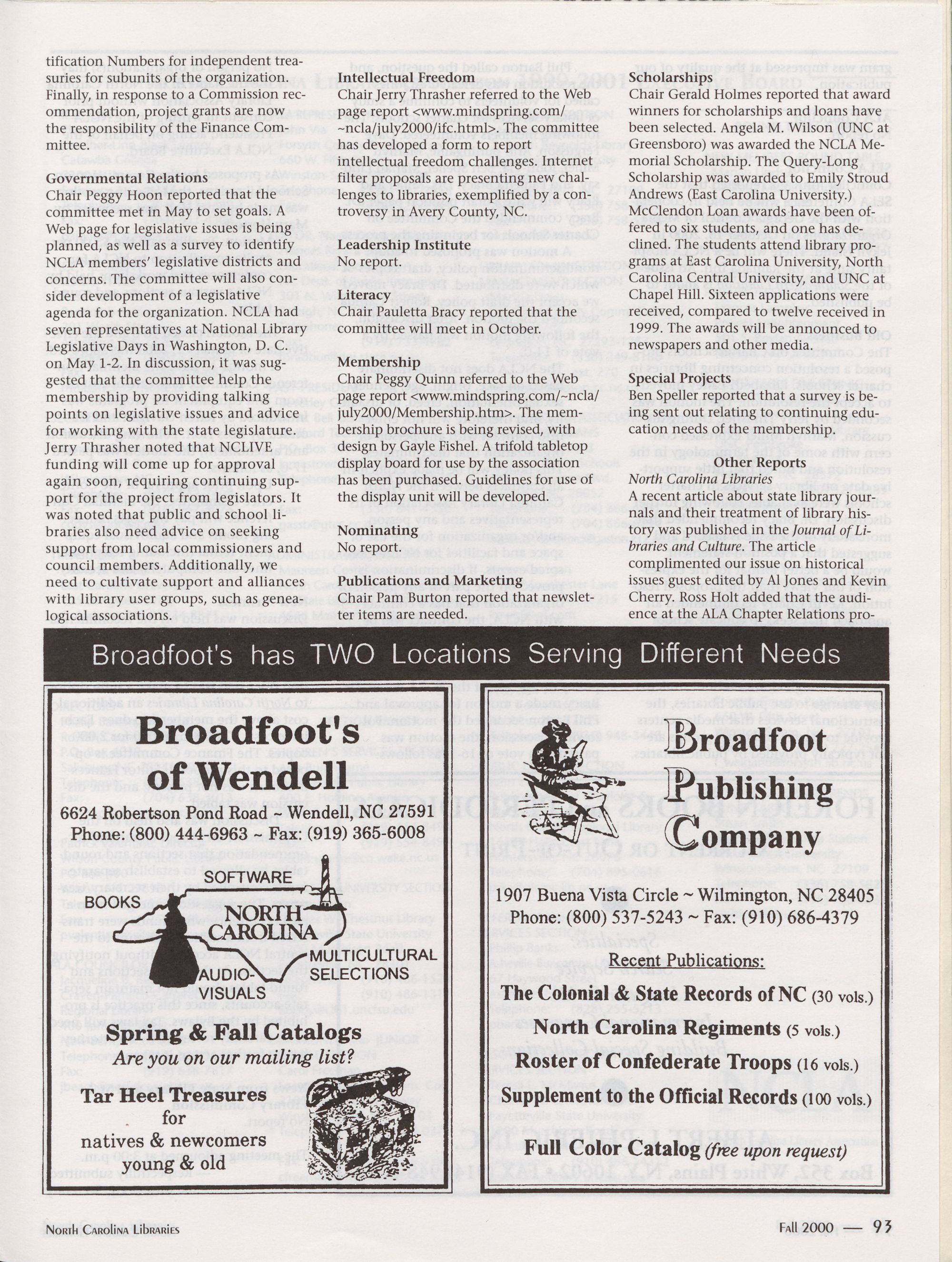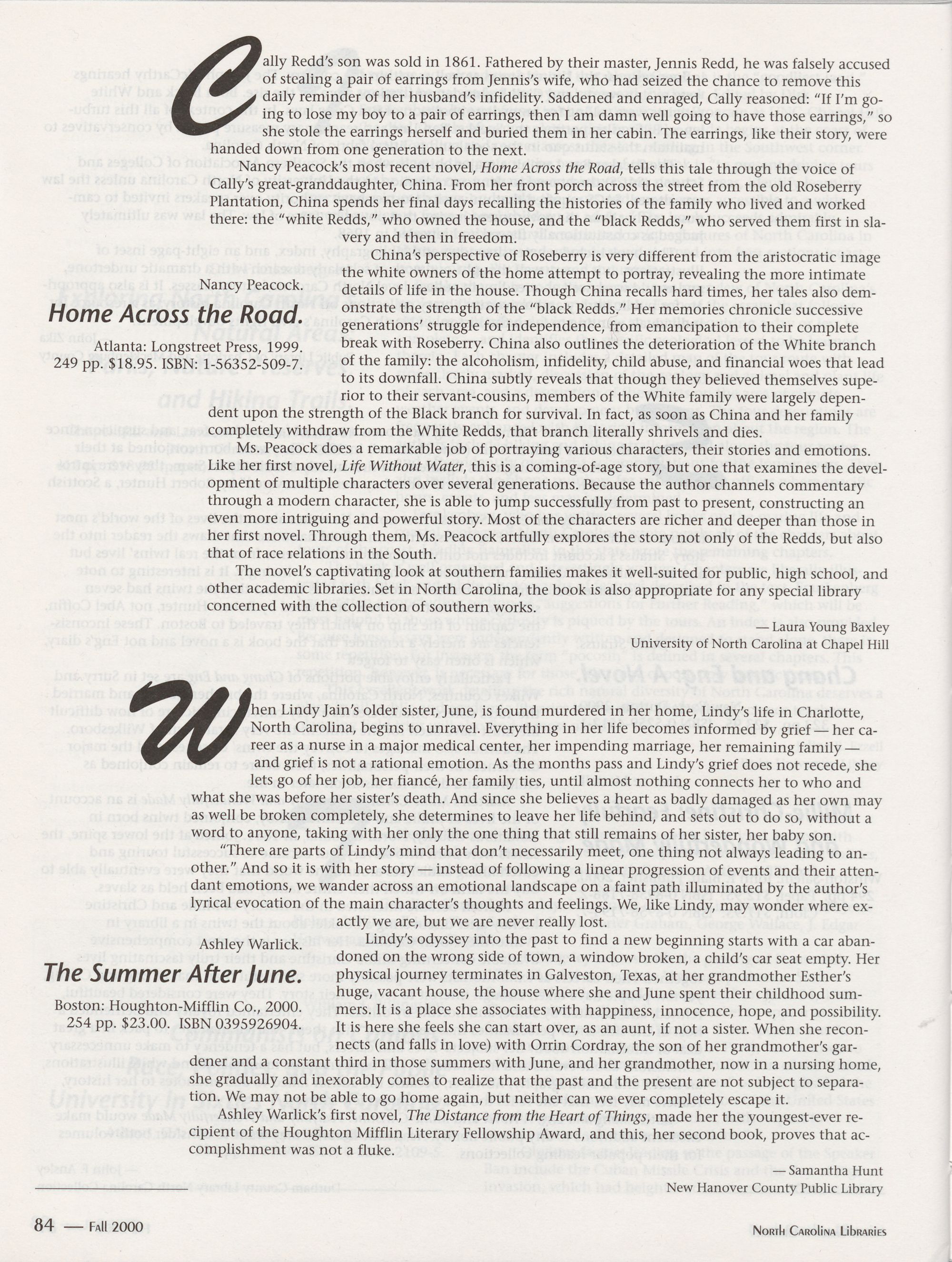 Spring 2002 North Carolina Publishers