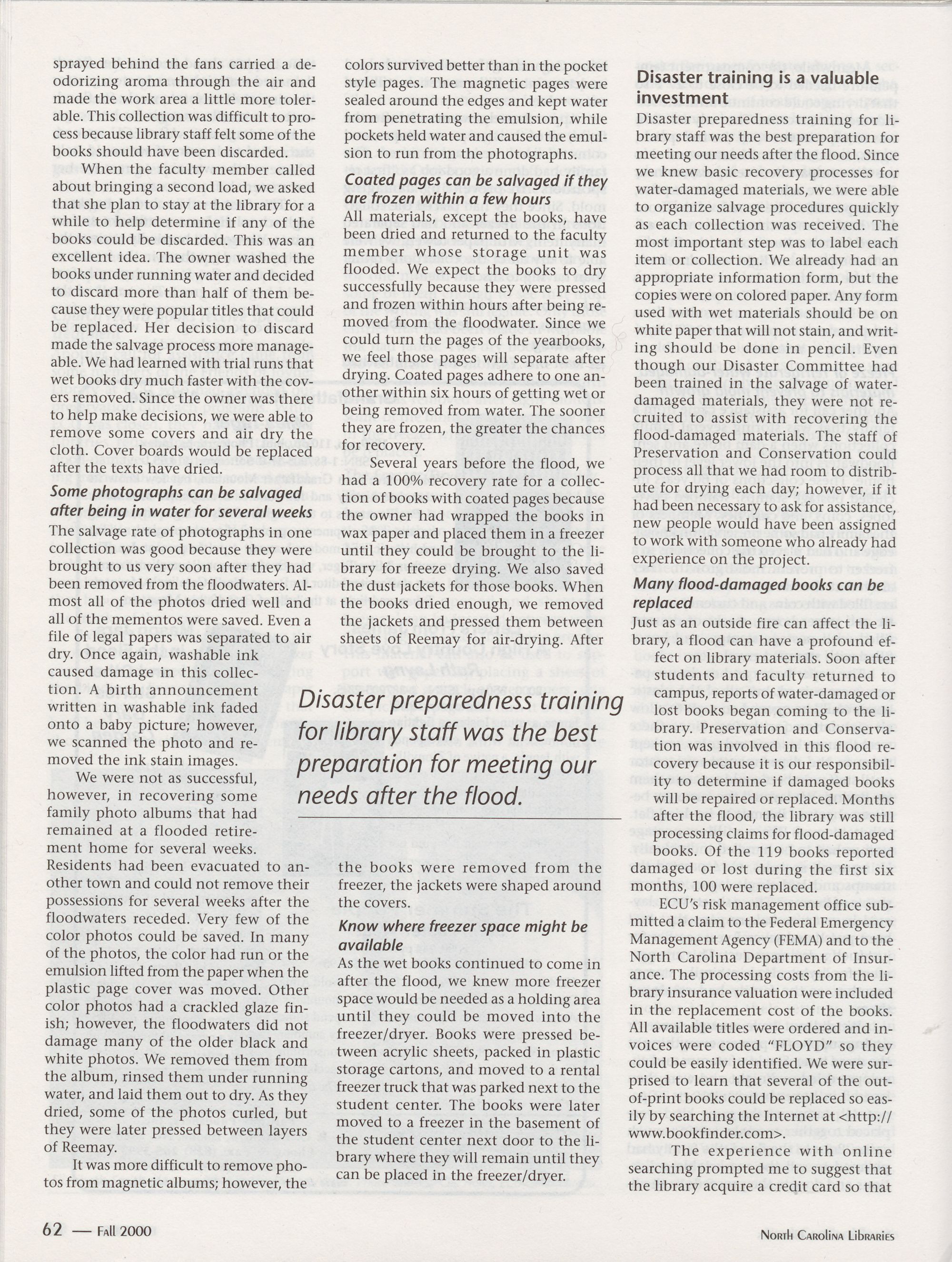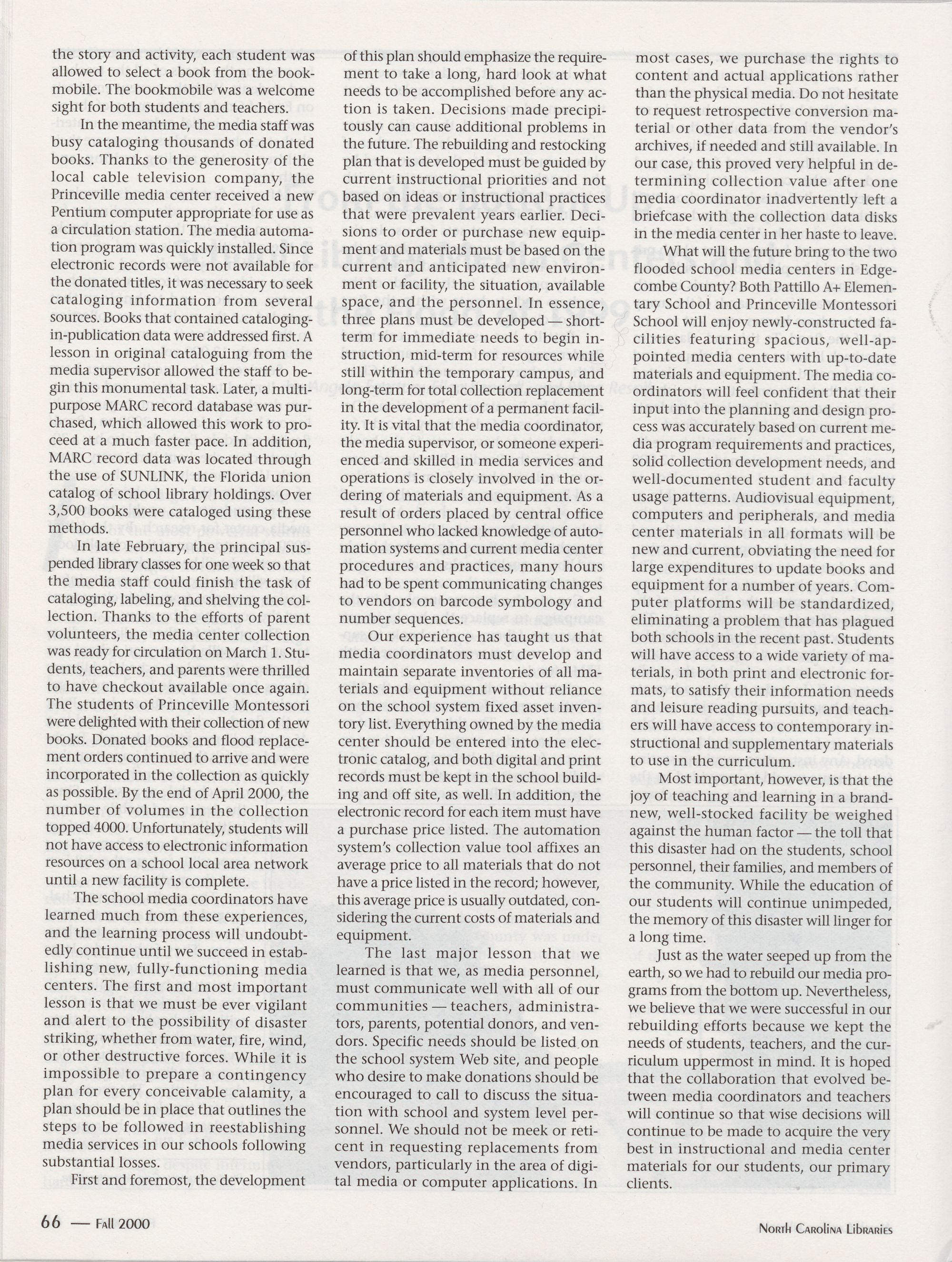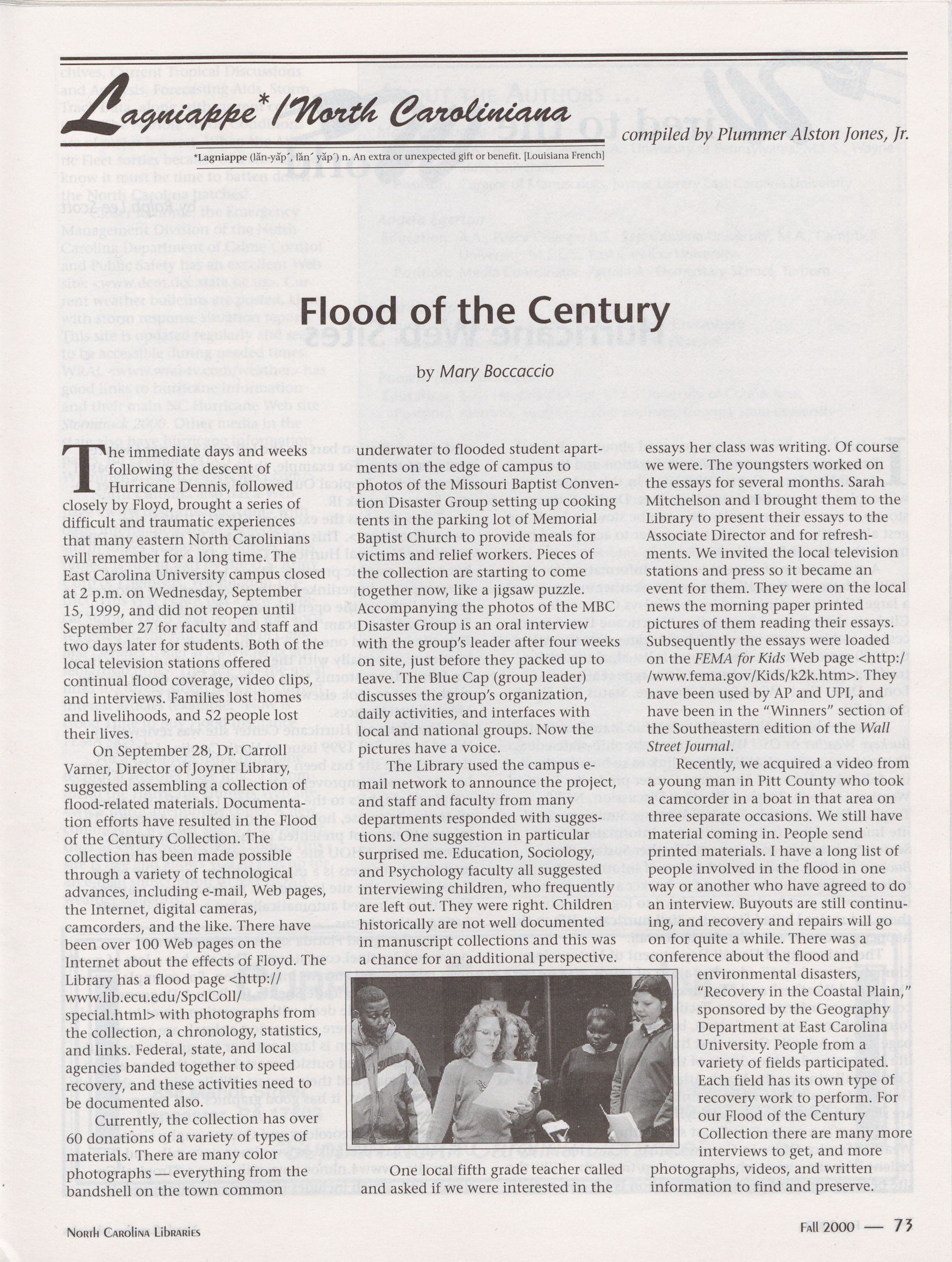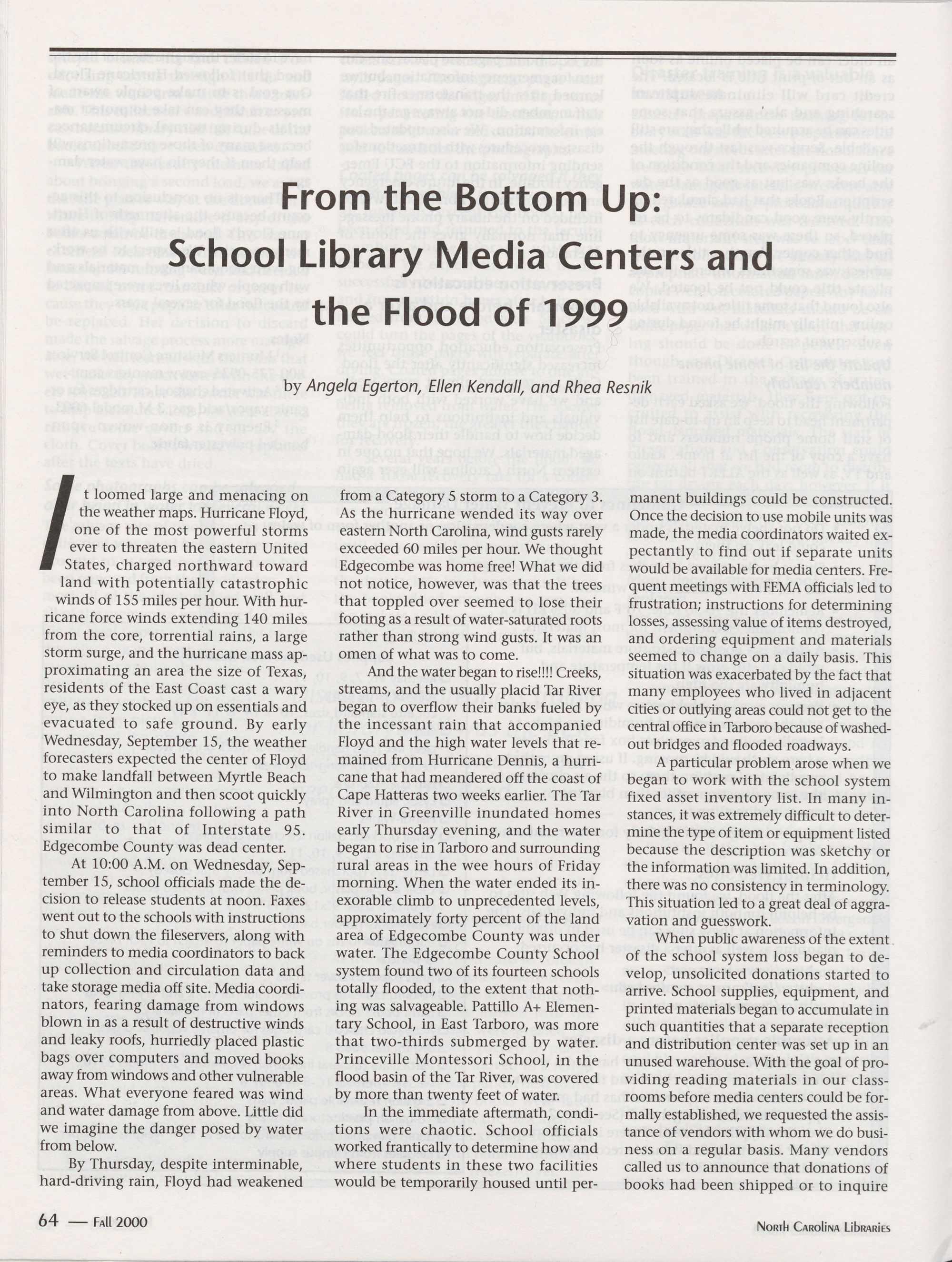 64 From the Bottom Up: School Library Media Centers and the Flood of 1999, Angela