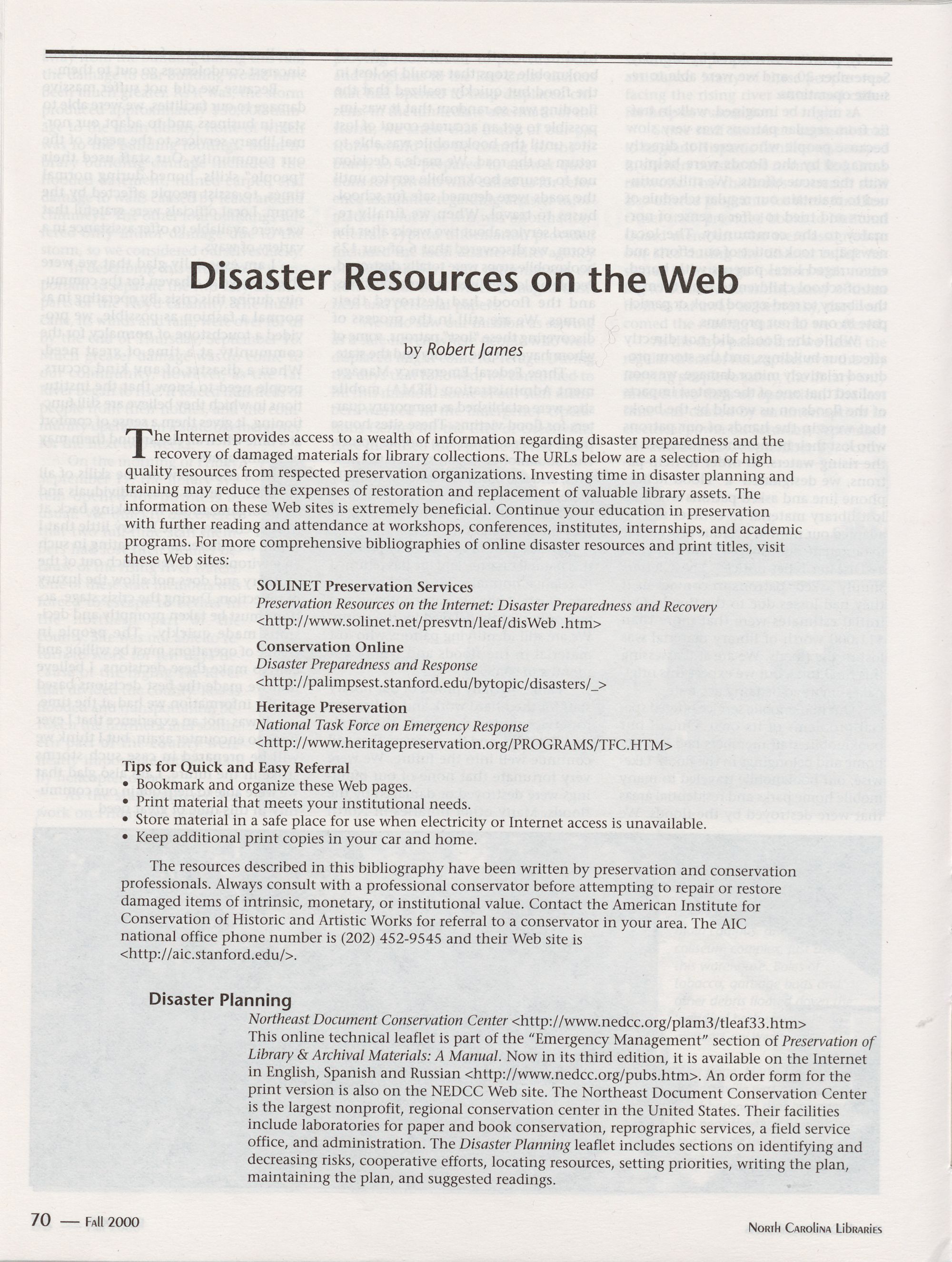 70 _ Disaster Resources on the Web, Robert James