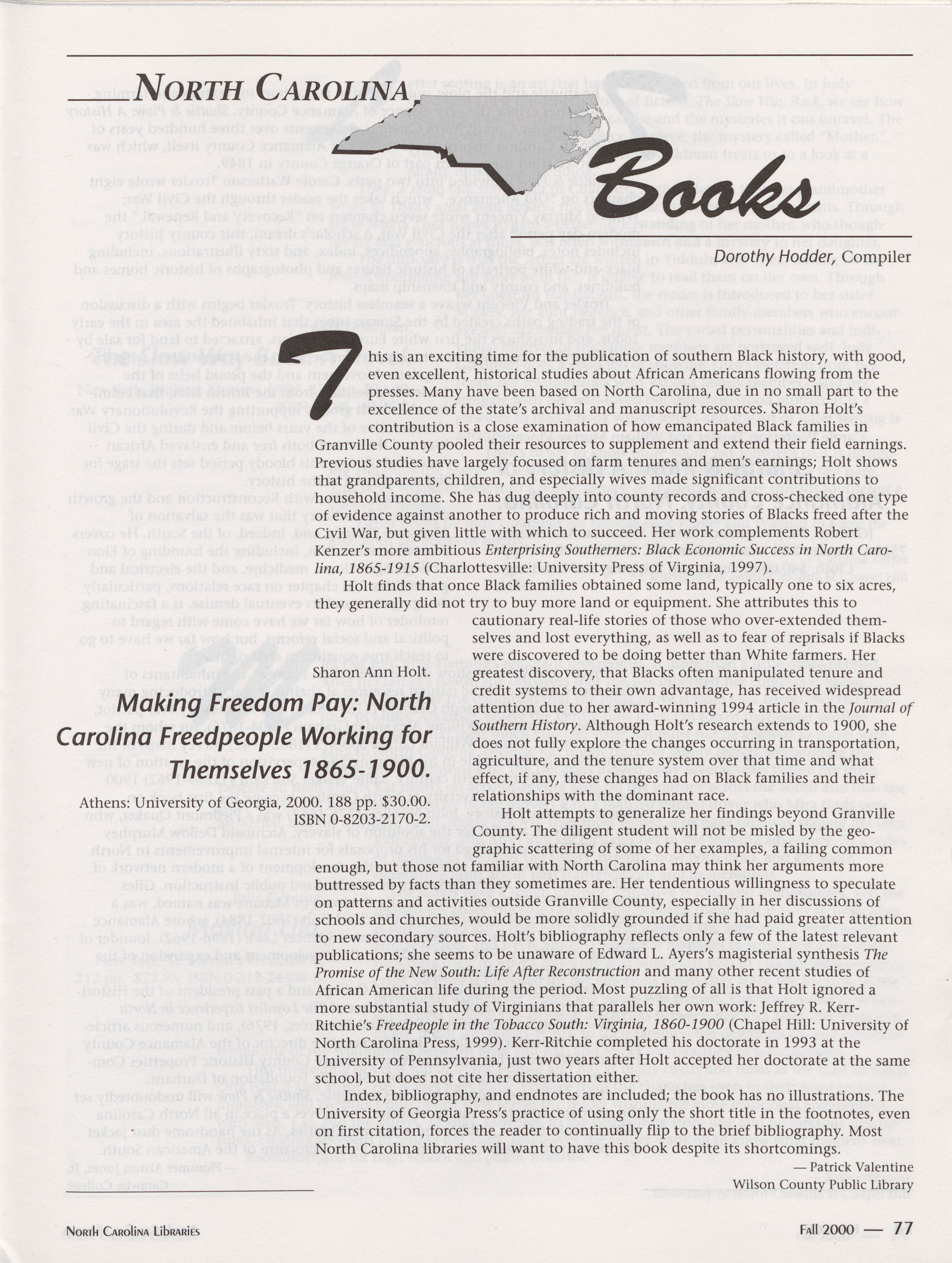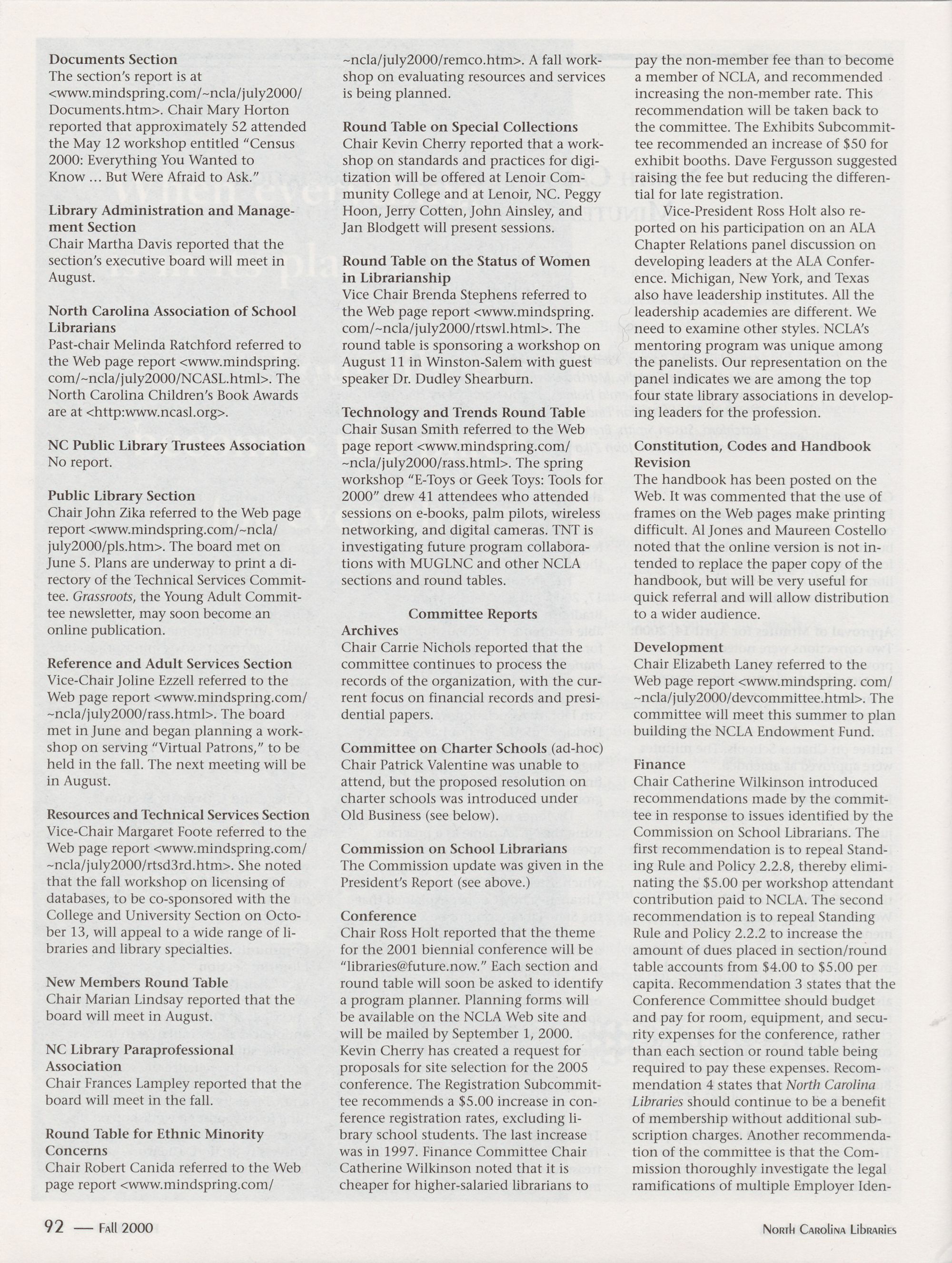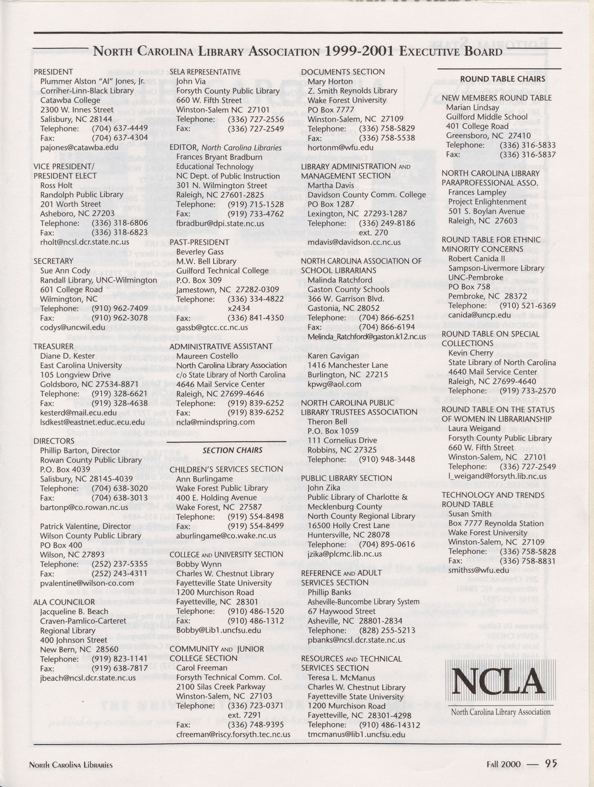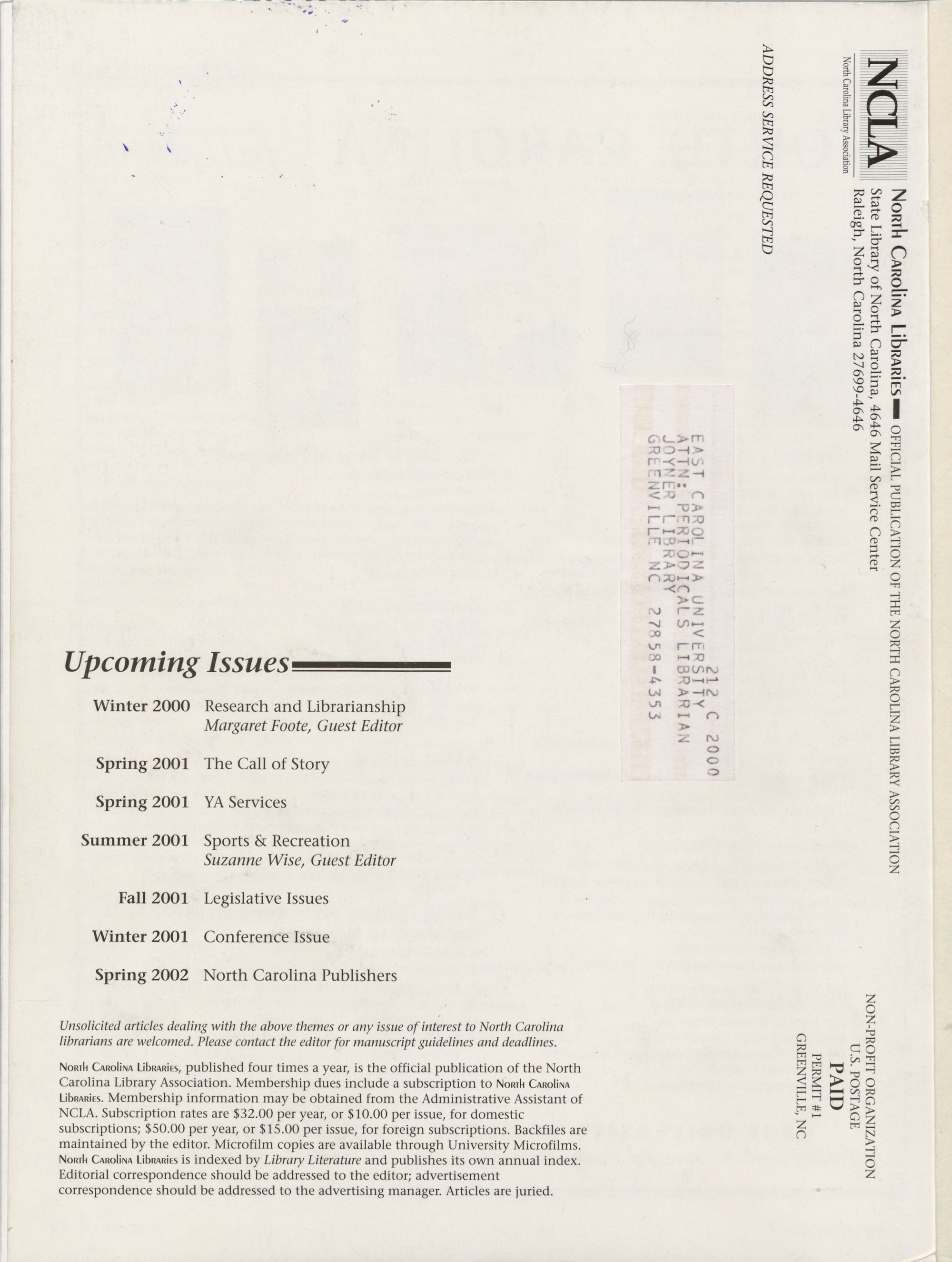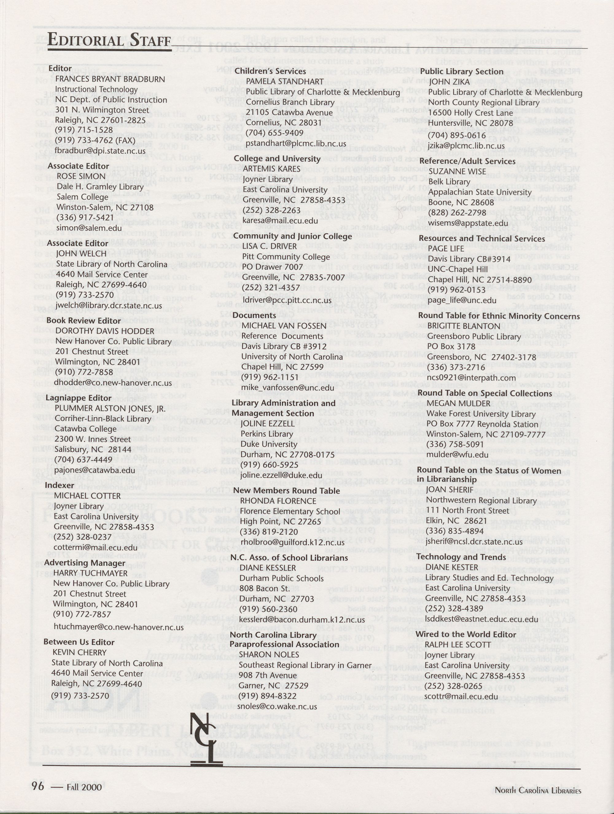 Carolina Library Association. Membership dues include a subscription to North Carolina