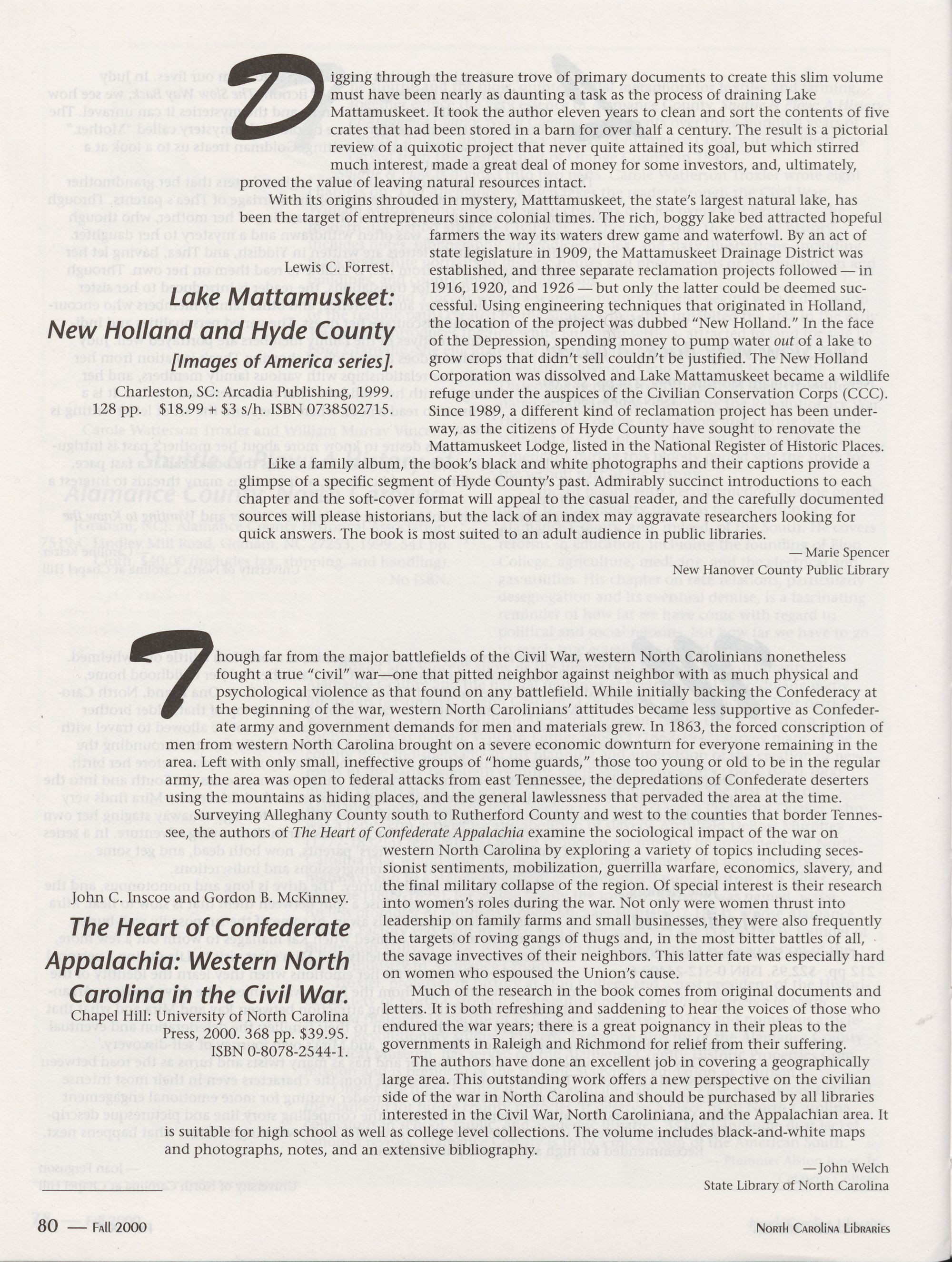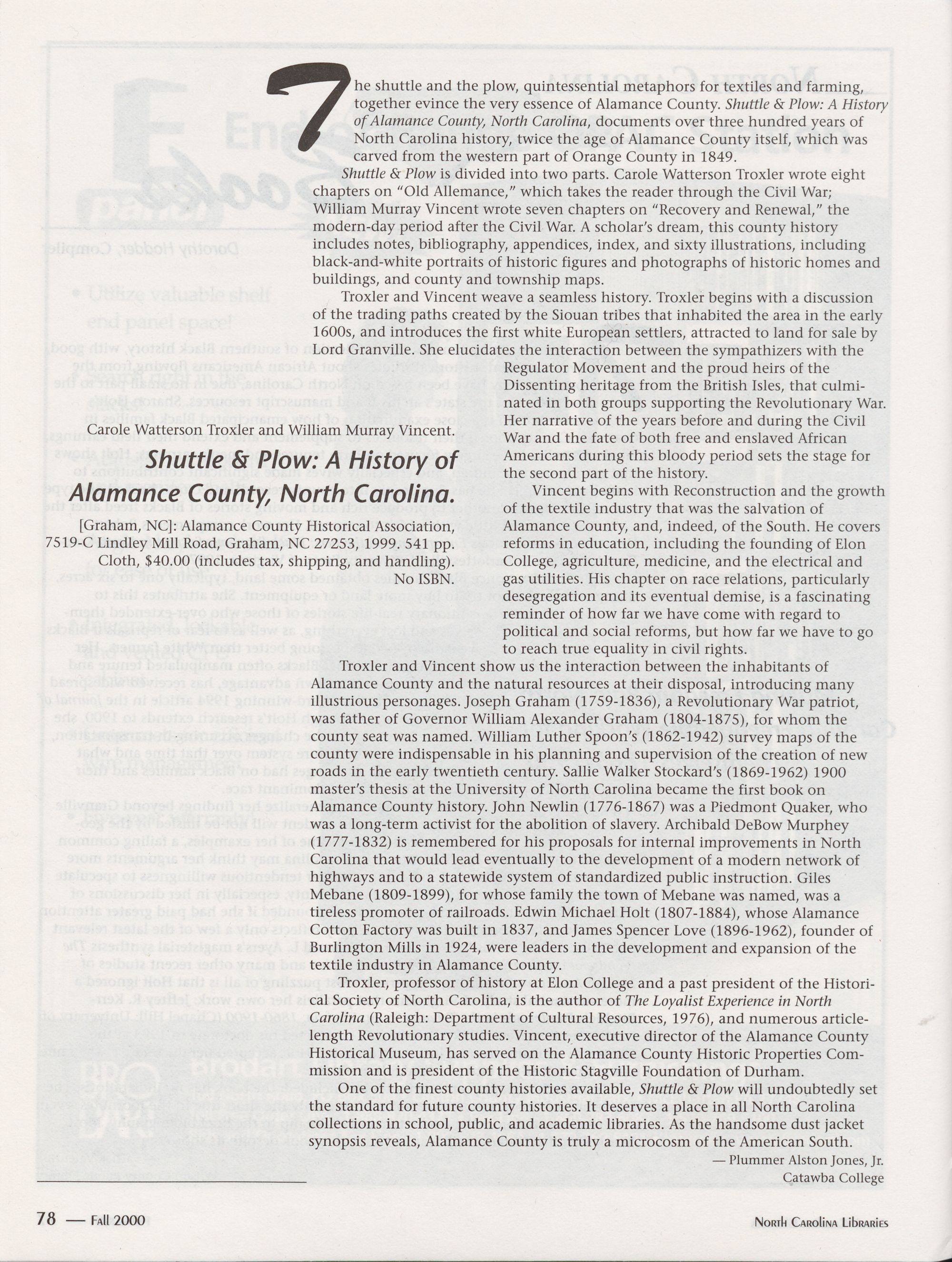 UNC Press, back cover Art direction and design by Pat Weathersbee of TeamMedia, Greenville, NC.