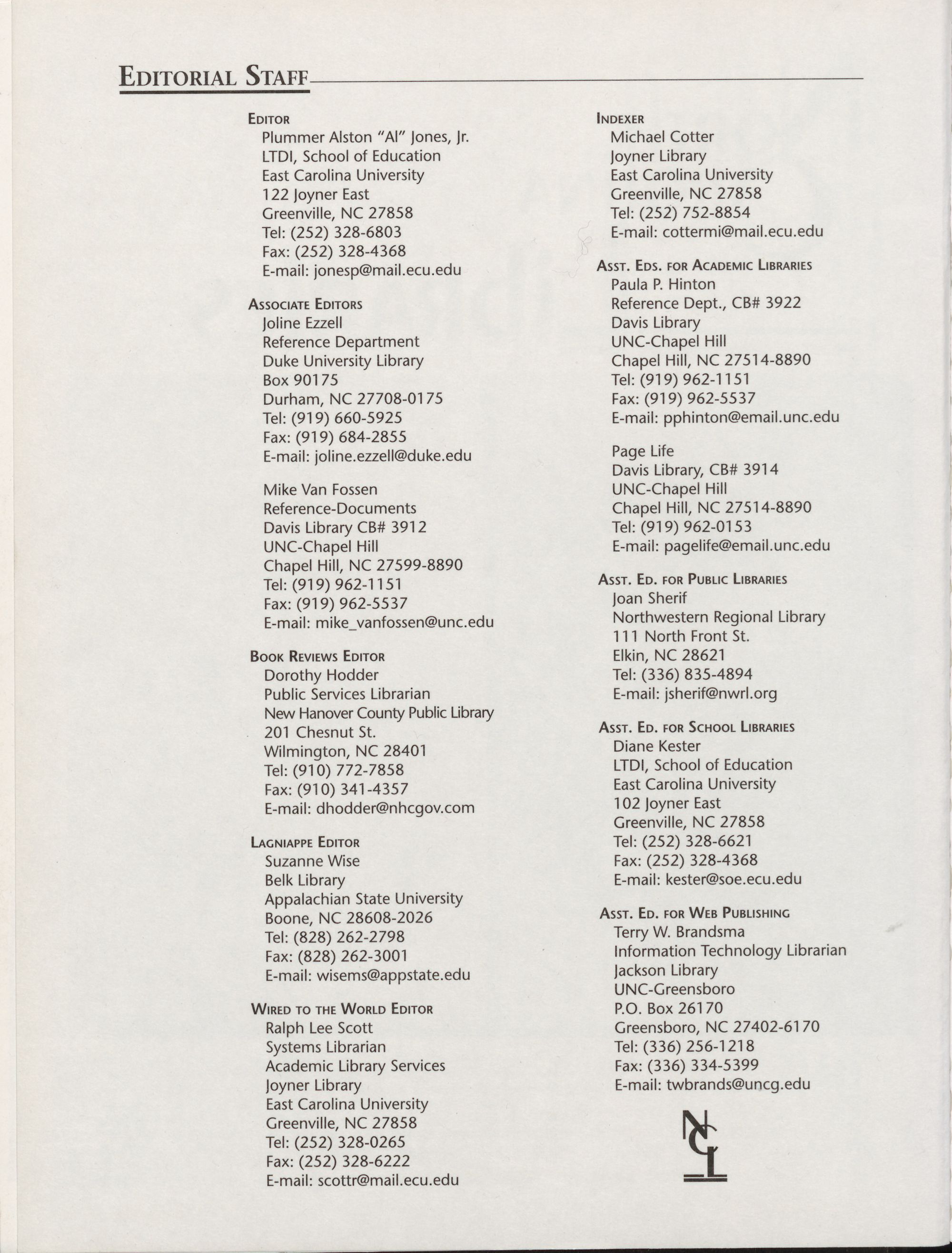of her service to NCLA as editor of North Carolina