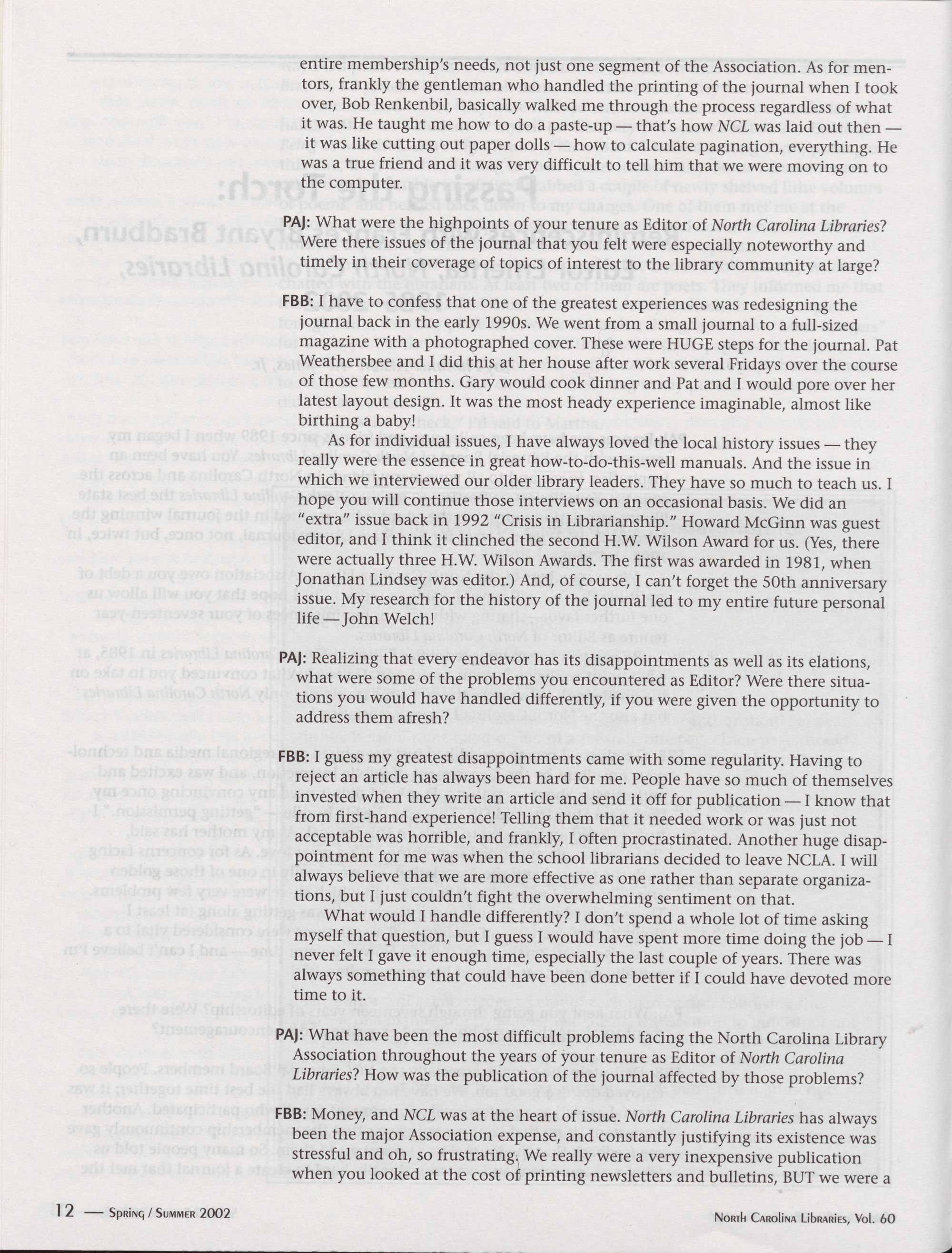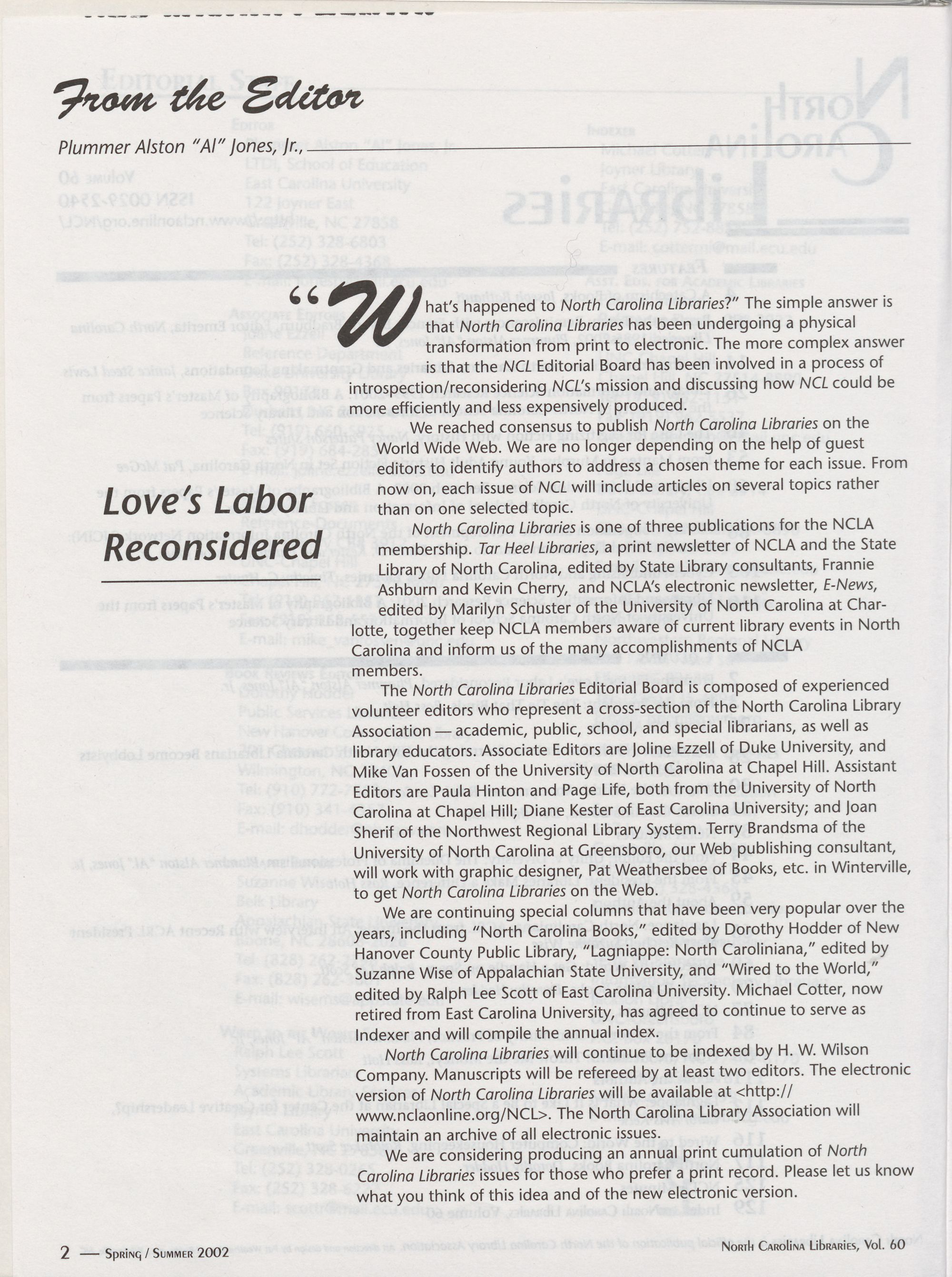 North Carolina Libraries be converted to a journal