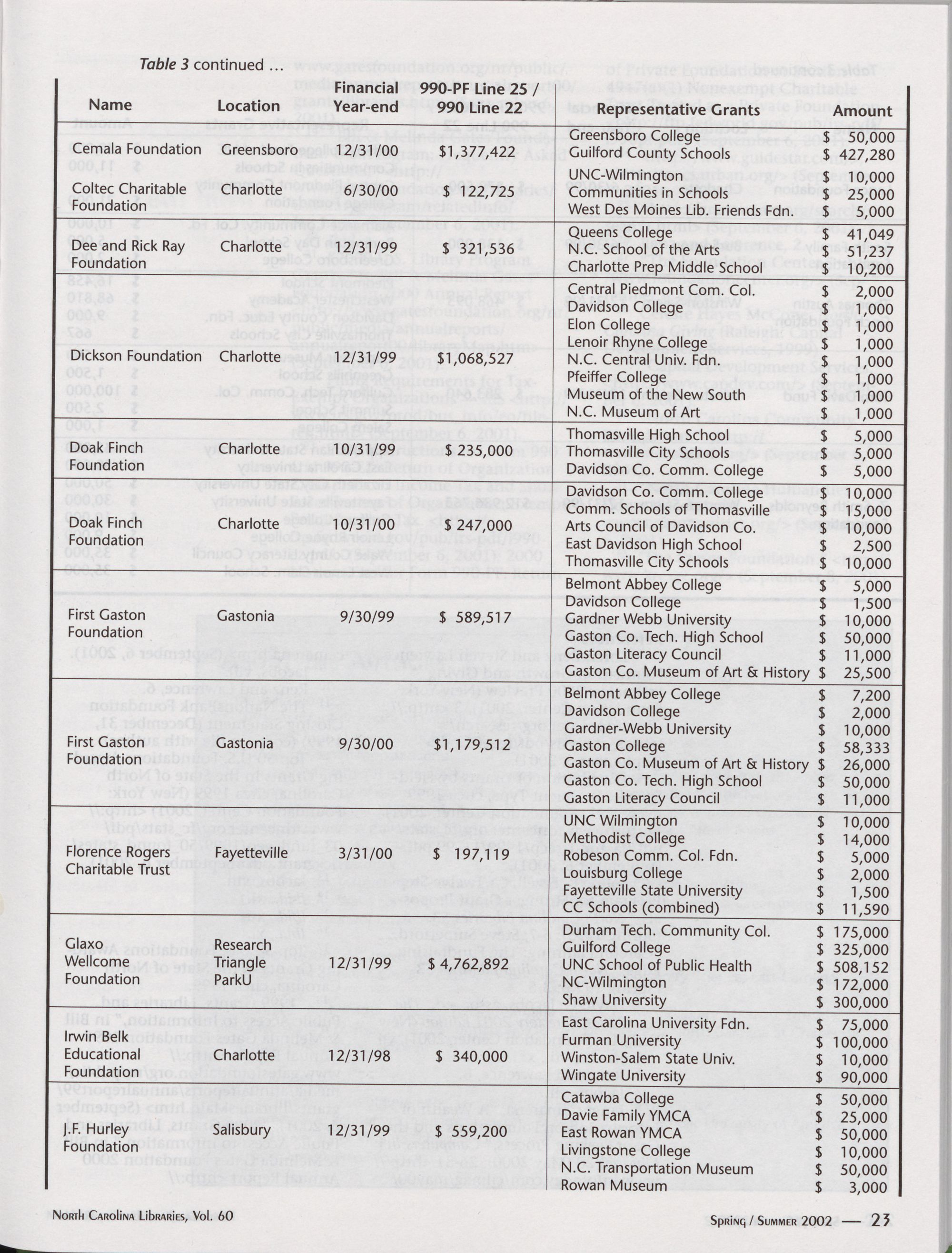 April 2002, Elon University; July 2002,