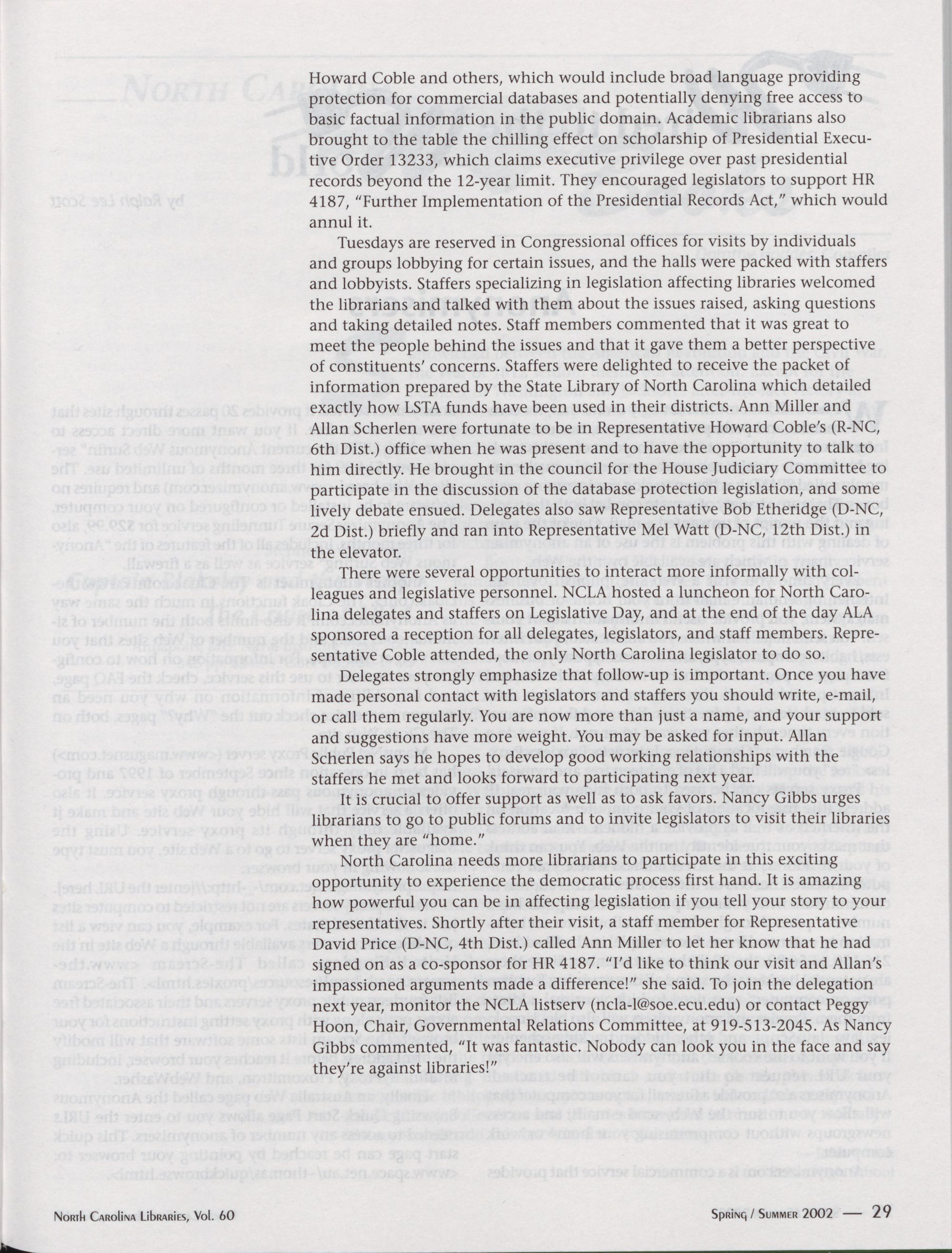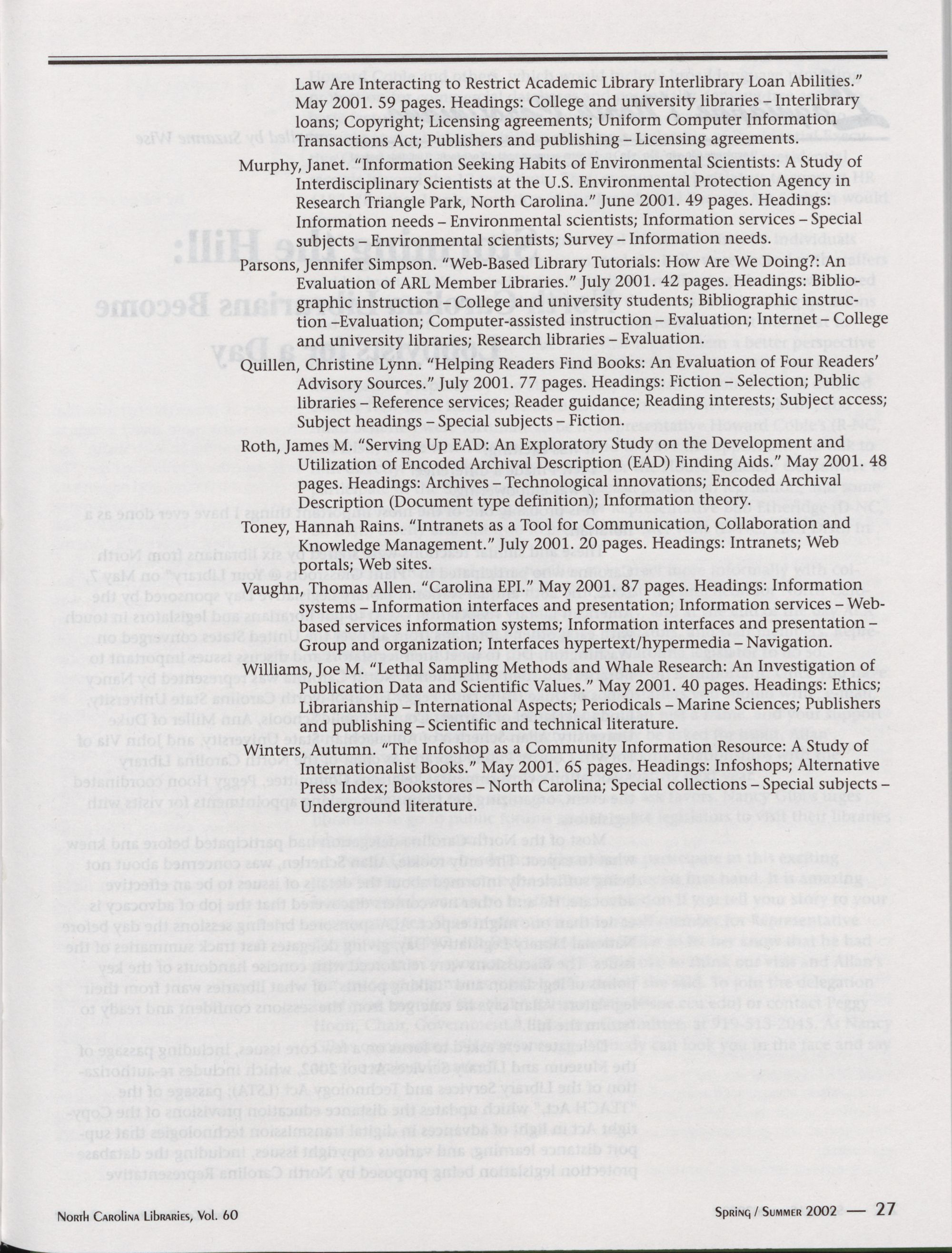 revive the publication of Tar Heel Libraries.