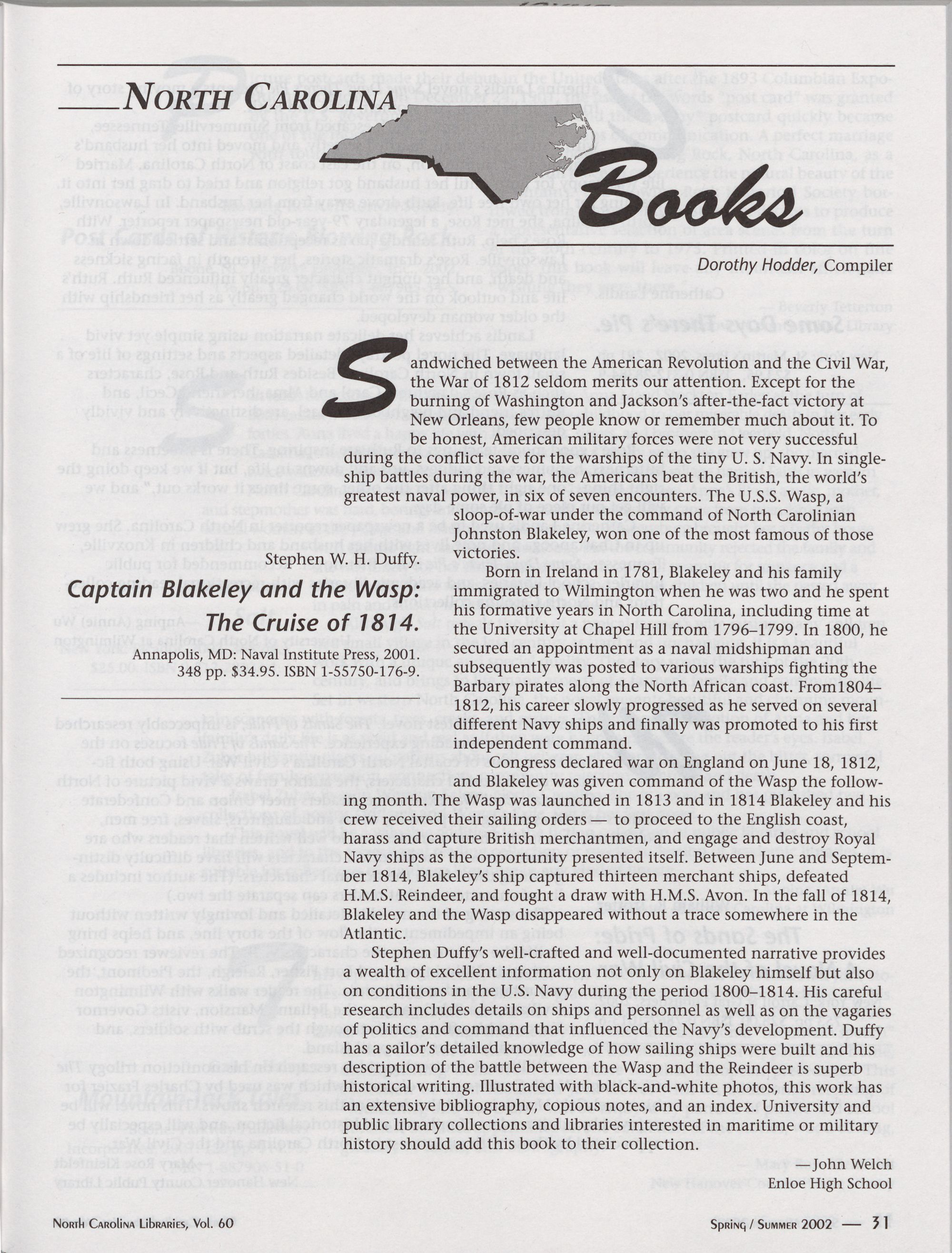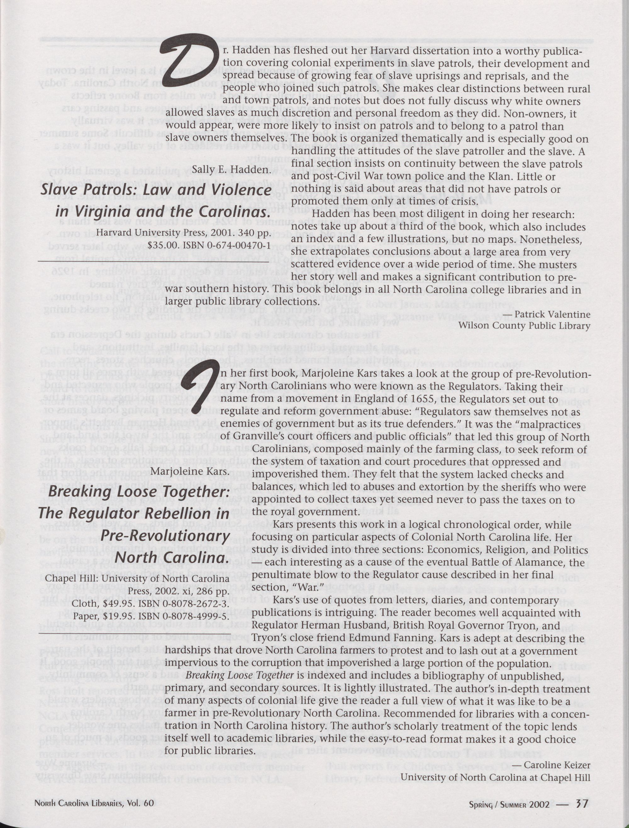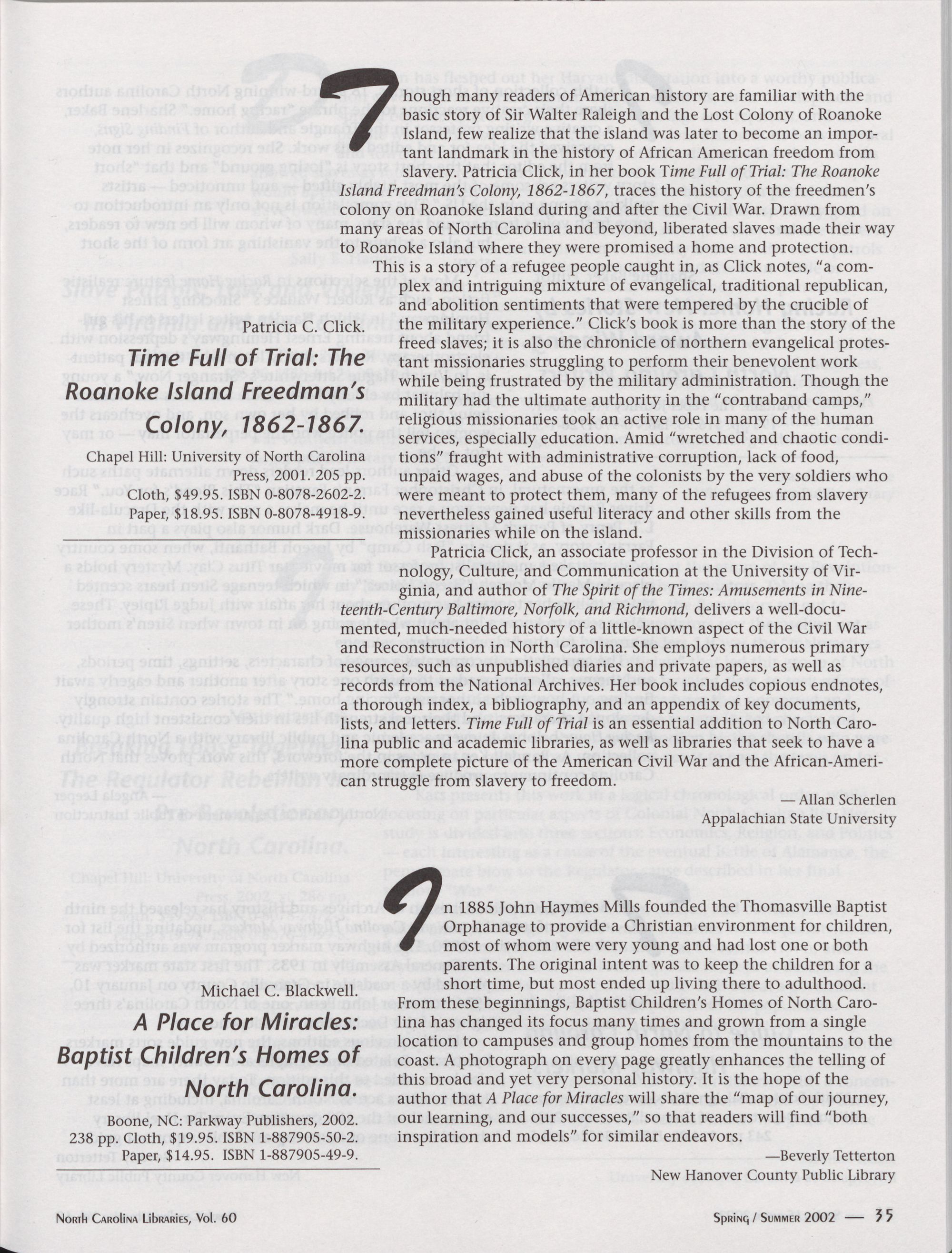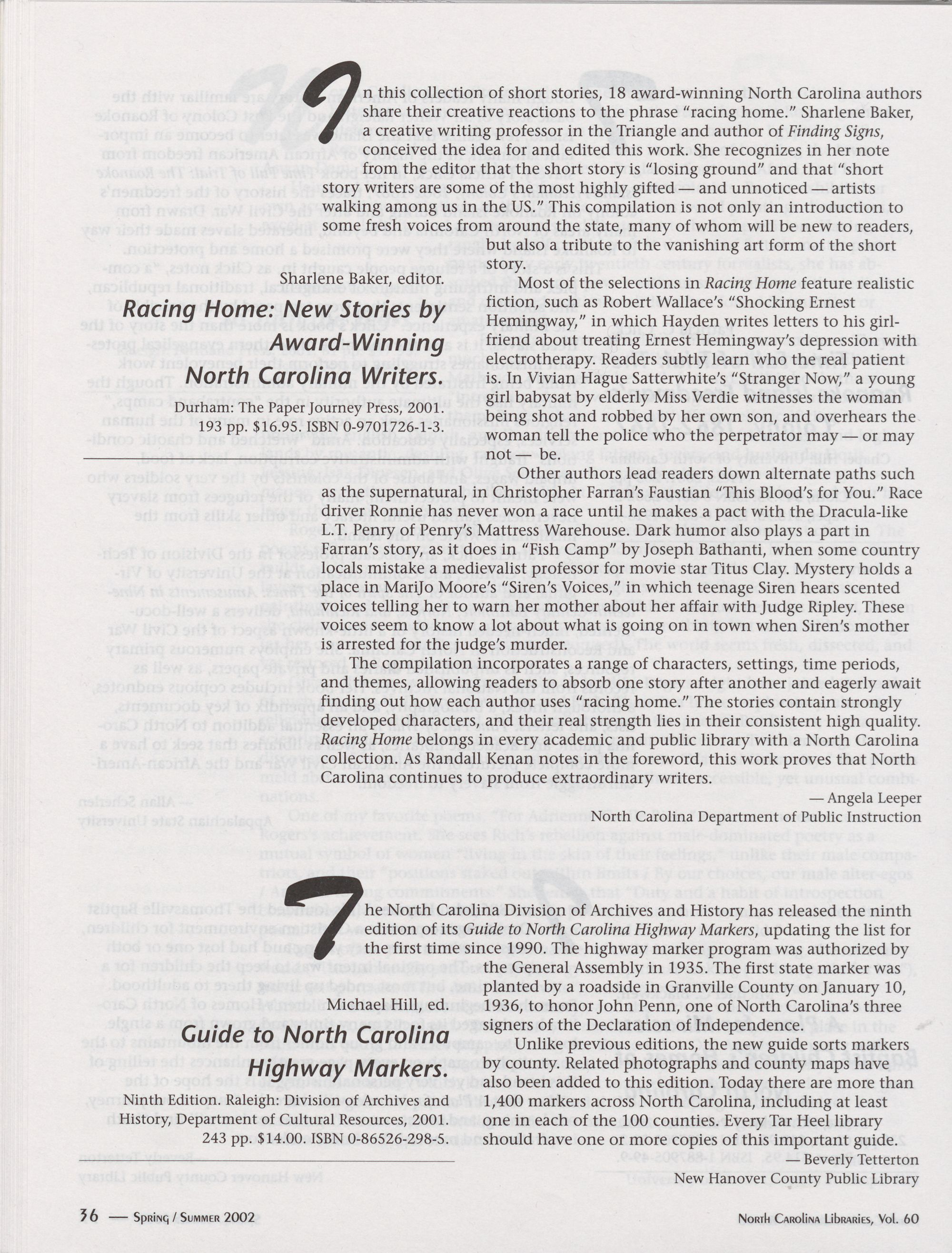 of North Carolina. It will be published in print bi-