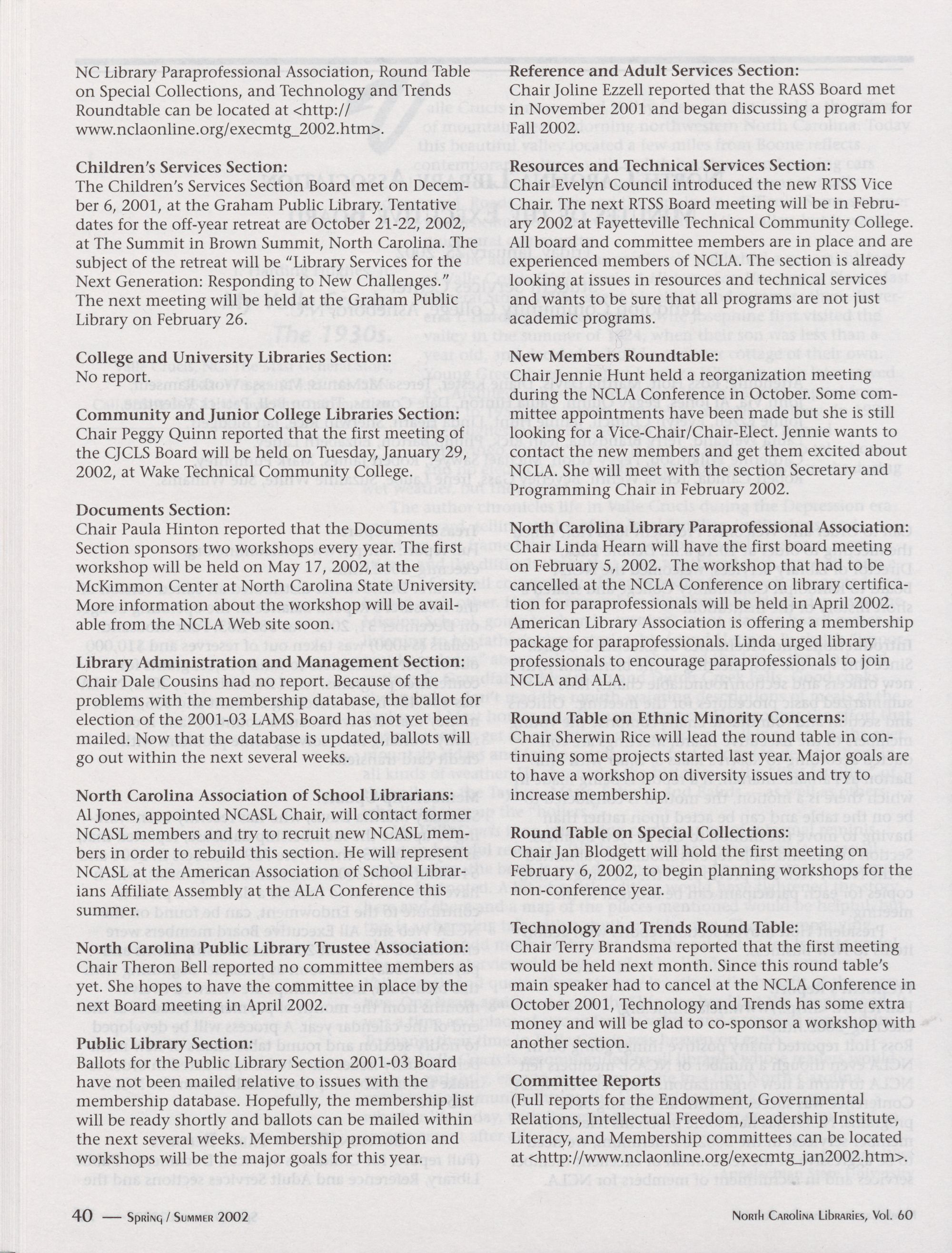 monthly, will contain news about NCLA and librar-