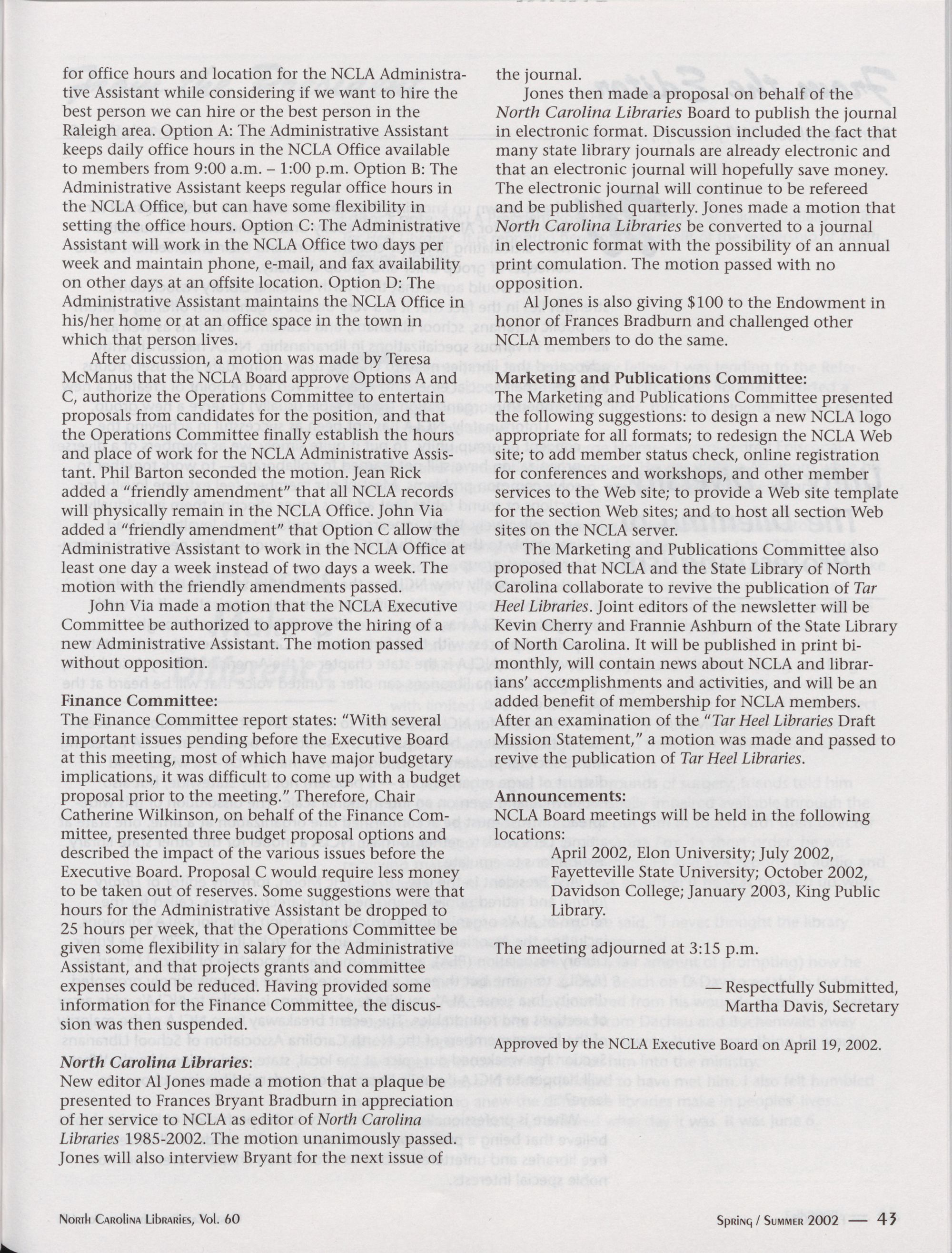 McManus that the NCLA Board approve Options A and