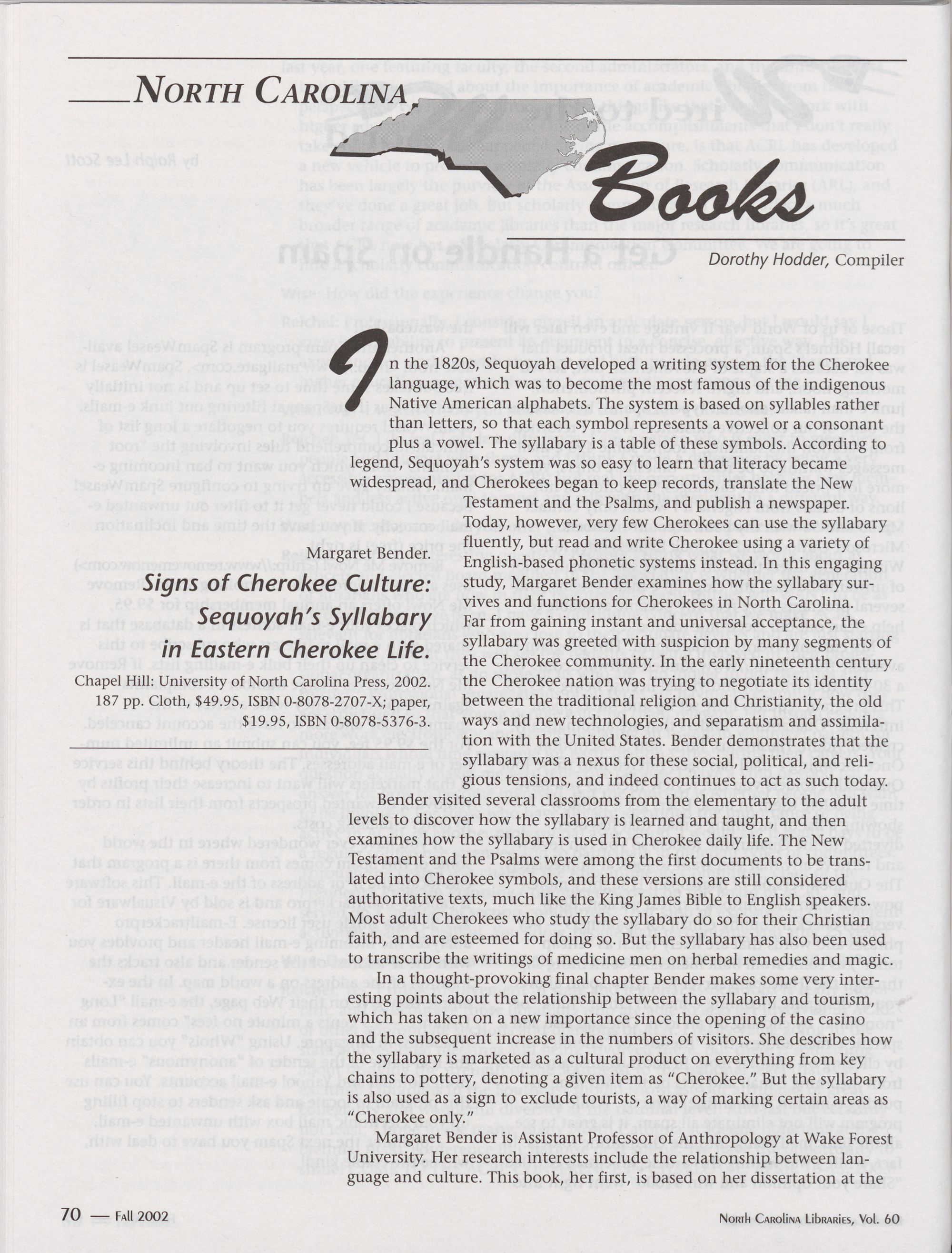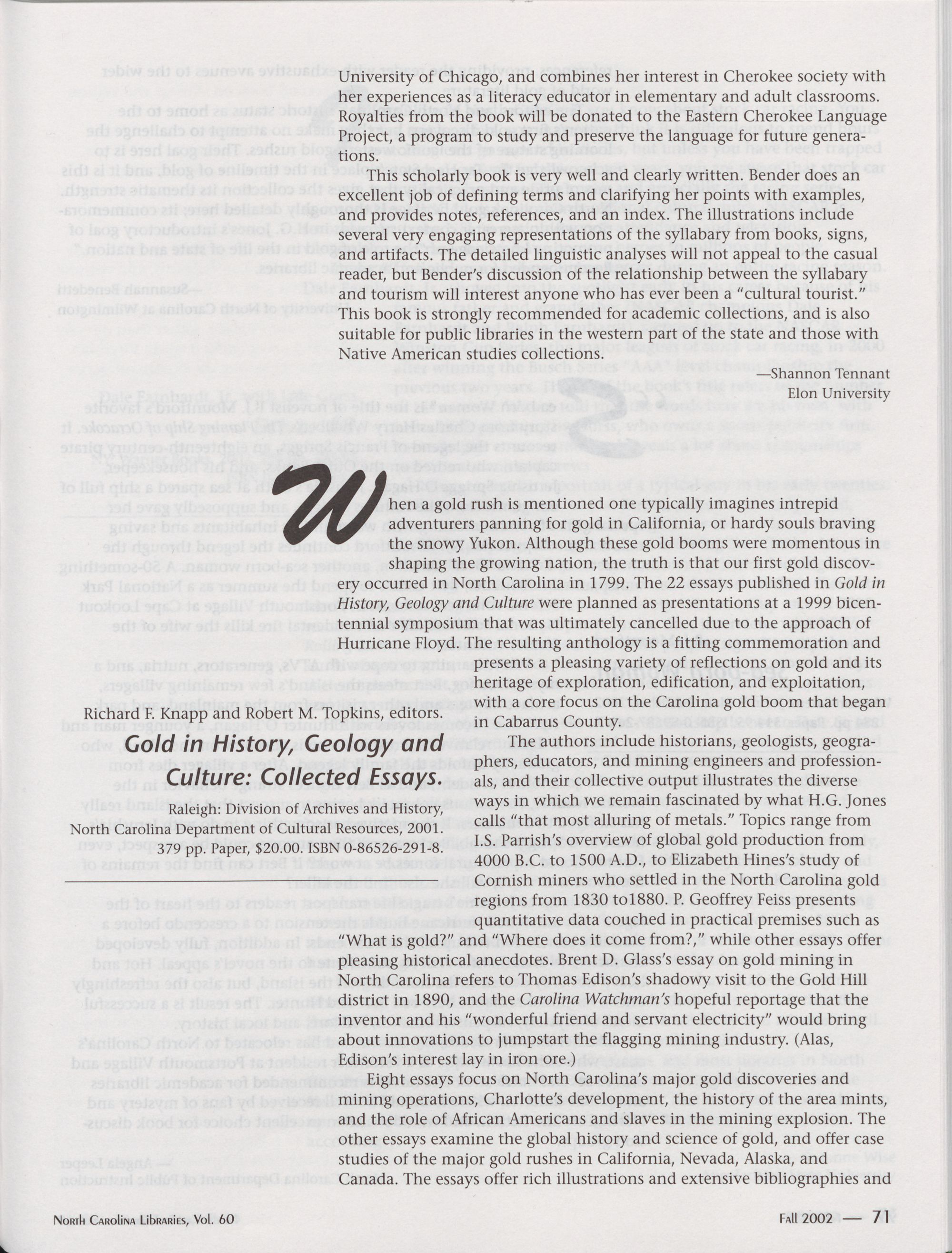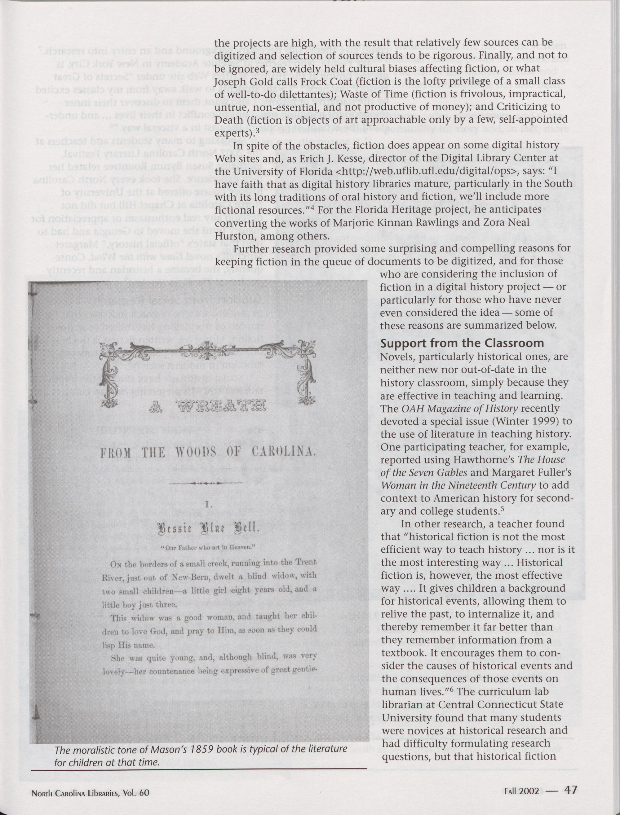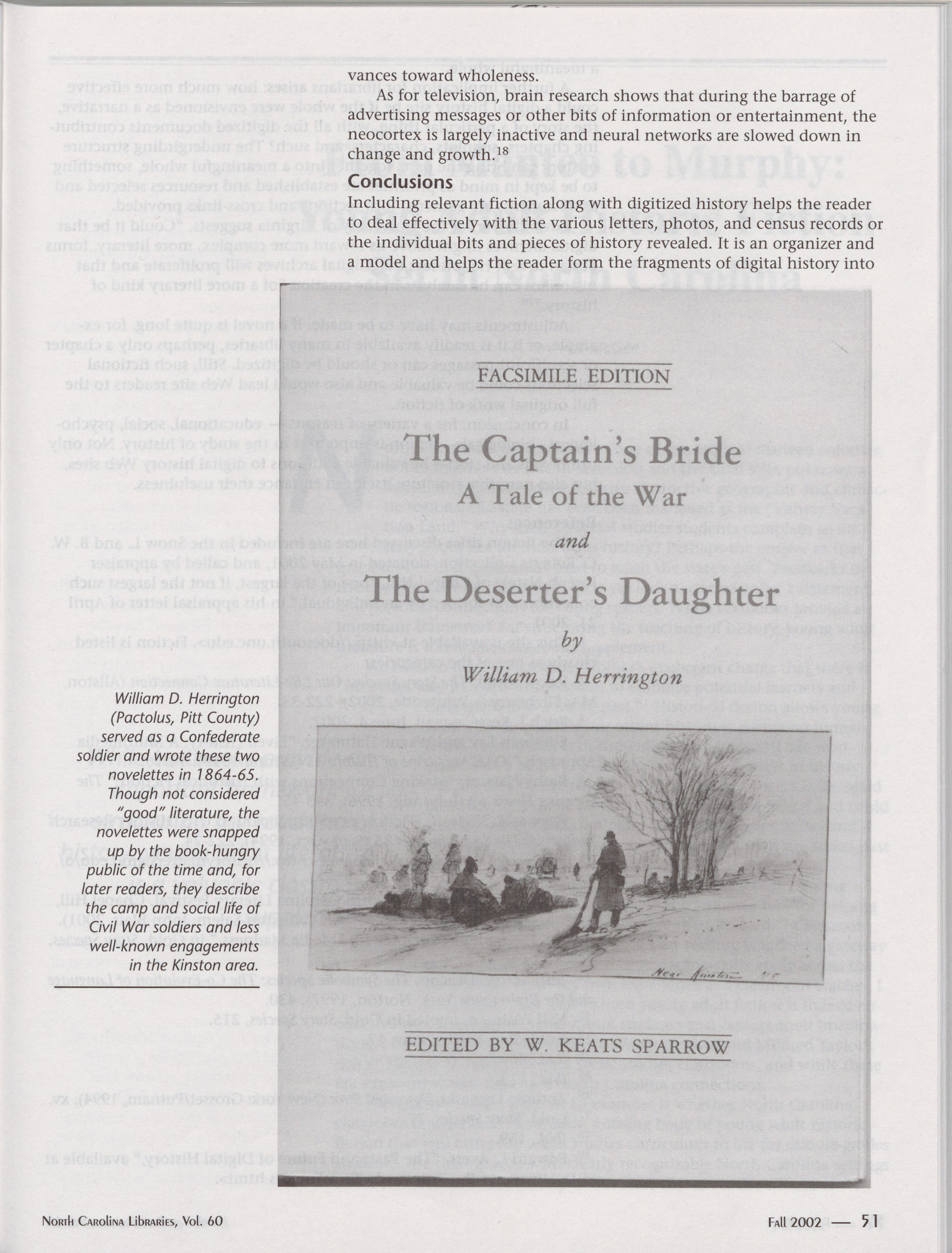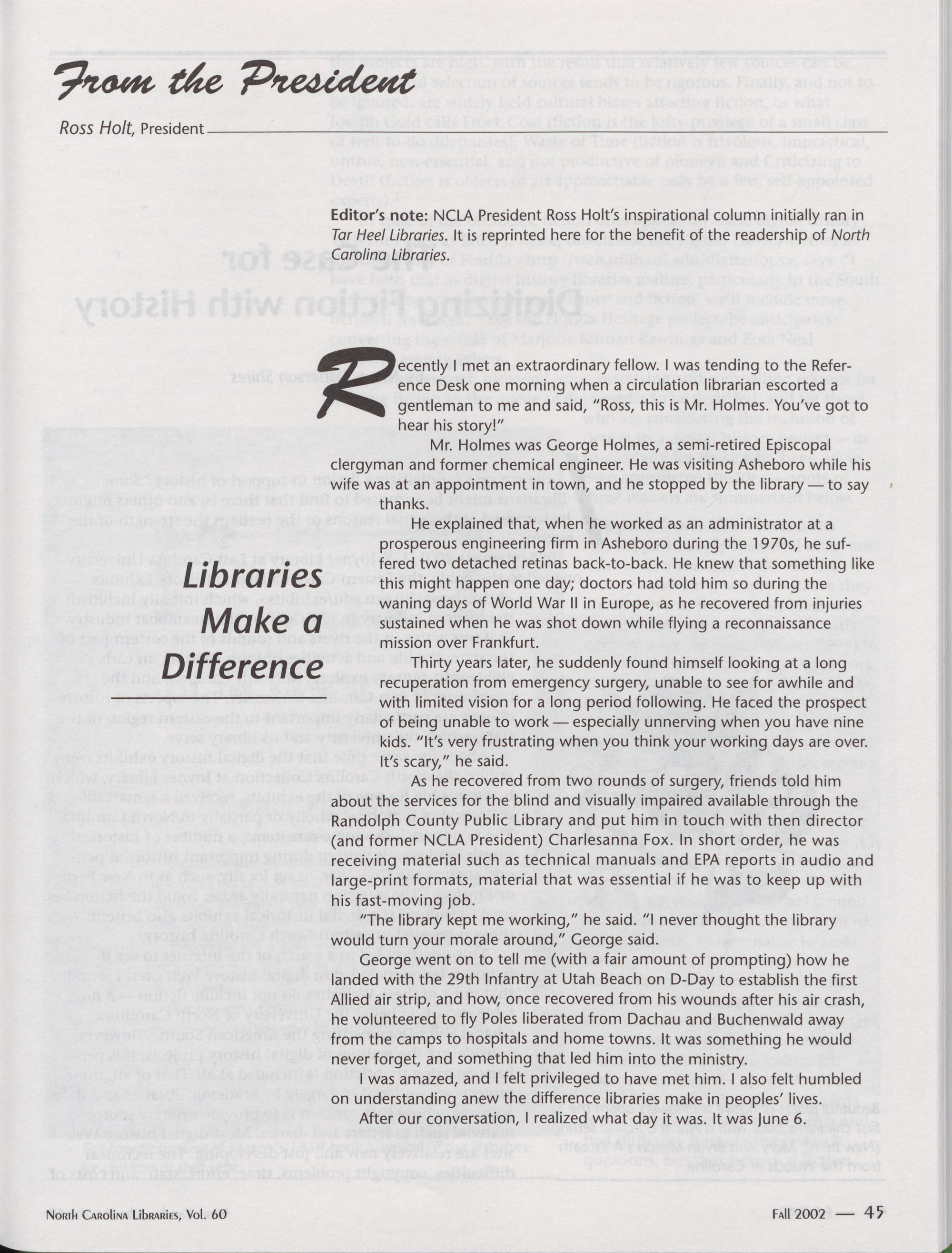 Tar Heel Libraries. \t is reprinted here for the benefit of the readership of North