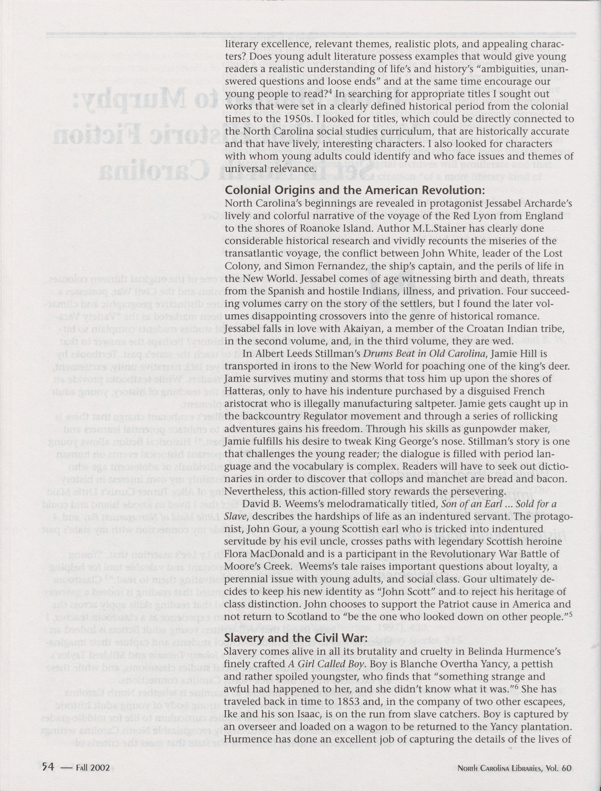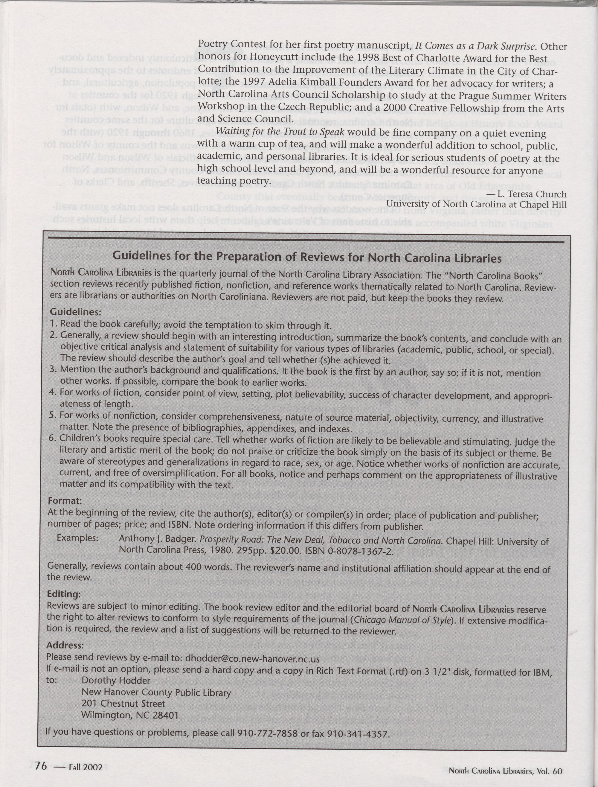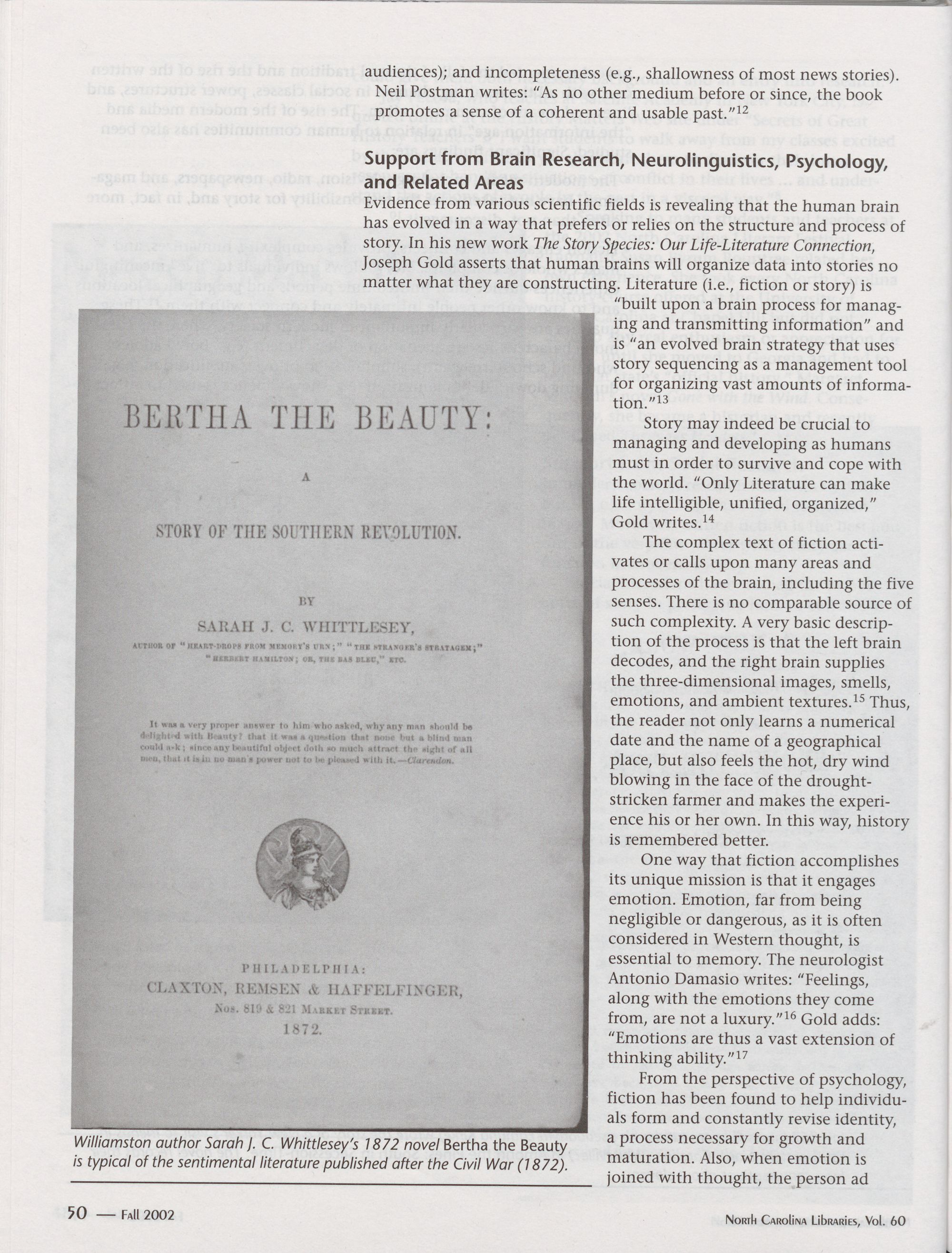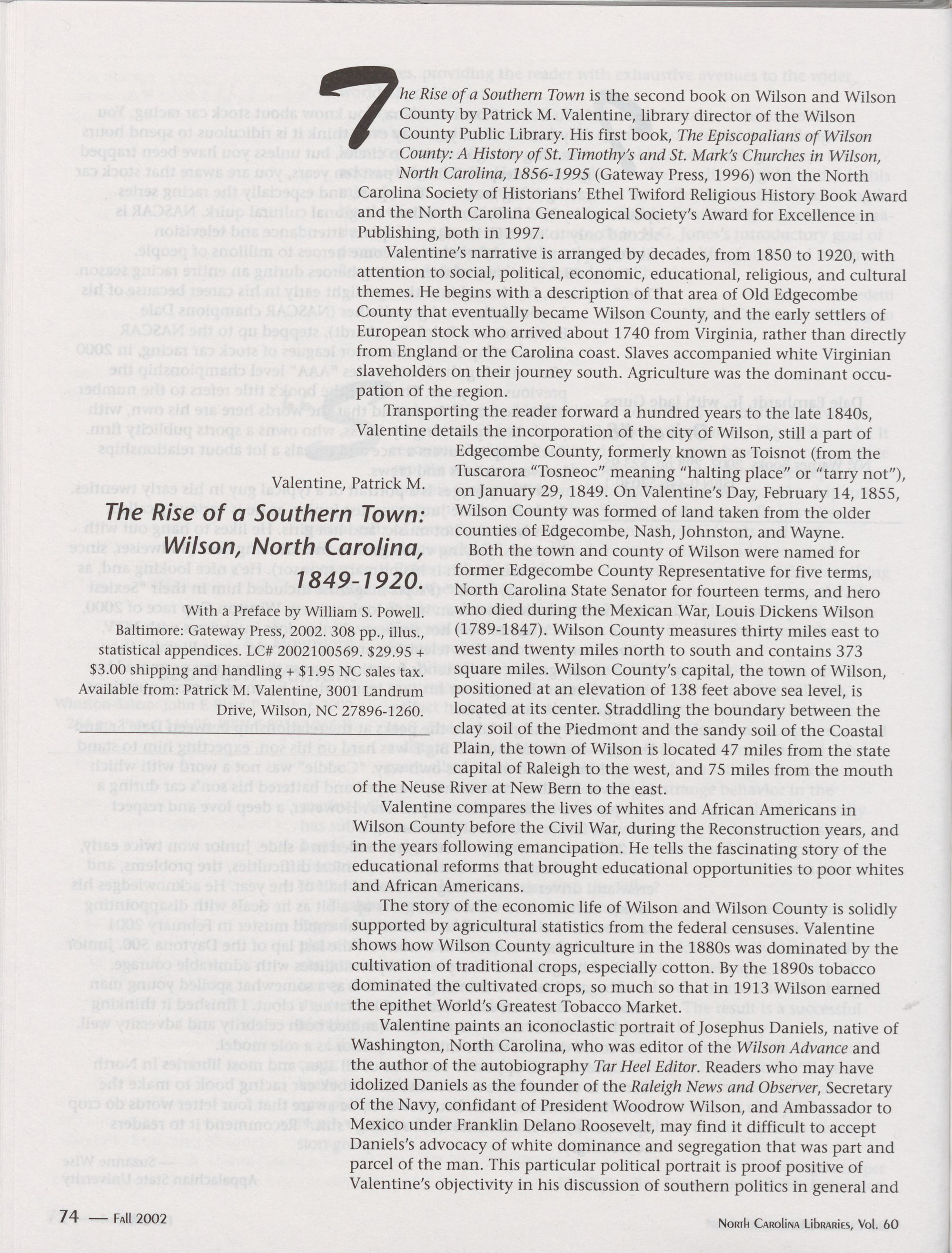 Tar Heel Libraries. \t is reprinted here for the benefit of the readership of North