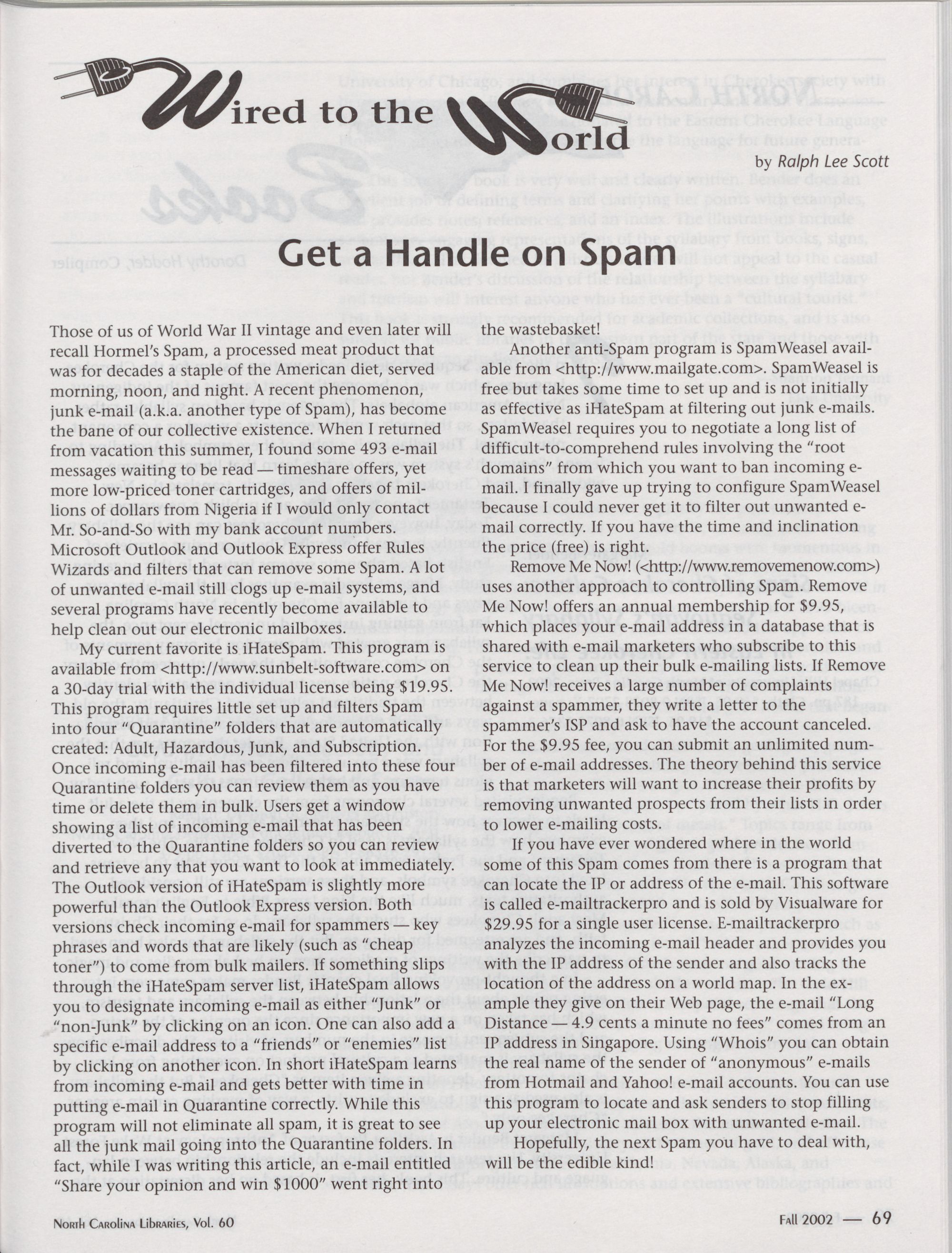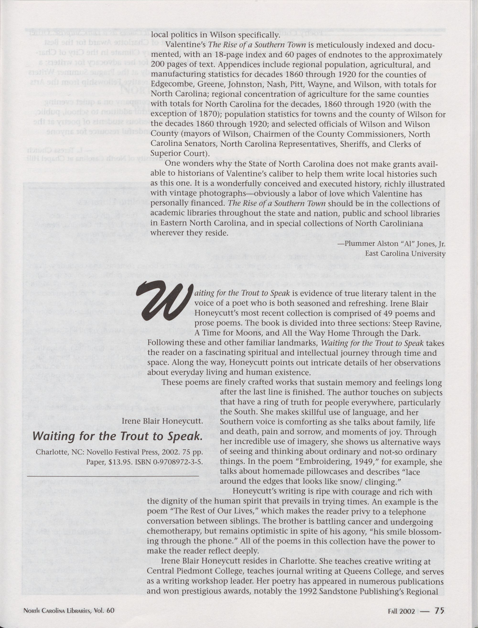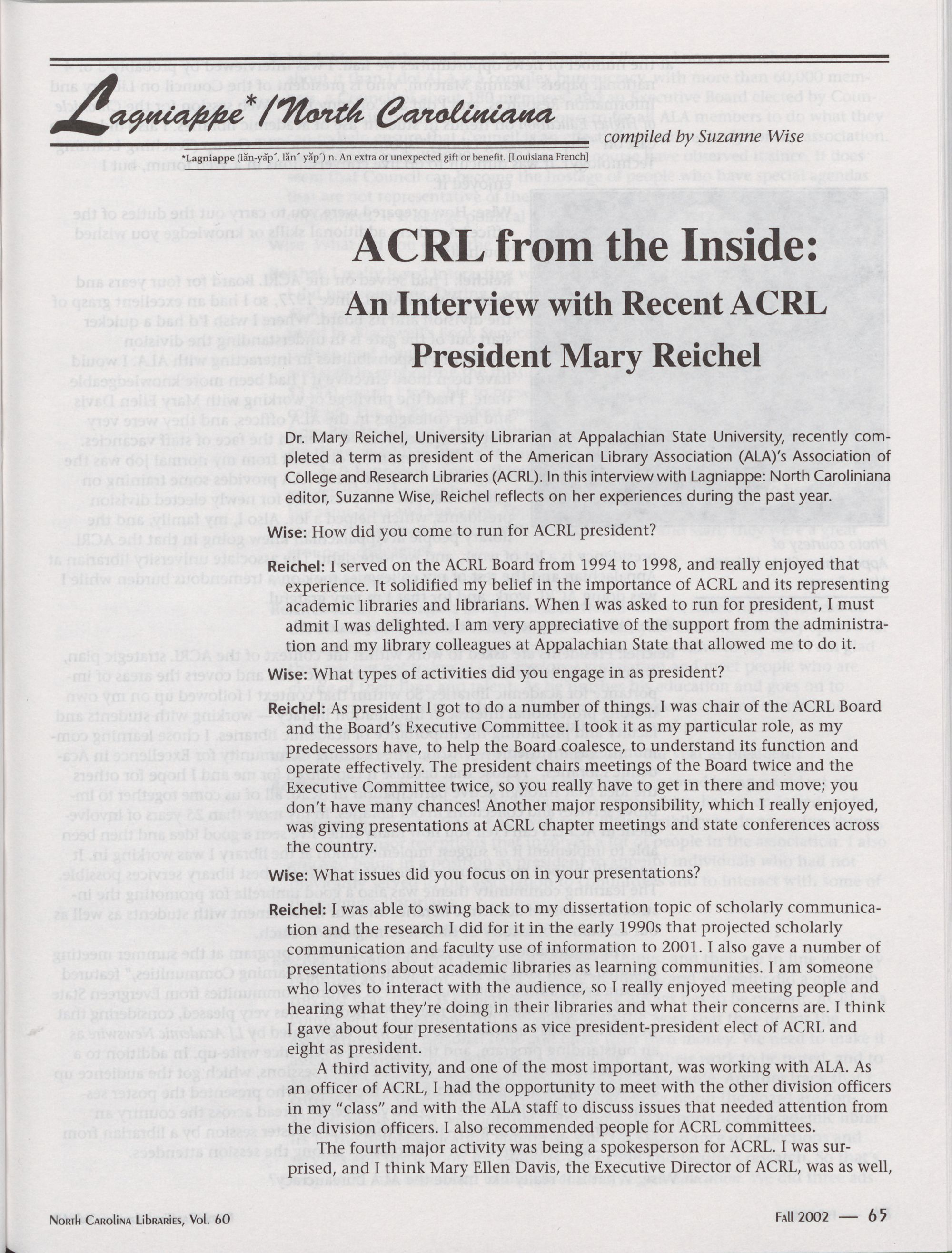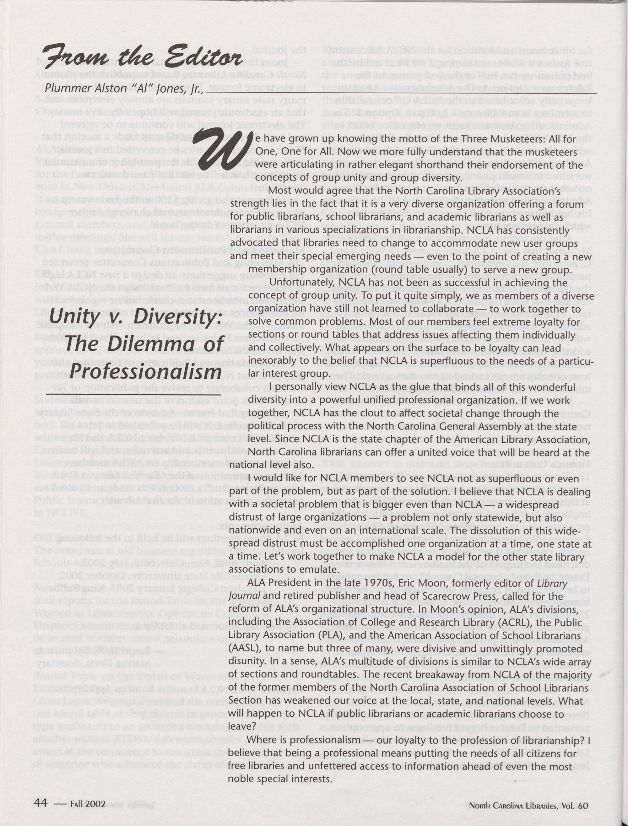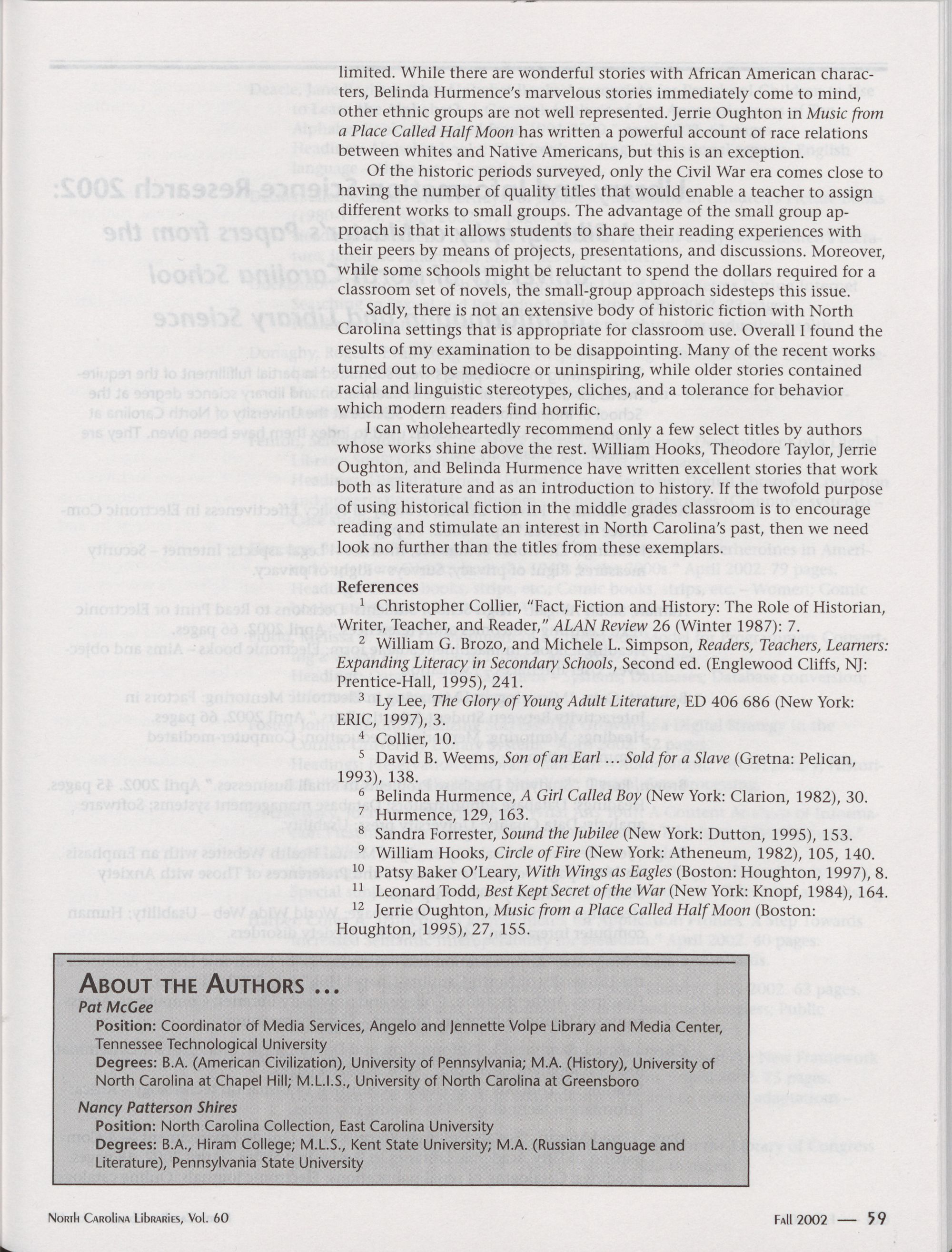 Tar Heel Libraries. \t is reprinted here for the benefit of the readership of North