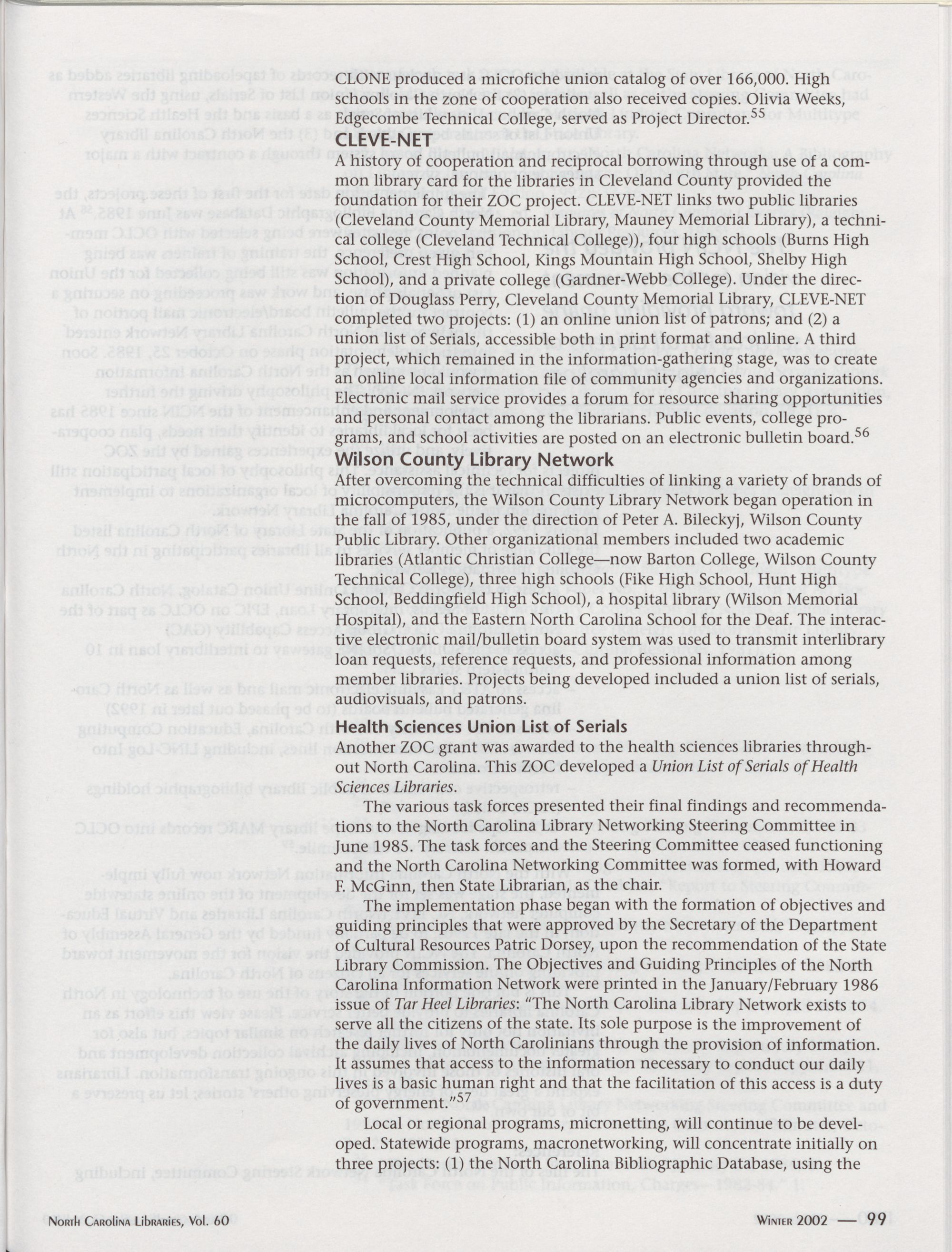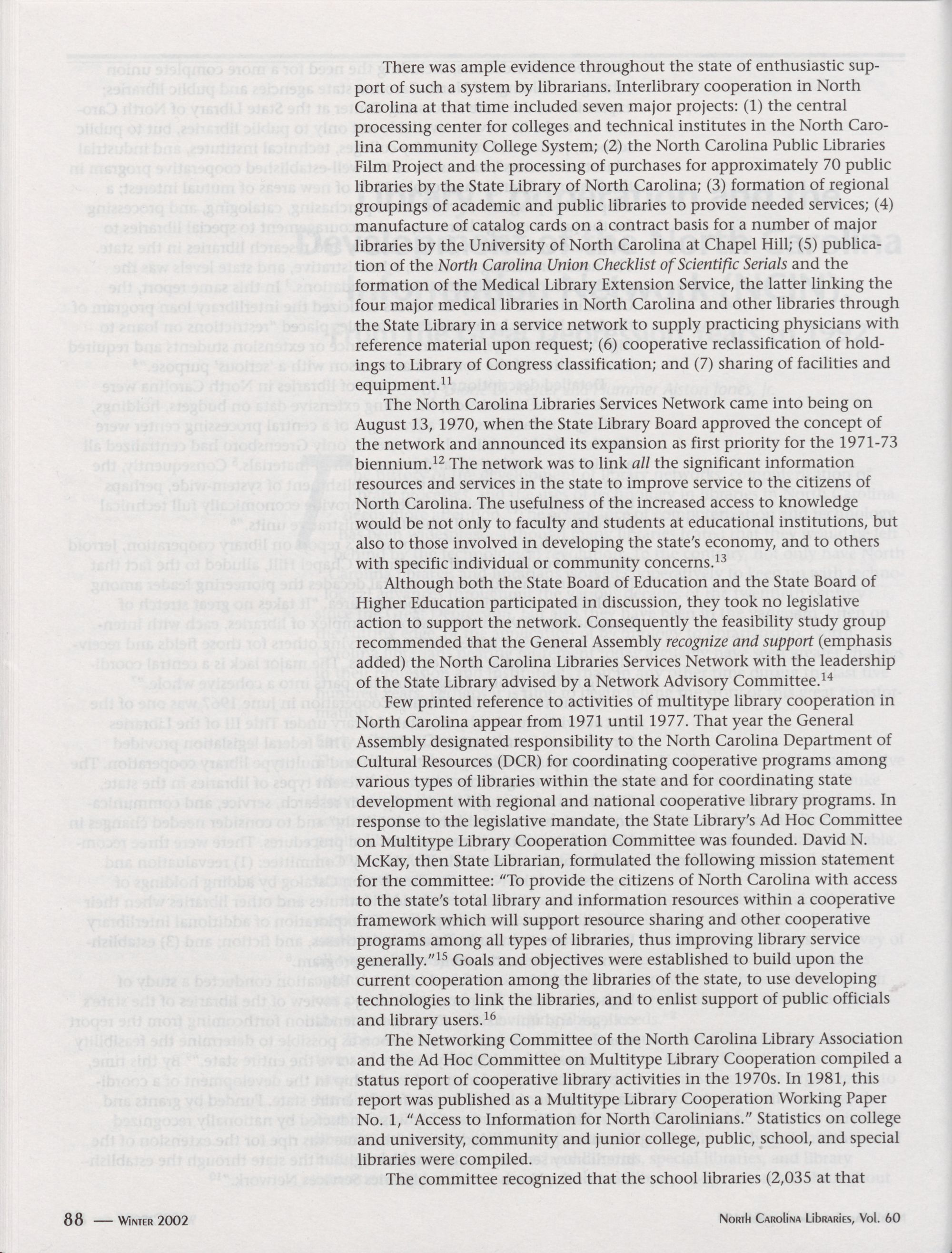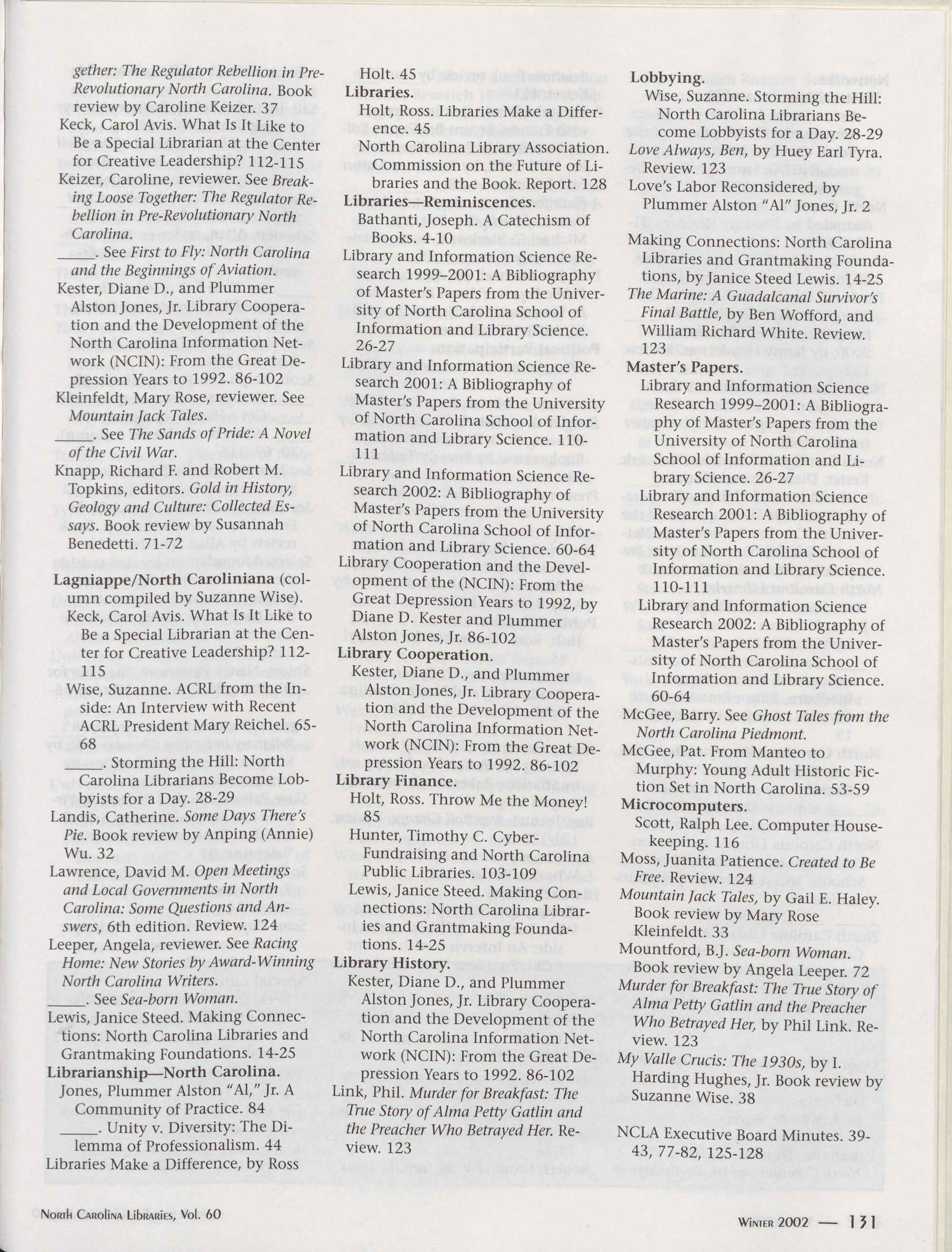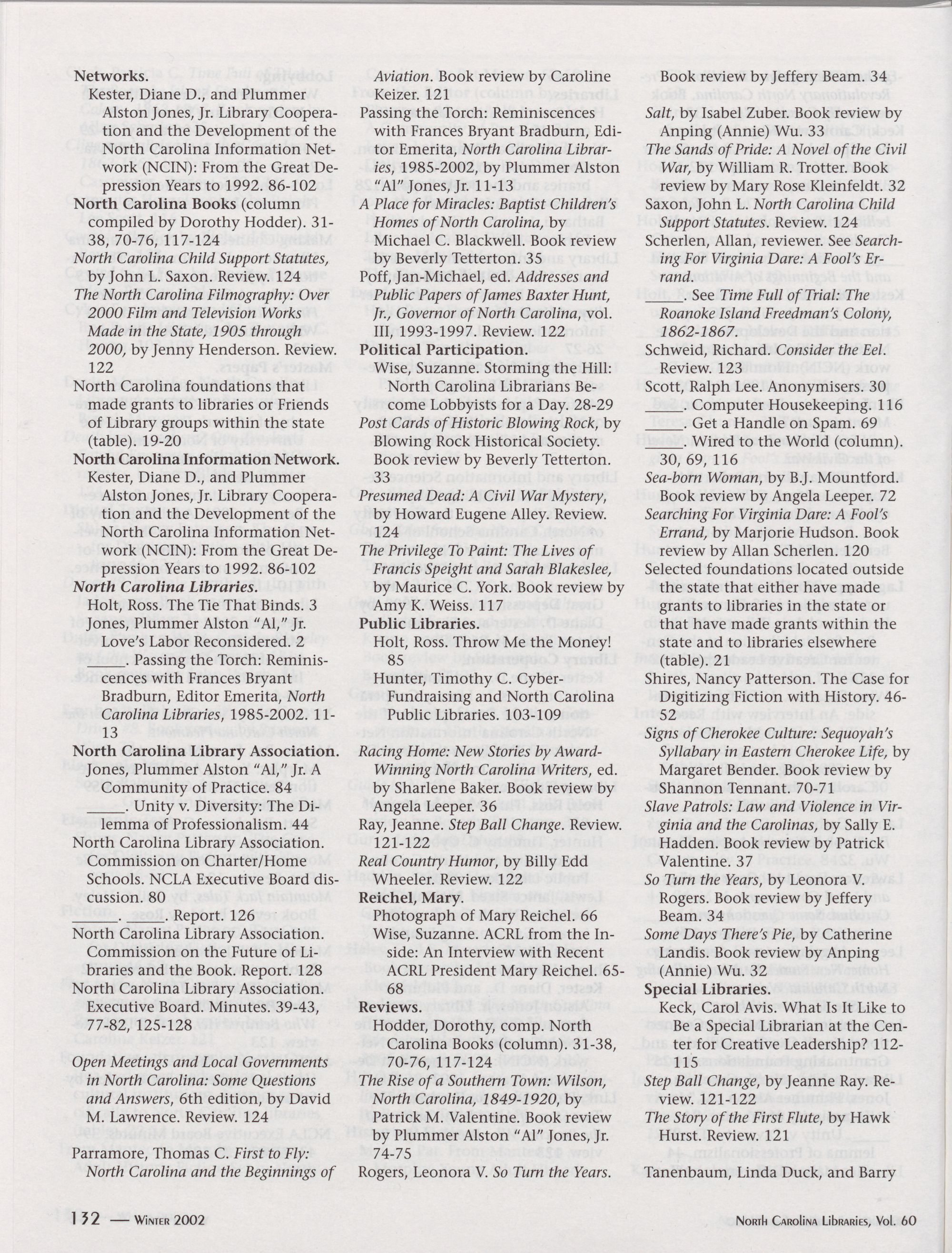 North Carolina Libraries, Vol. 60