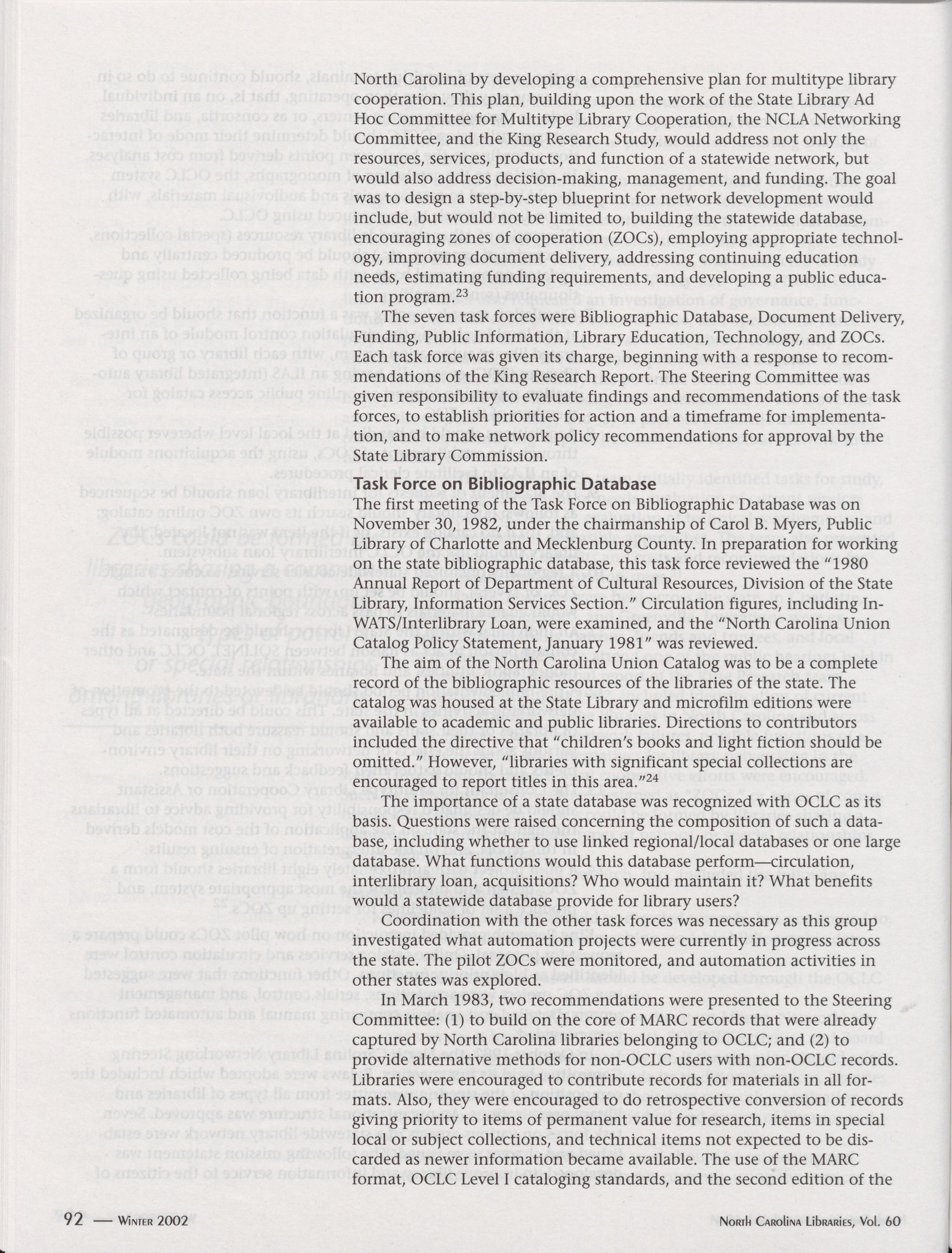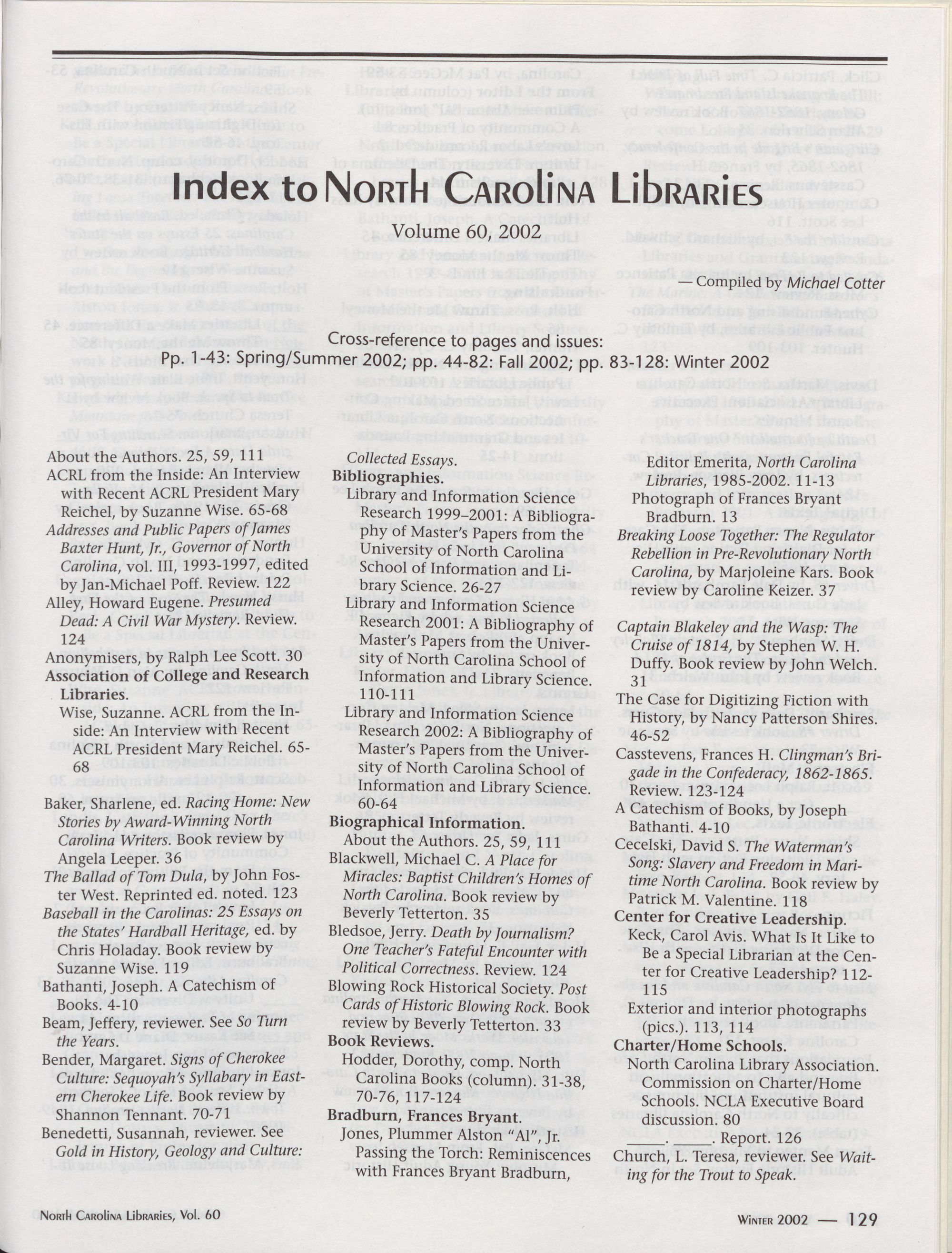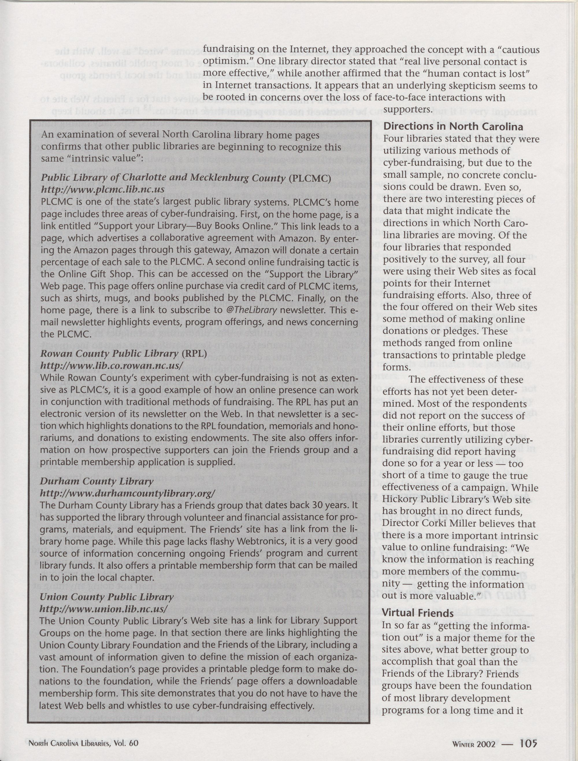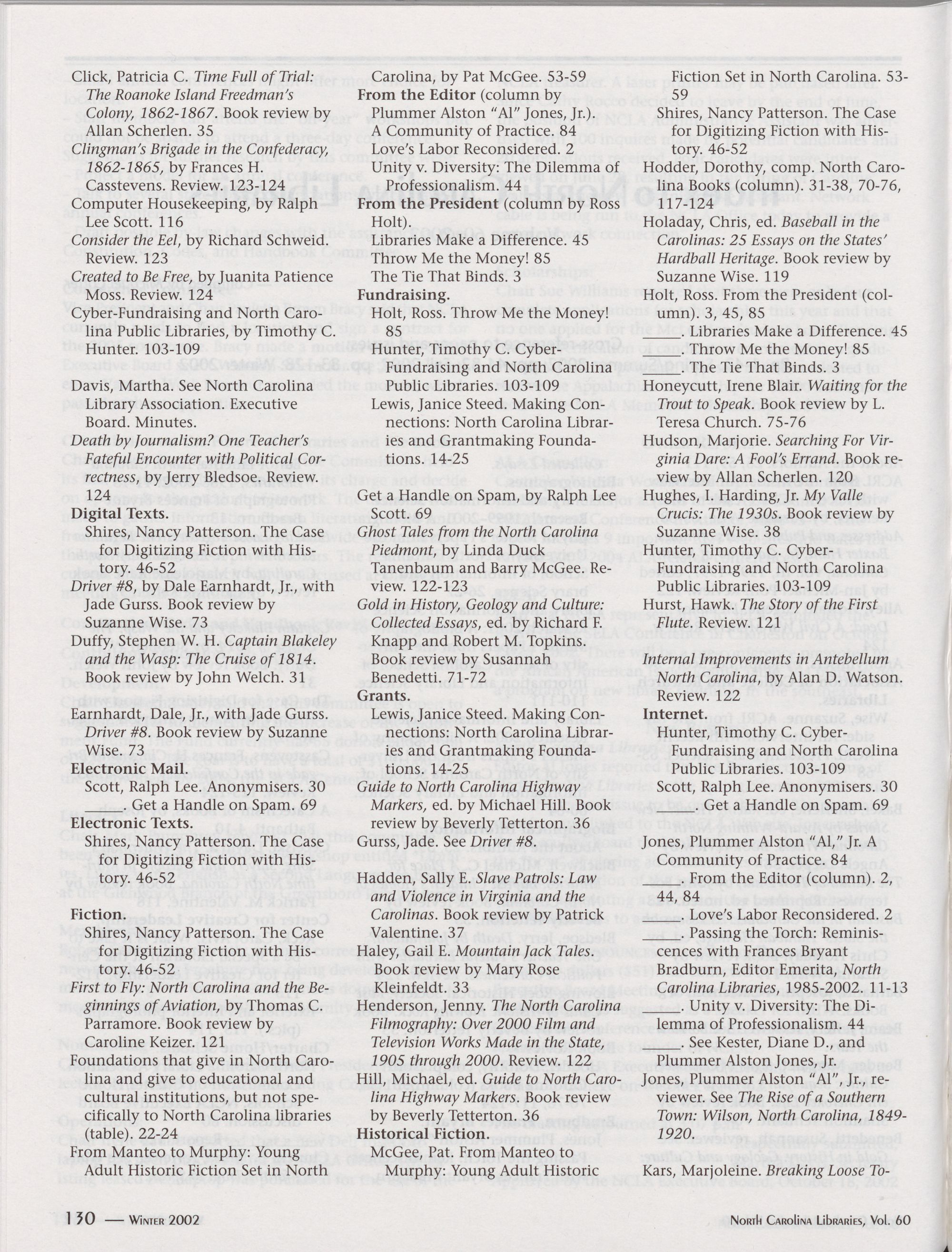 North Carolina Libraries, Vol. 60