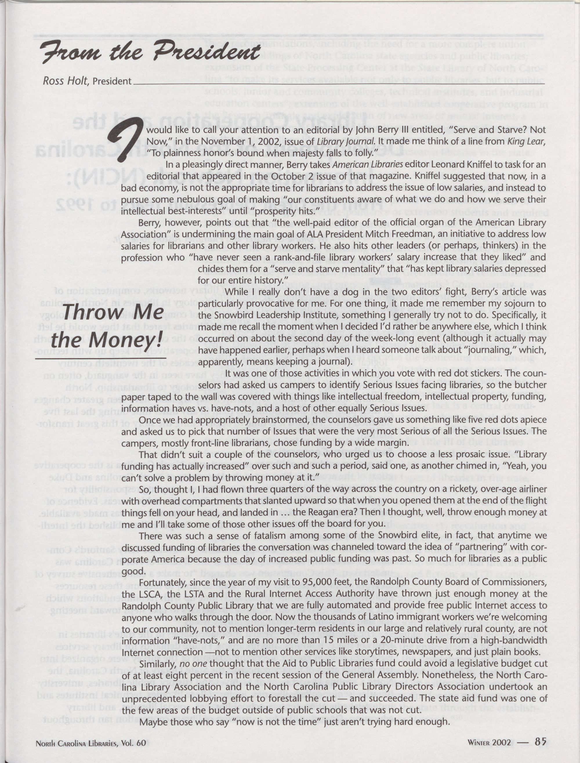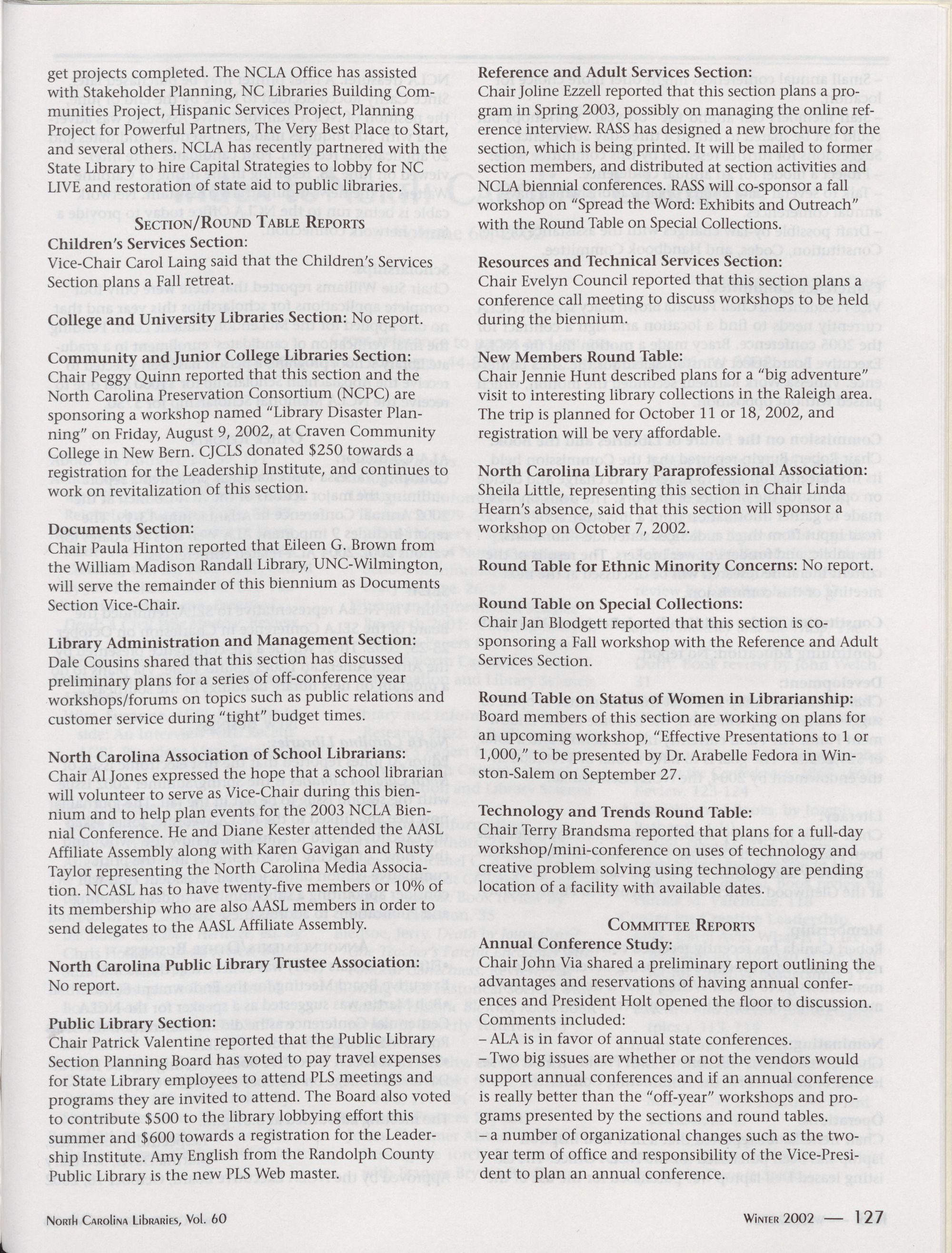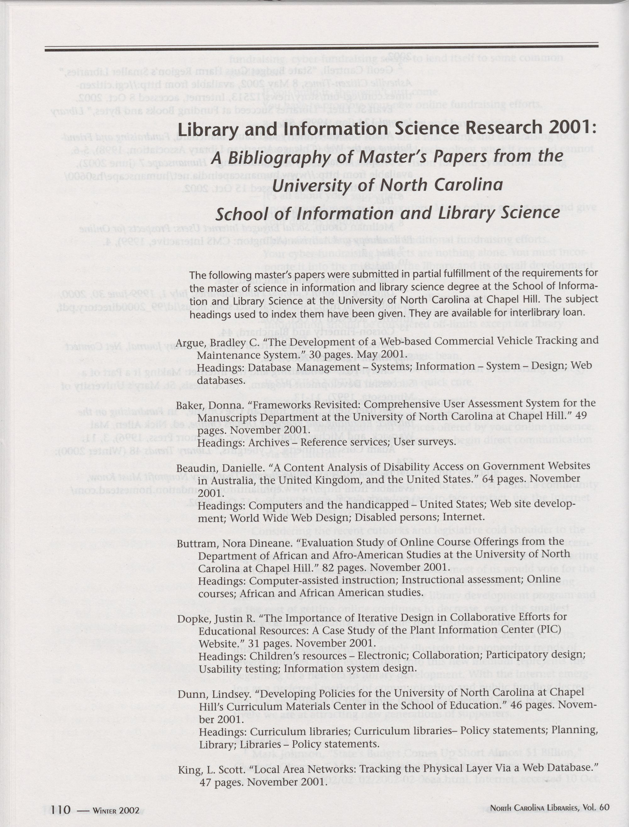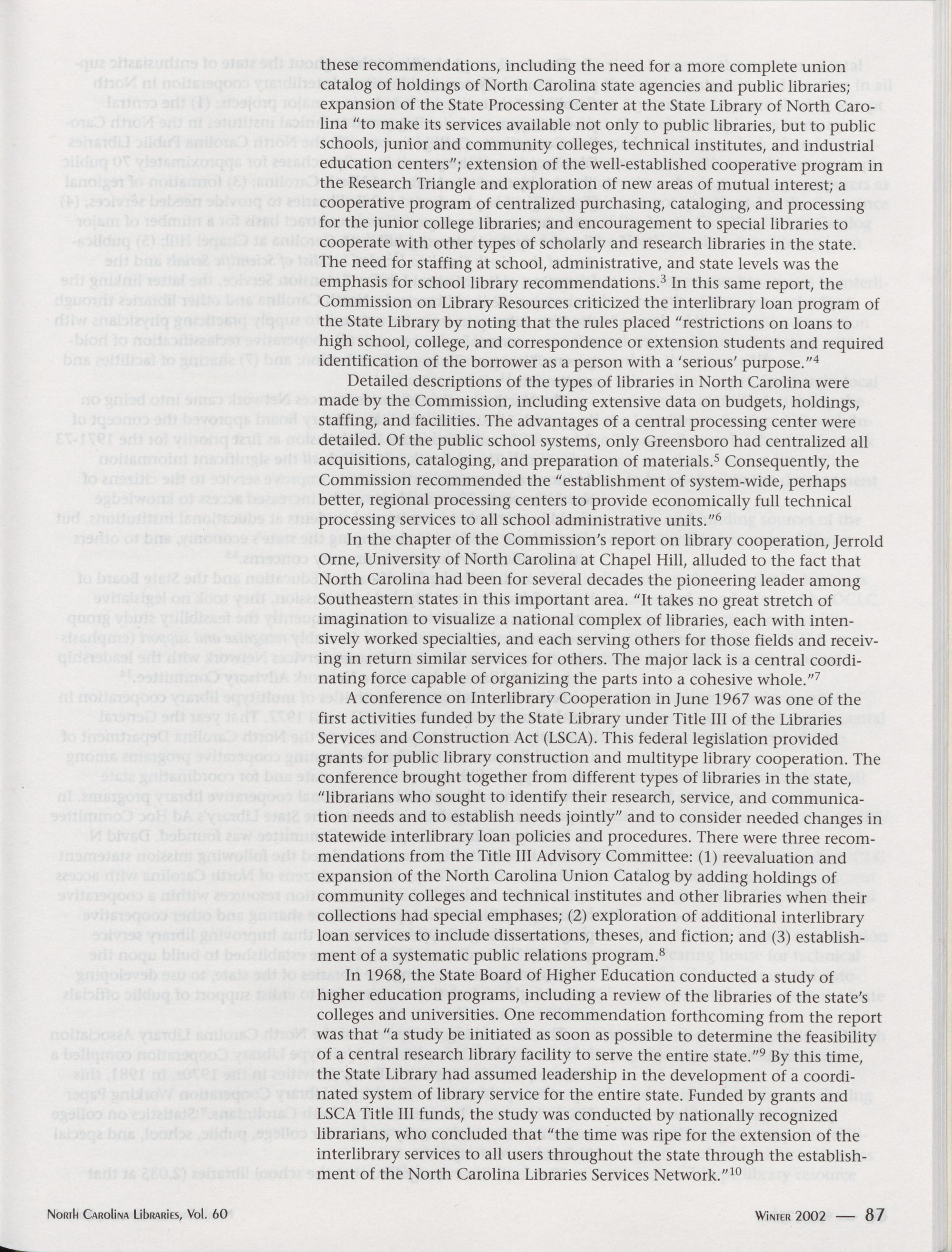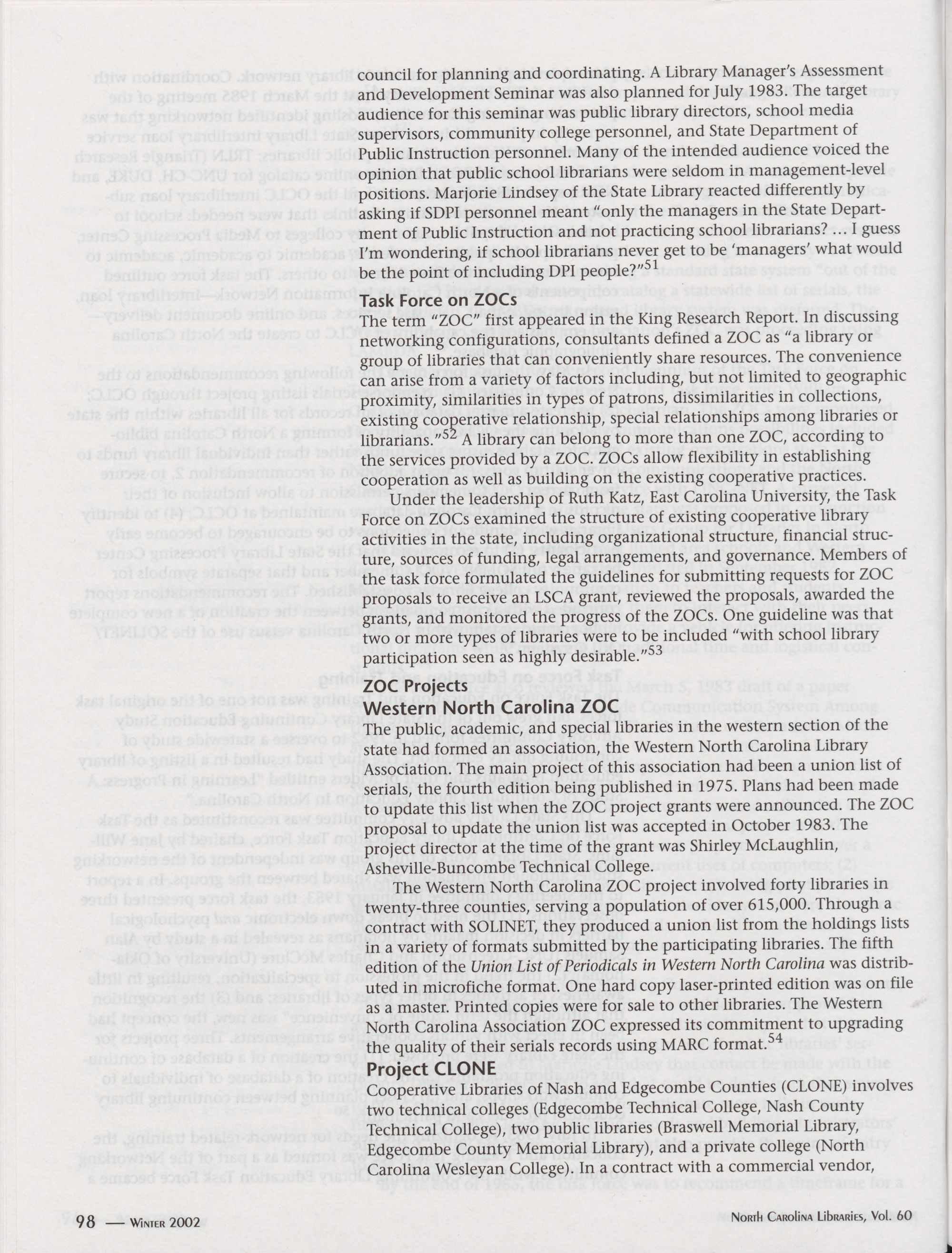 North Carolina Libraries, Vol. 60