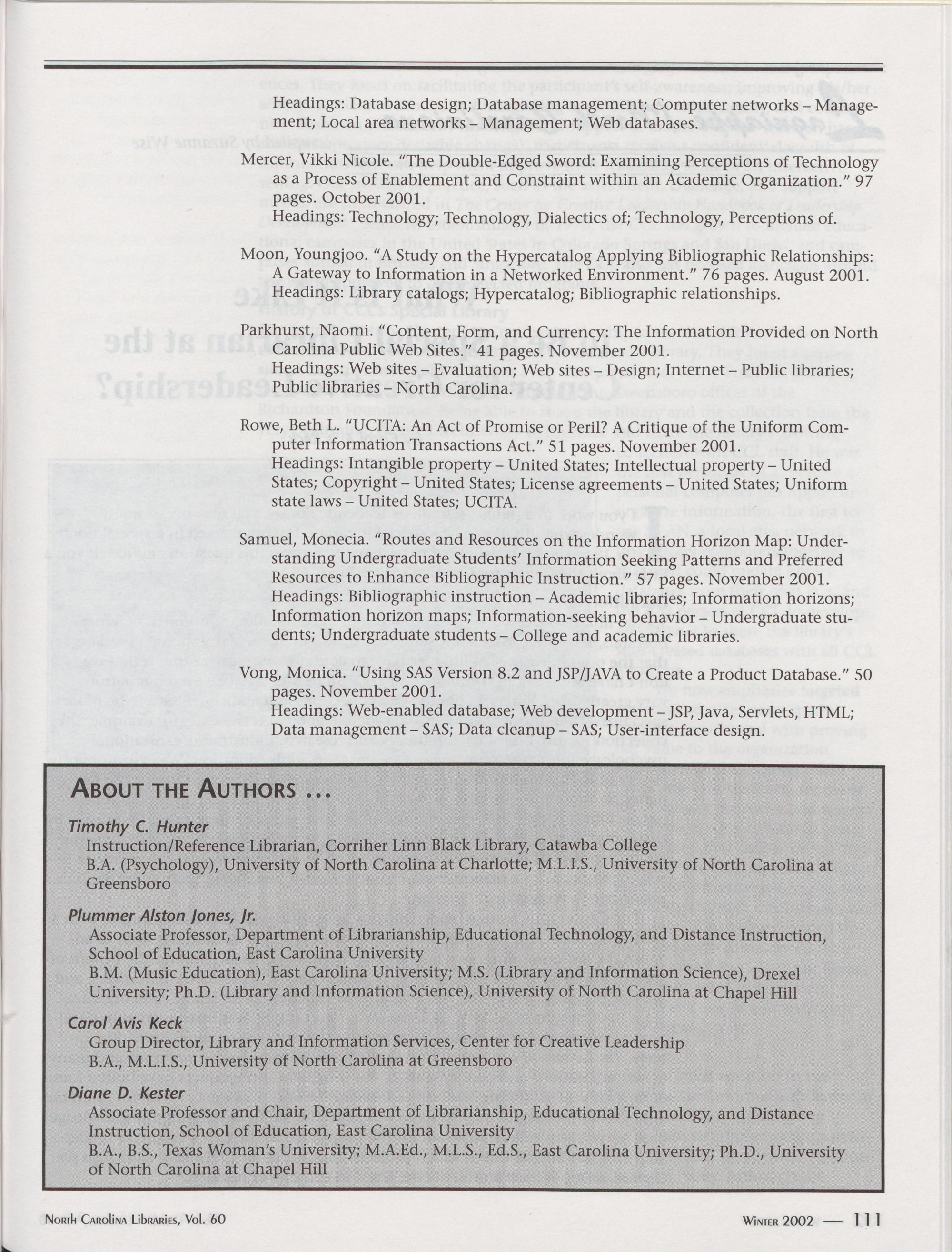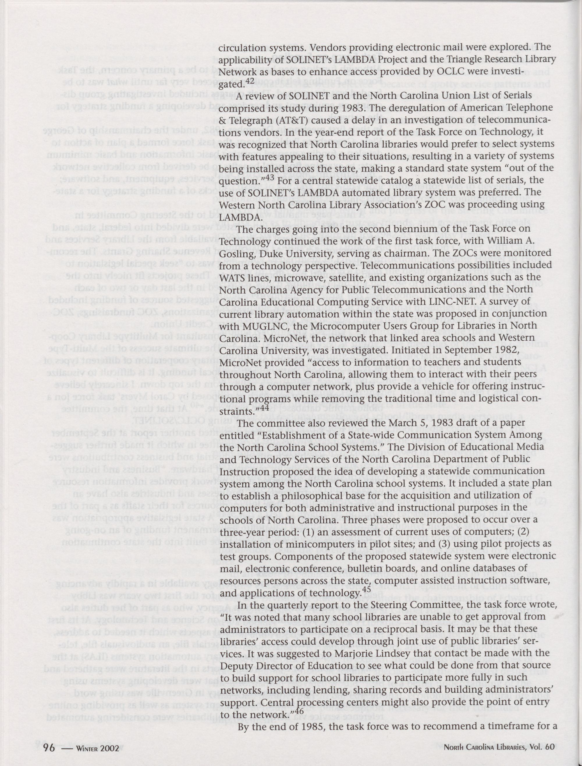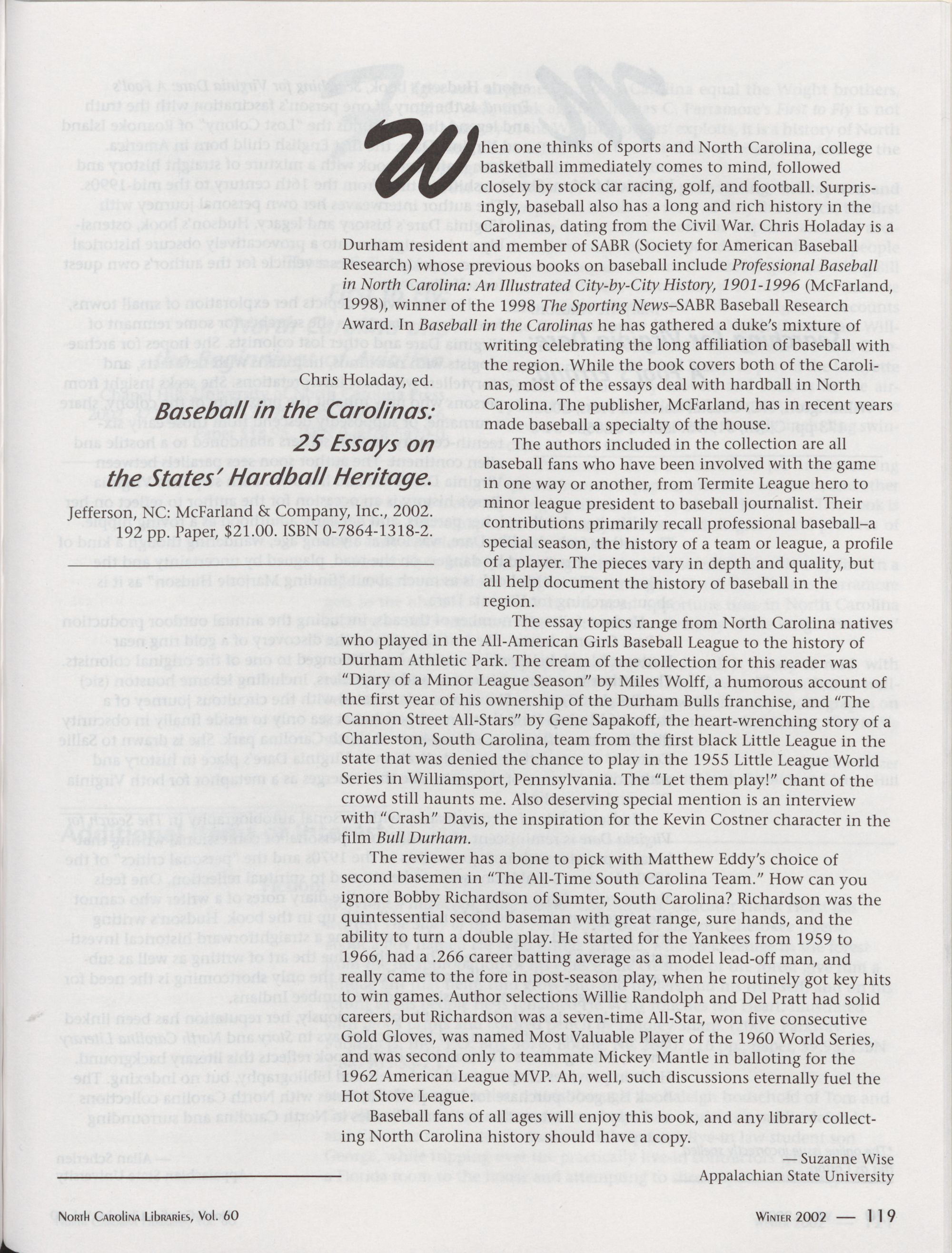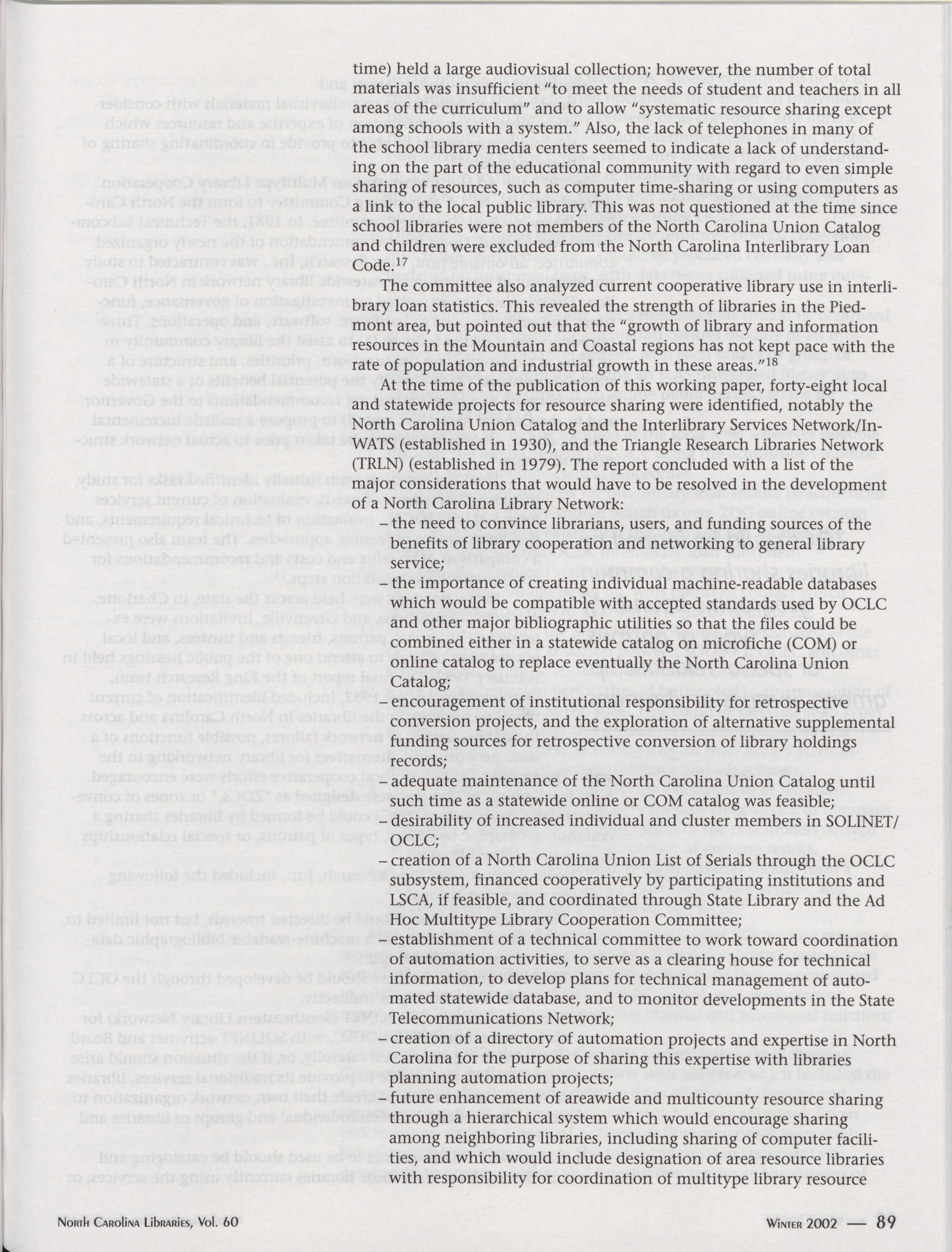 North Carolina Libraries, Vol. 60