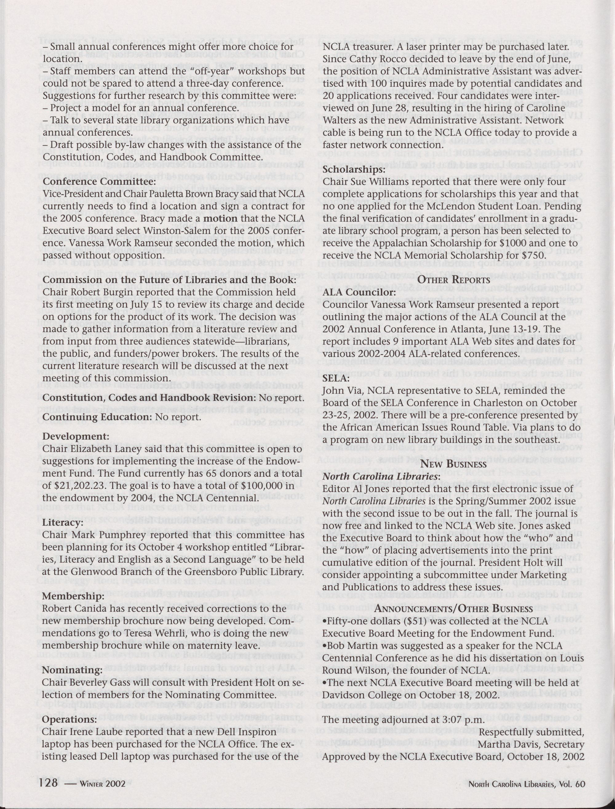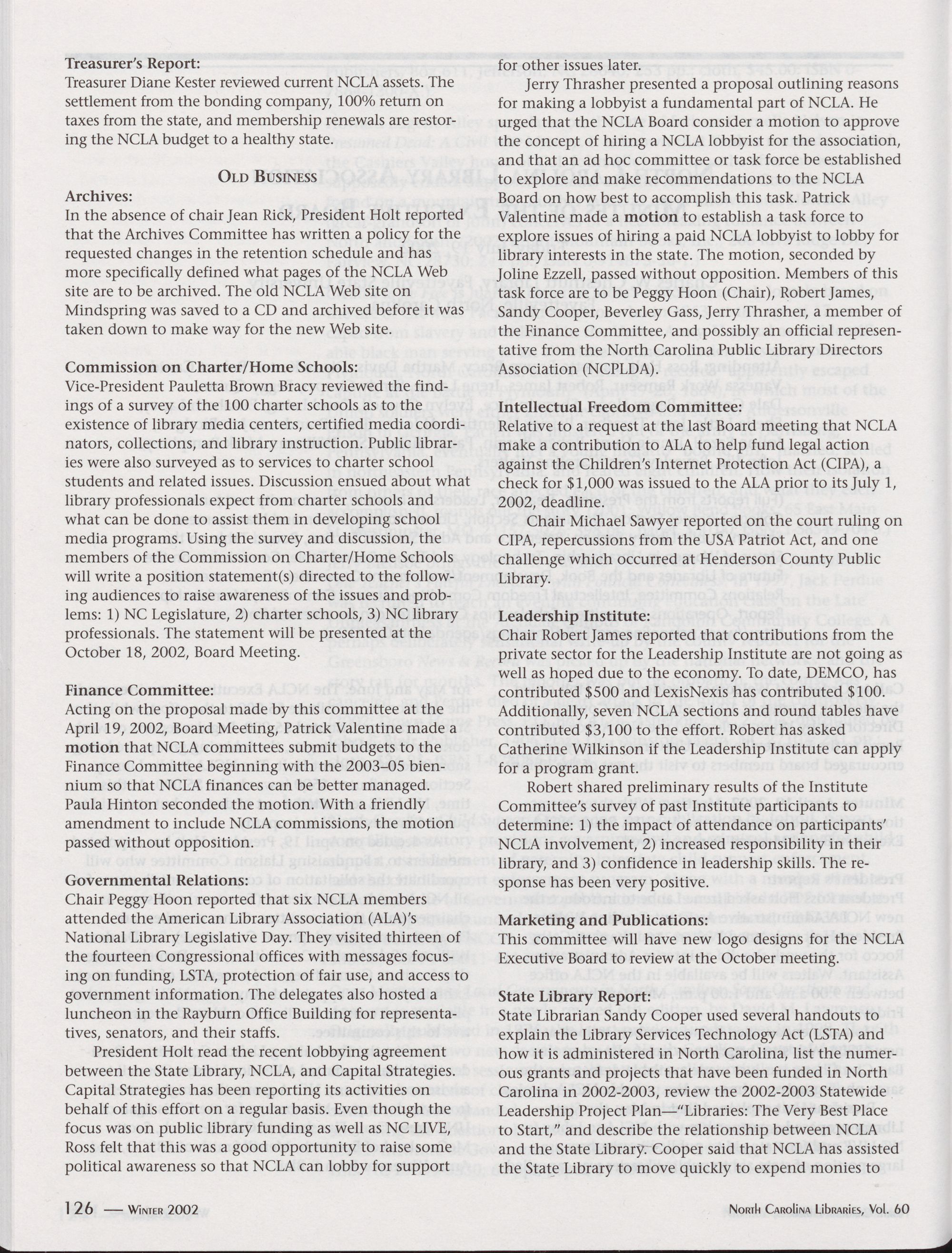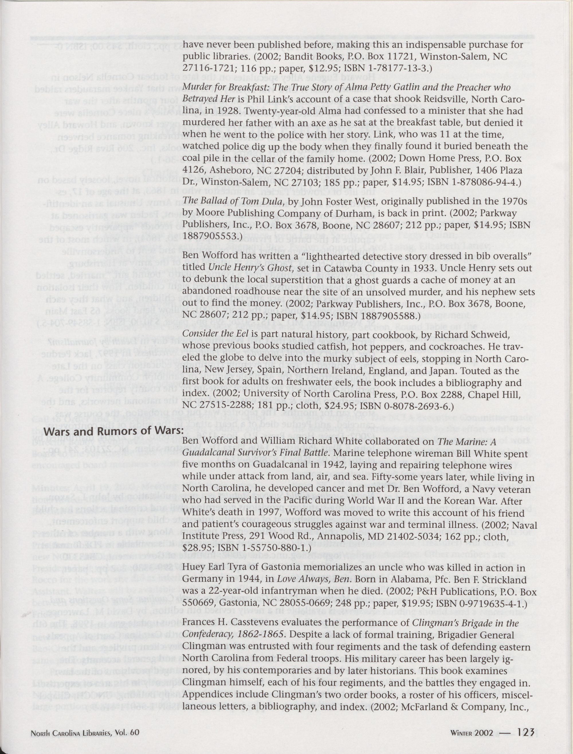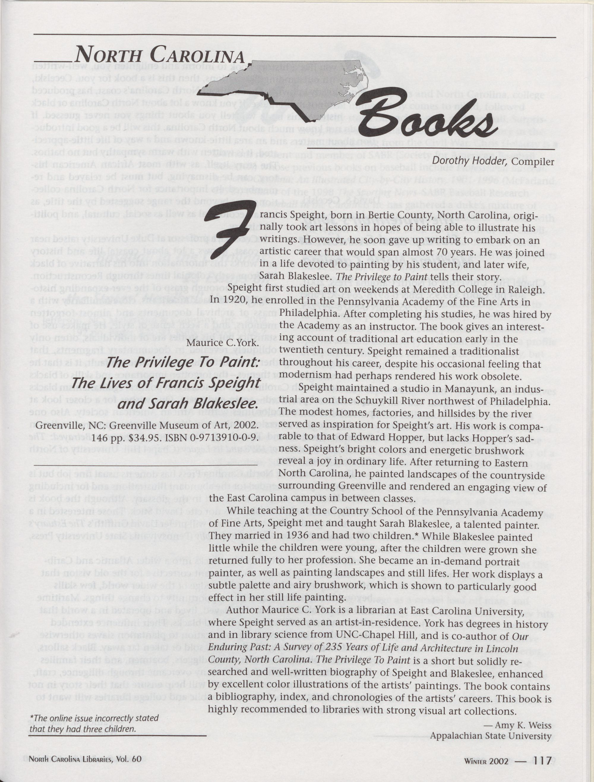 North Carolina Libraries, Vol. 60