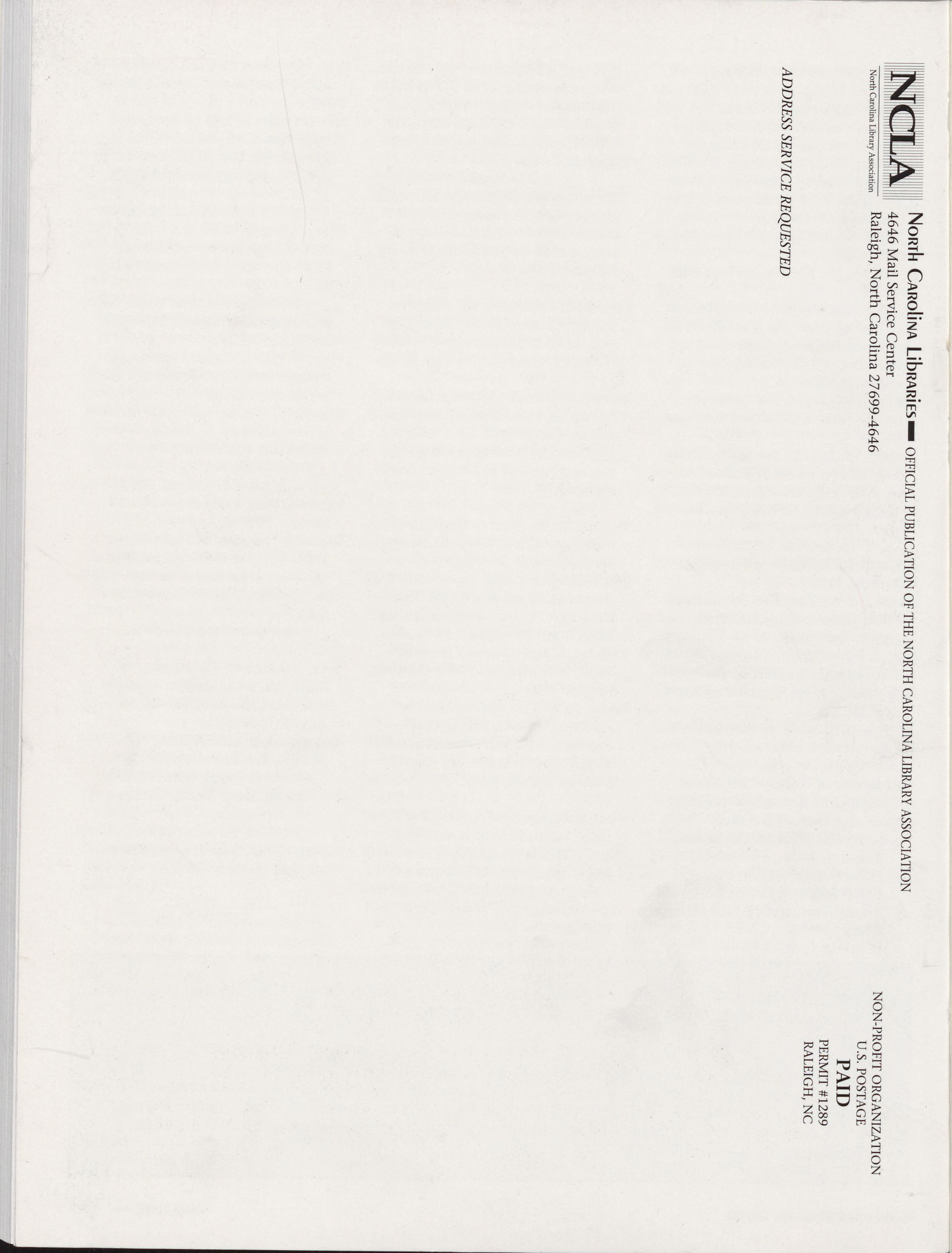 North Carolina Library Association Raleigh, North Carolina 27699-4646 U.S. POSTAGE