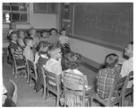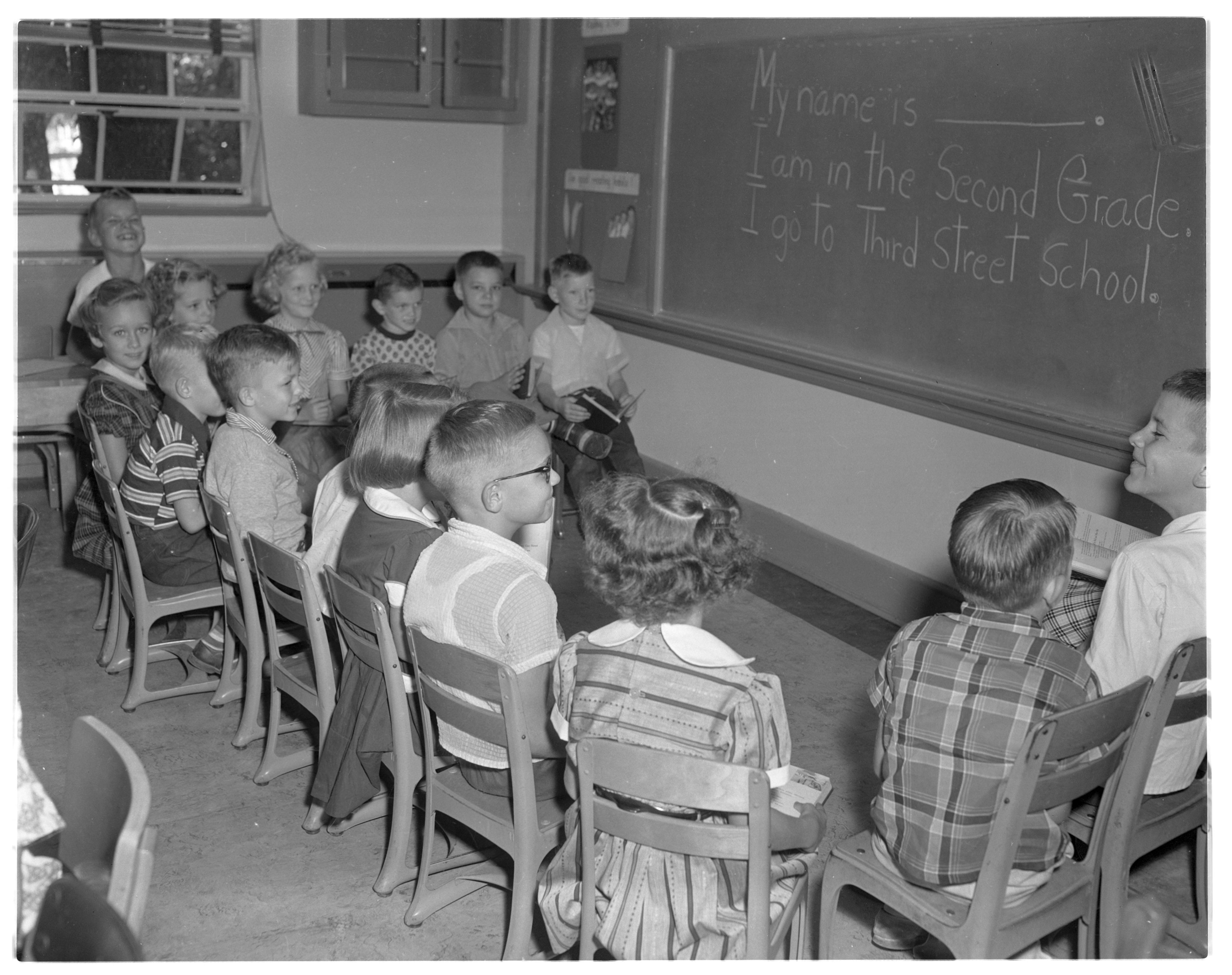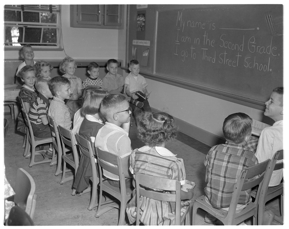 Children Sitting in a Circle of Chairs Facing the Blackboard