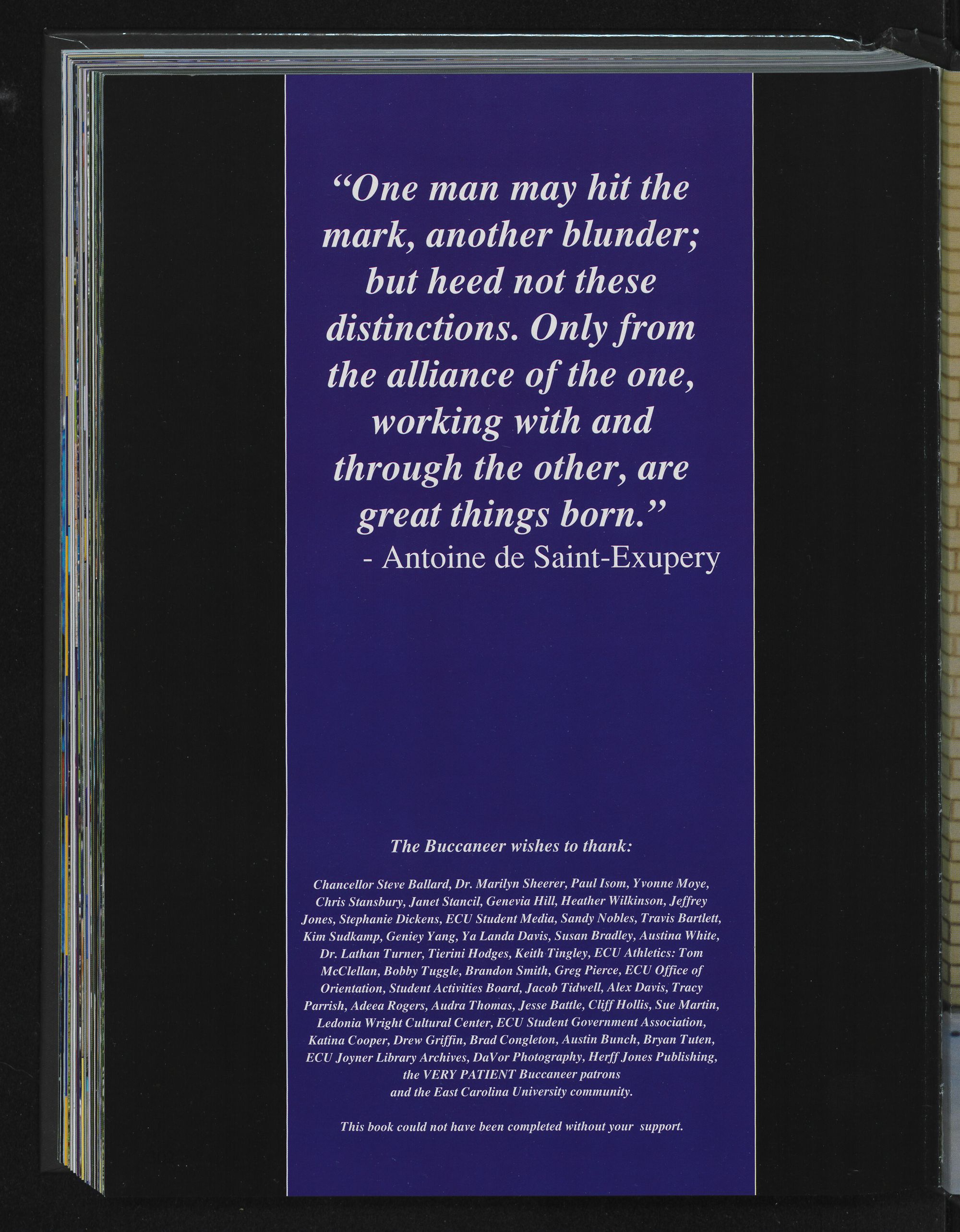 This volume of The Buccaneer is dedicated to the students, staff and faculty that make East