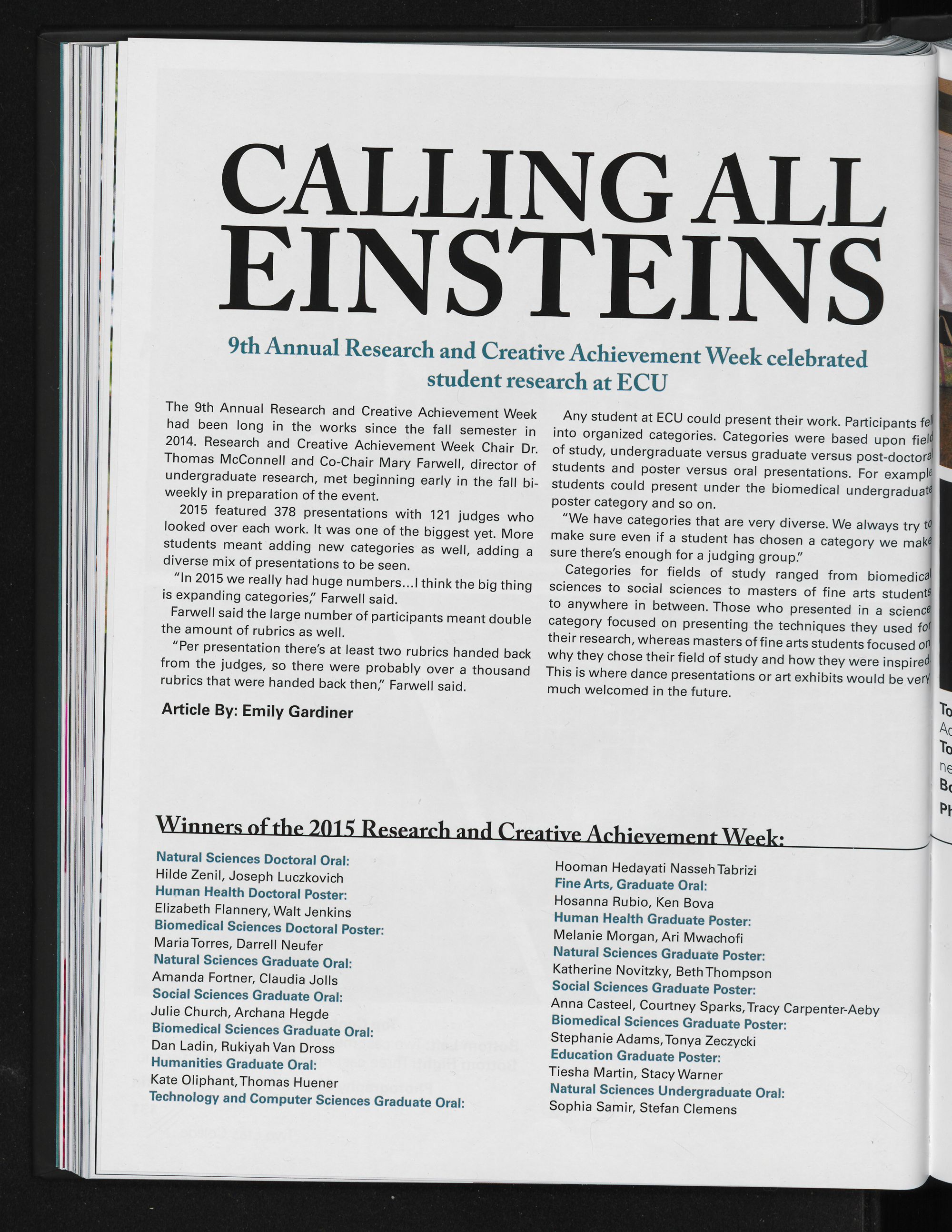 four winners. Each year students compete
