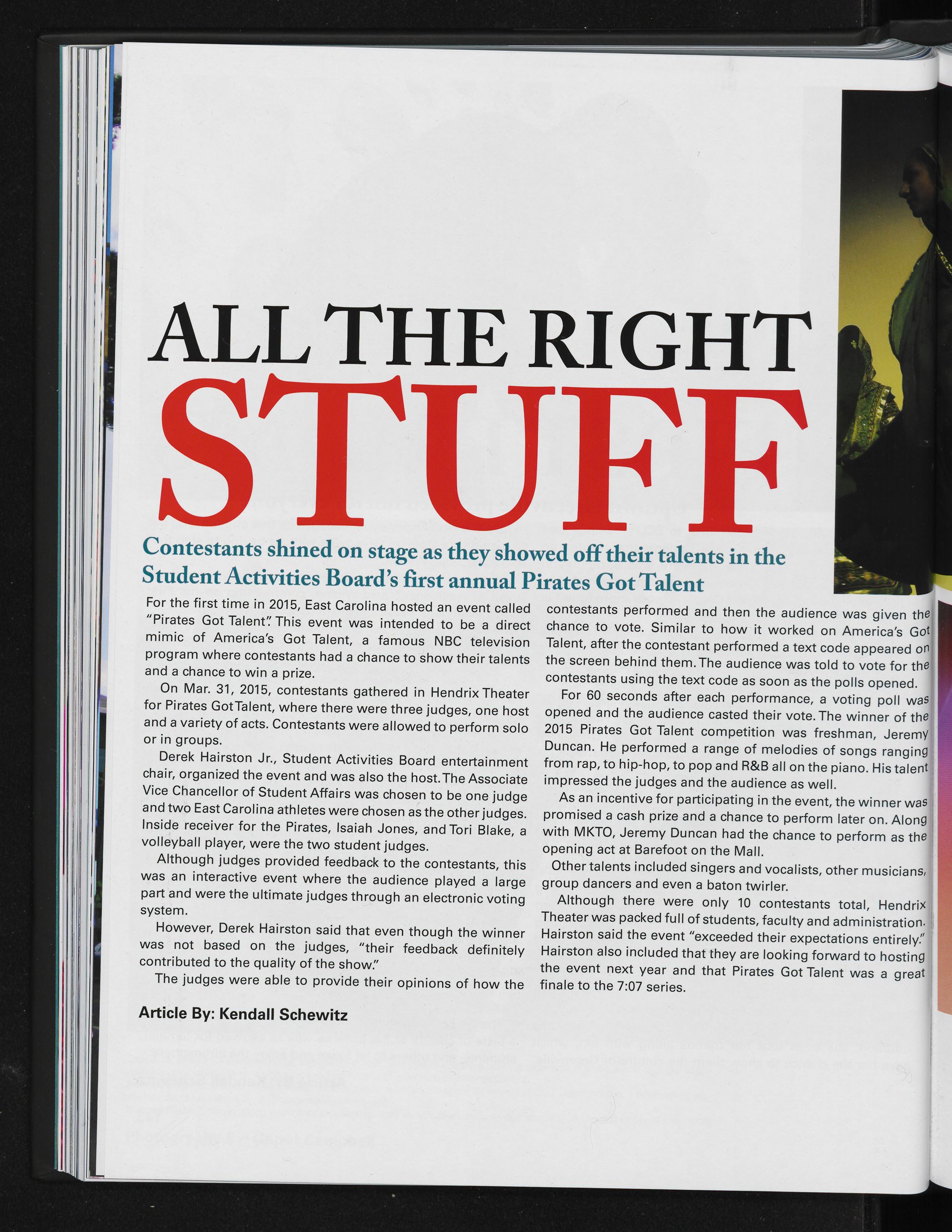 Right: JT Ackerman was one of 12 contestants that participated in ECU Stars on