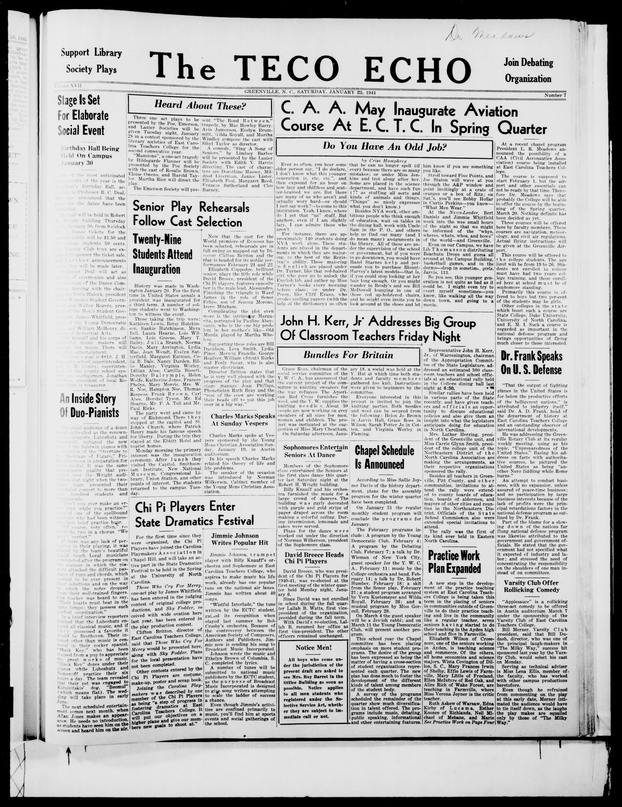 GREENVILLE, N. C, SATURDAY, JANUARY 25, 1941