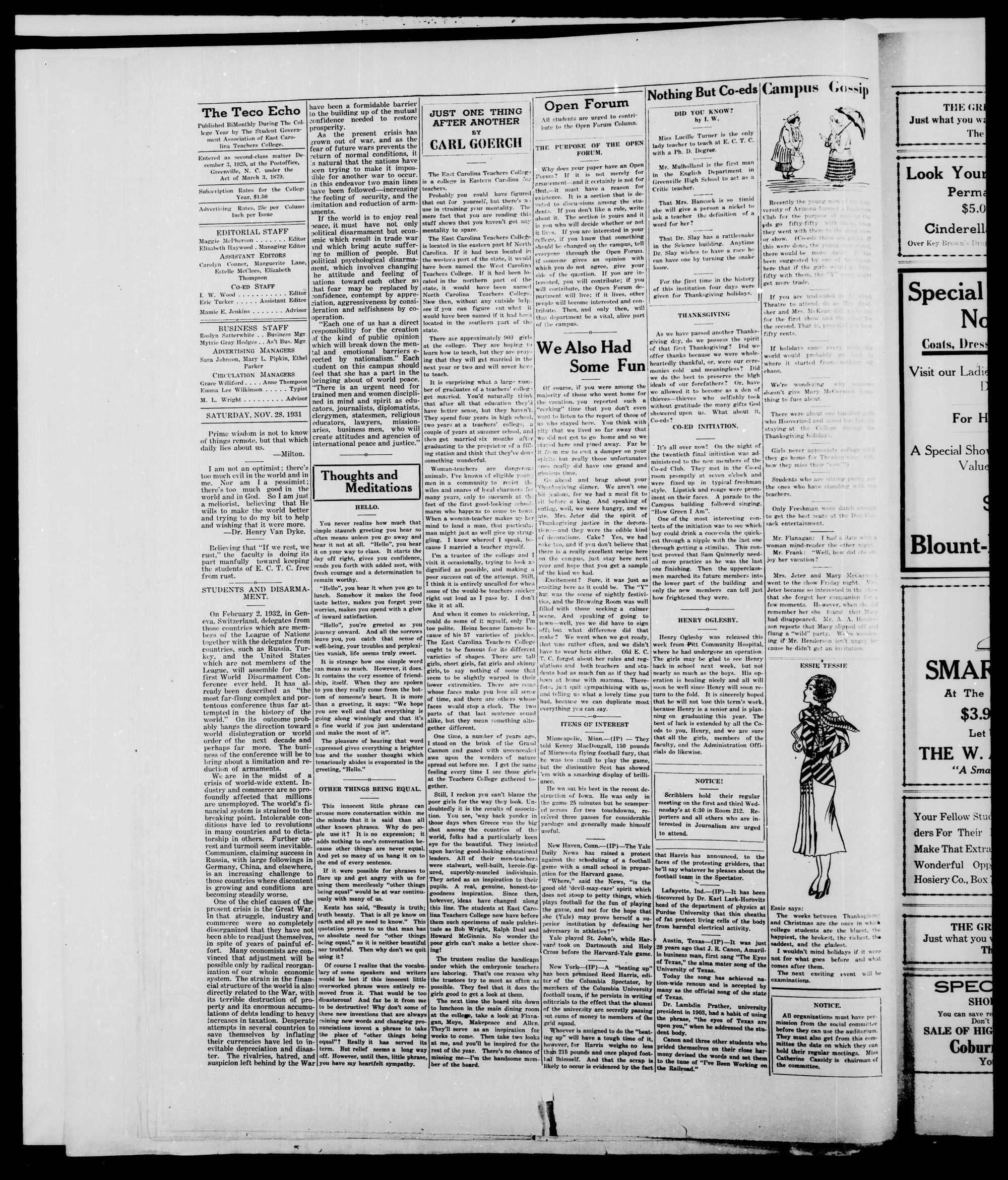 GREENVILLE, N. C, SATURDAY, NOVEMBER 28, 1931