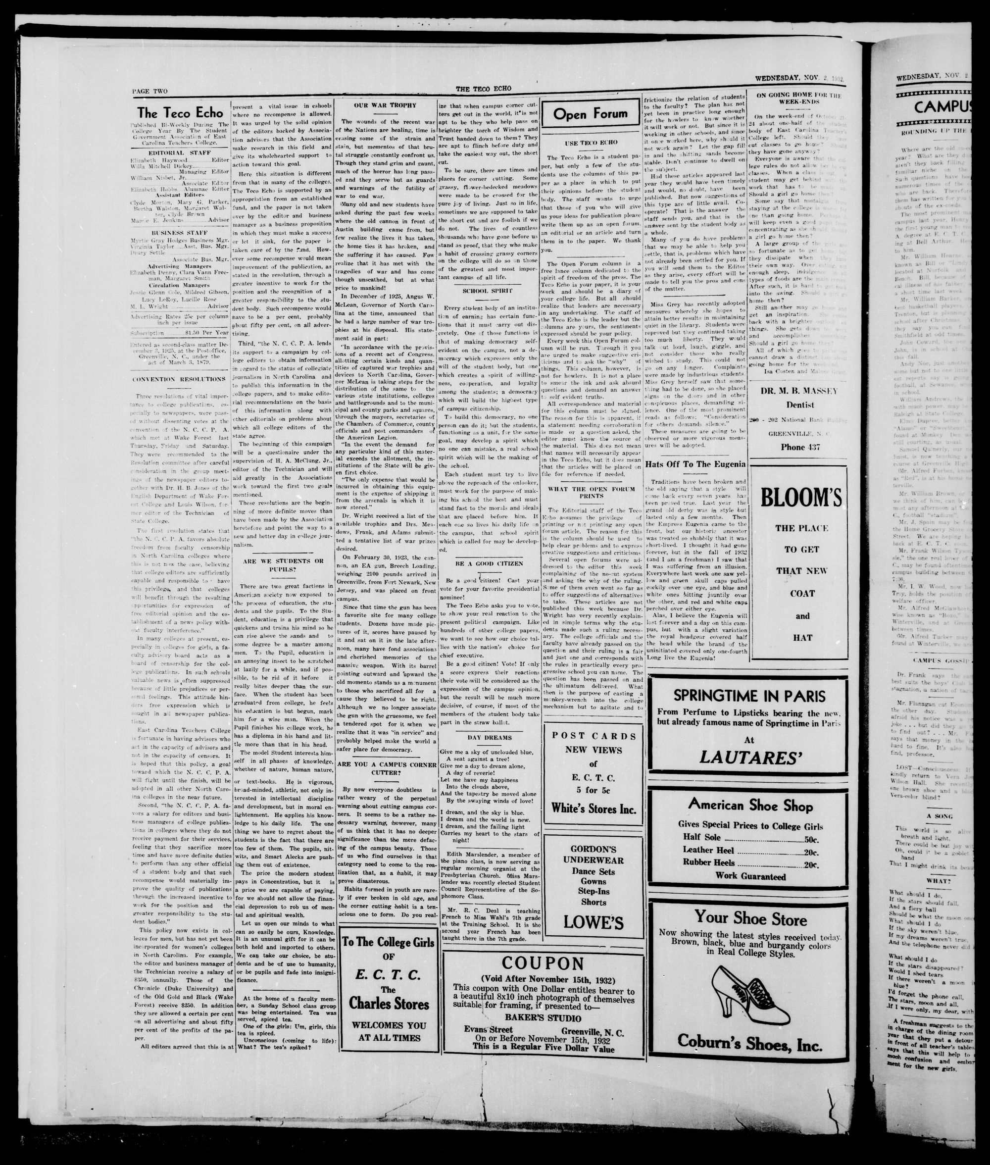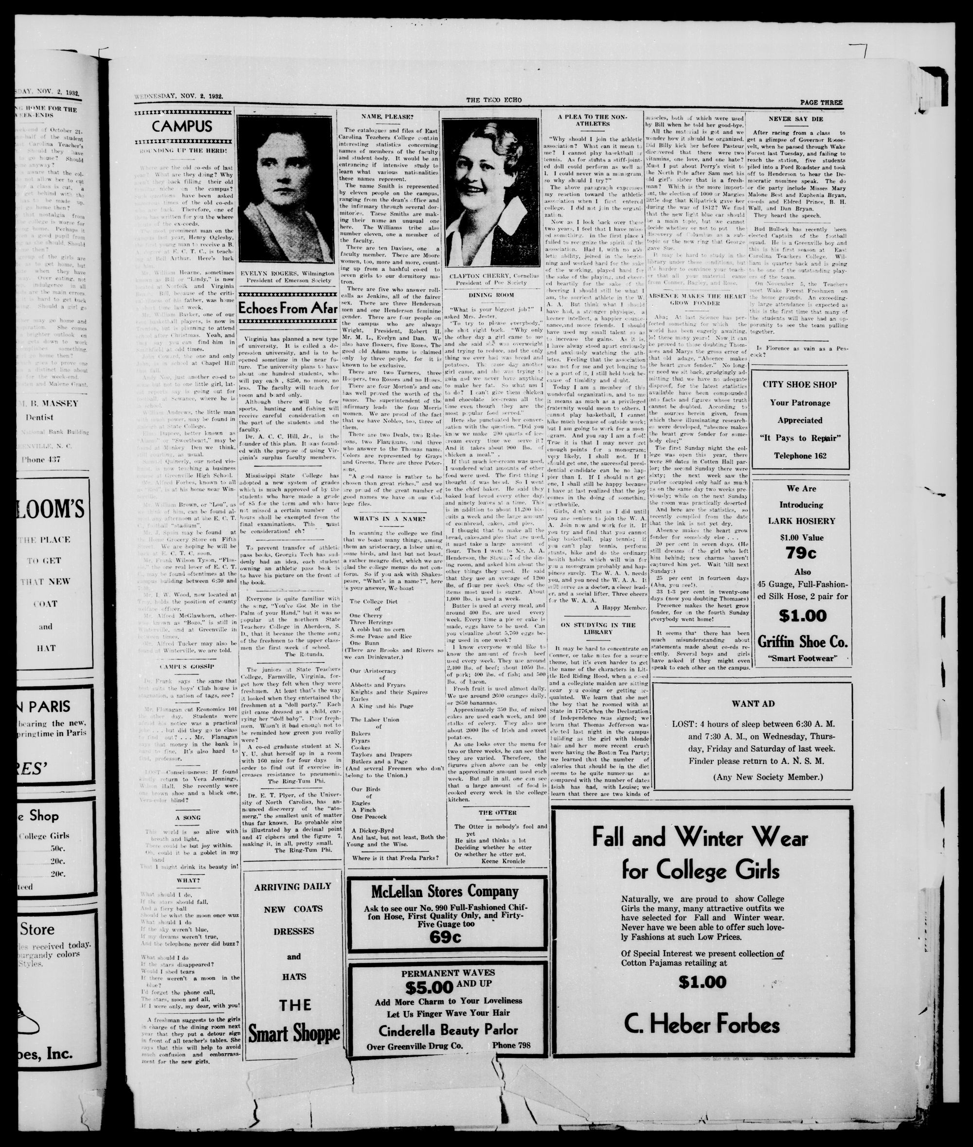 Greenville, N. C, Wednesday, November 2, 1932.