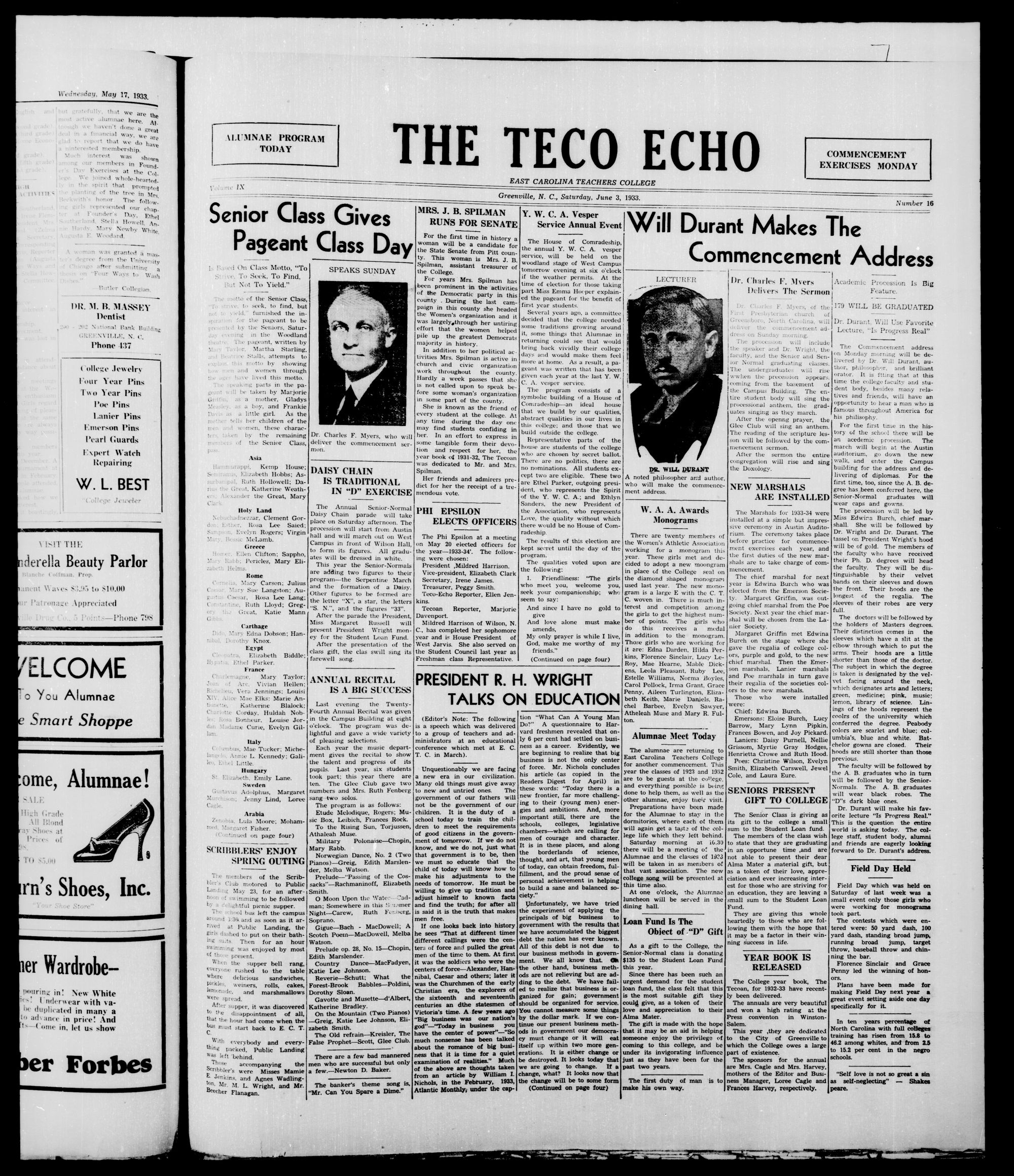 Greenville, N. C, Saturdatj, June 3, 1933.