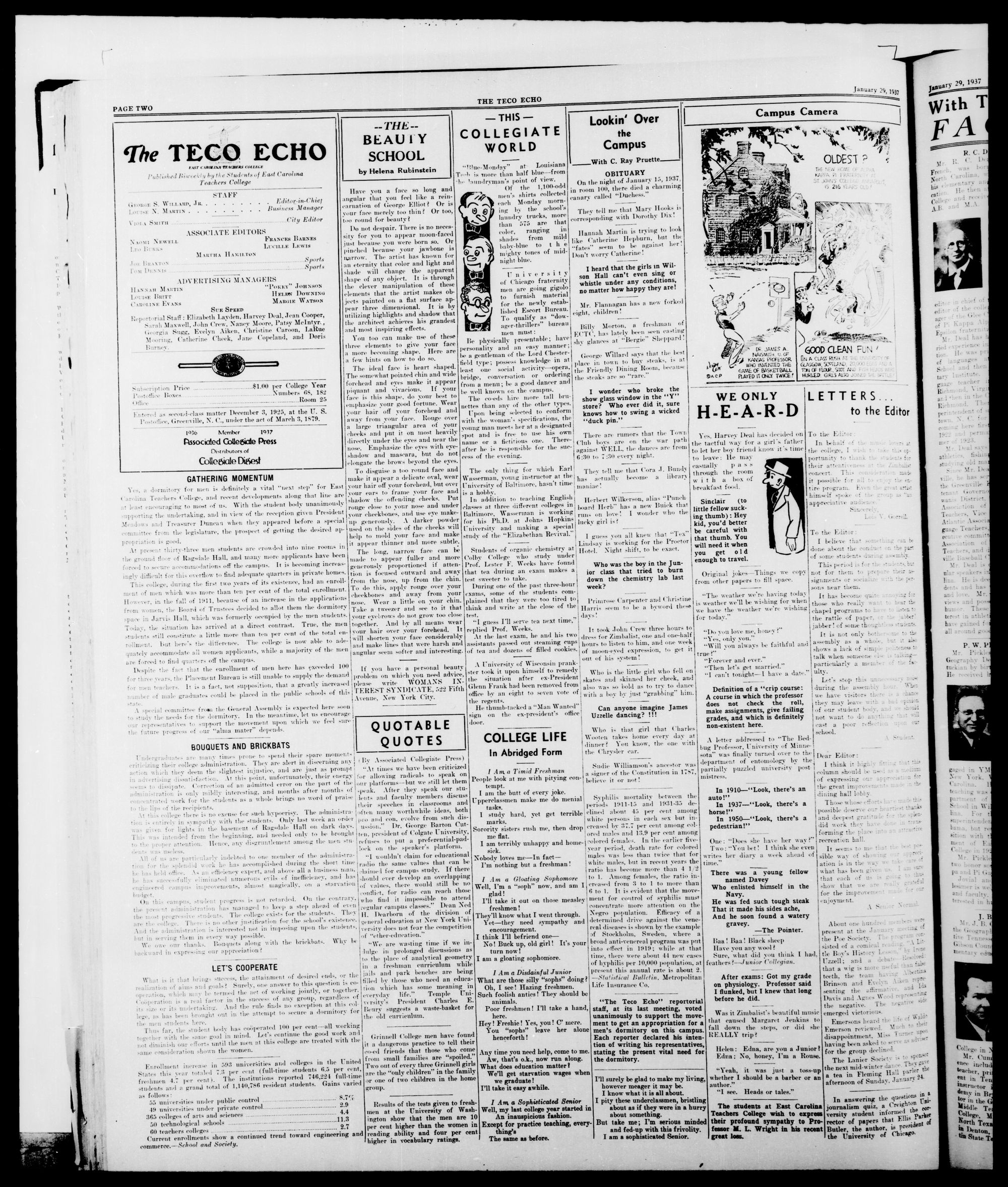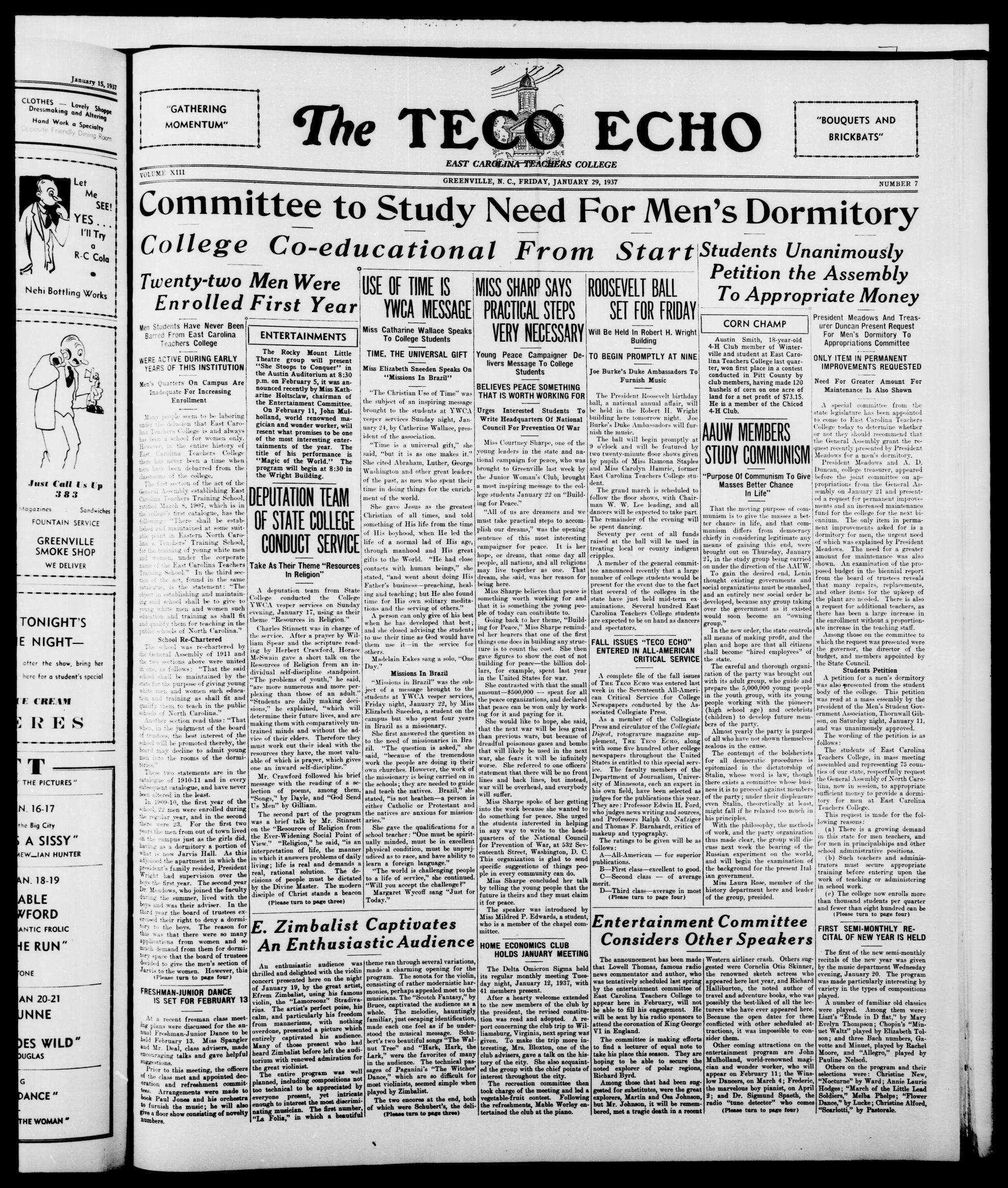 GREENVILLE, N. C, FRIDAY, JANUARY 29, 1937
