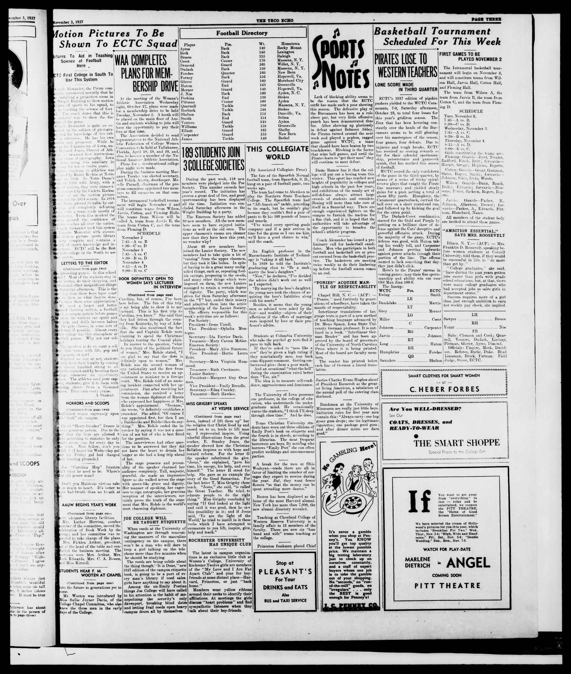 GREENVILLE, N. C, WEDNESDAY, NOVEMBER 3, 1937
